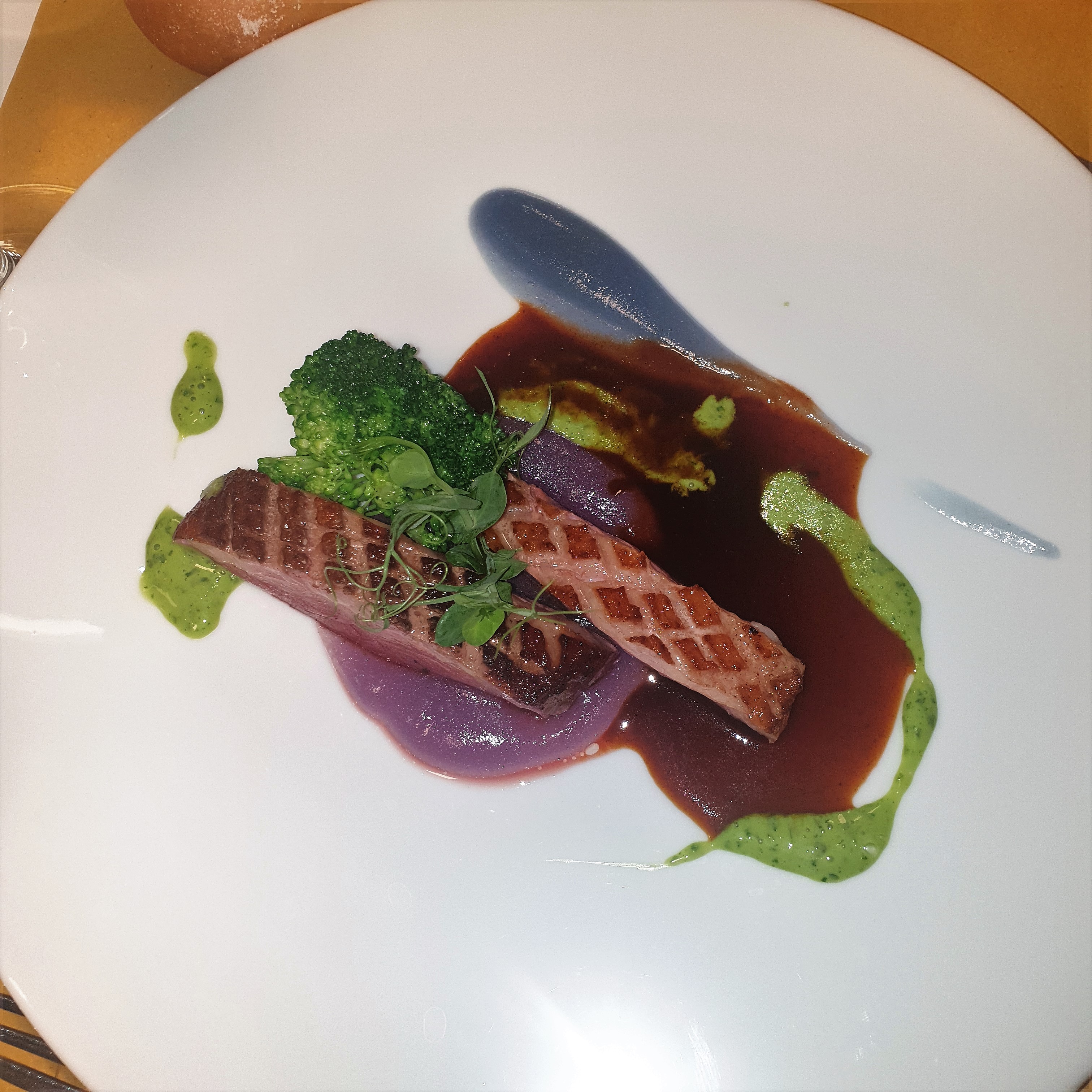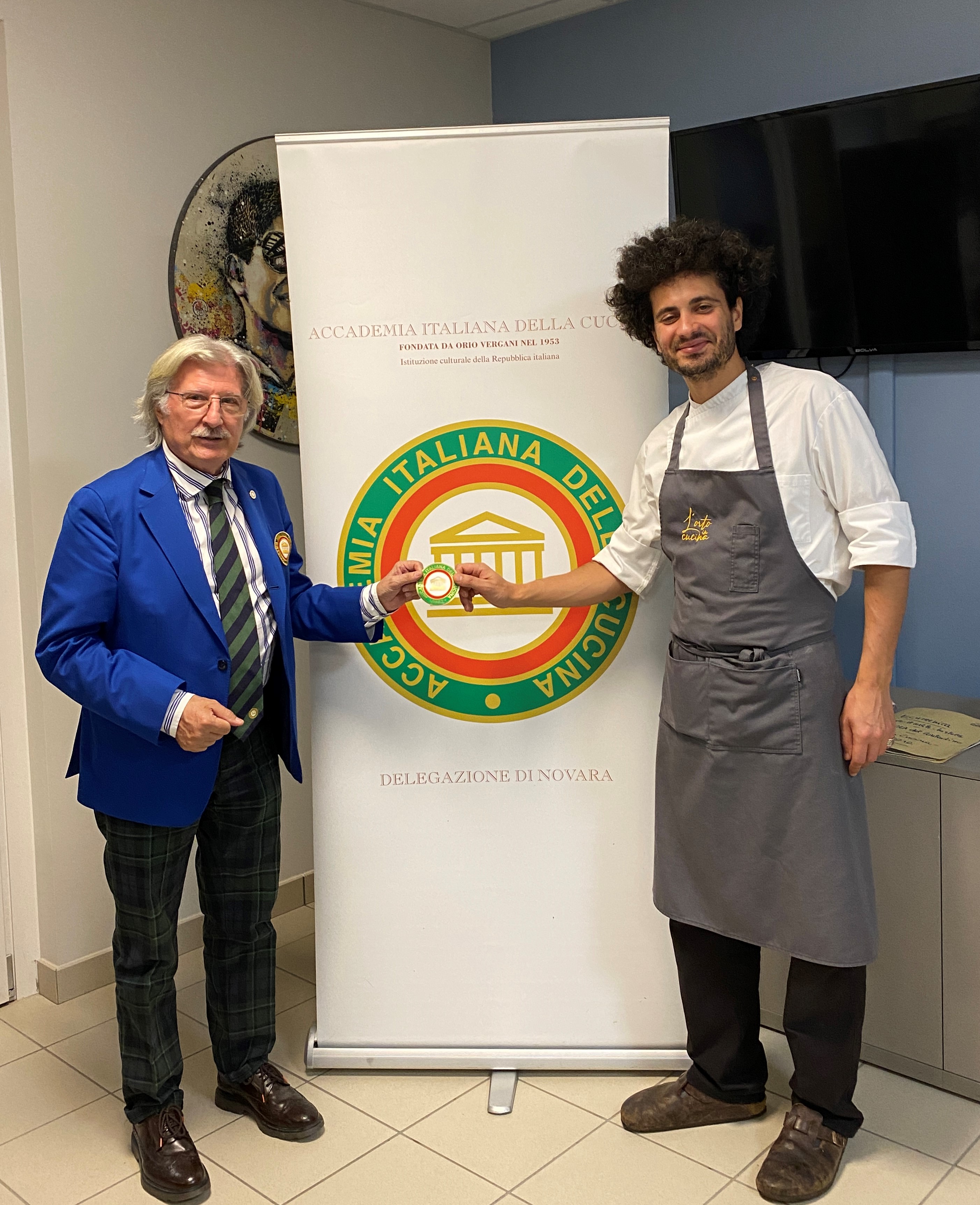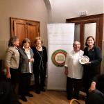 Cena ecumenica della Delegazione di Novara organizzata nel ristorante “Orto in cucina” gestito da una Cooperativa sociale con l’obiettivo di reintrodurre nella socialità persone che vivono una situazione di disagio. Il ristorante dotato di un grande orto ha come cuoco Giovanni Ruggieri una promessa della ristorazione, collaboratore de La Cucina Italiana, vincitore del premio Identità Golose. Menu con piatti della tradizione novarese che rispecchiavano compiutamente il tema dell’anno. Relazione sul tema ecumenico curata dall’Accademica Giuseppina Gambaro, componente CST Piemonte. Una piacevole sorpresa con piatti ben presentati, ben cucinati con tecniche stellate. Foto 1. Il cuoco Giovanni Ruggieri riceve la vetrofania dal Delegato Piero Spaini. Foto 2. Petto d’anitra al rosa con cavolo viola e broccoletti. Foto 3. Brasato al nebbiolo su polenta morbida. Foto 4. Torta di nocciole con zabaione caldo.