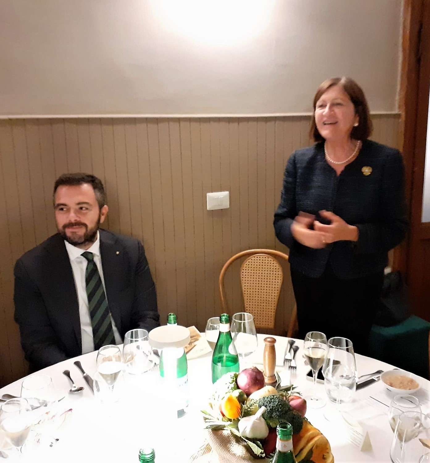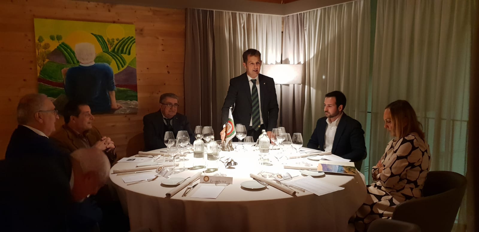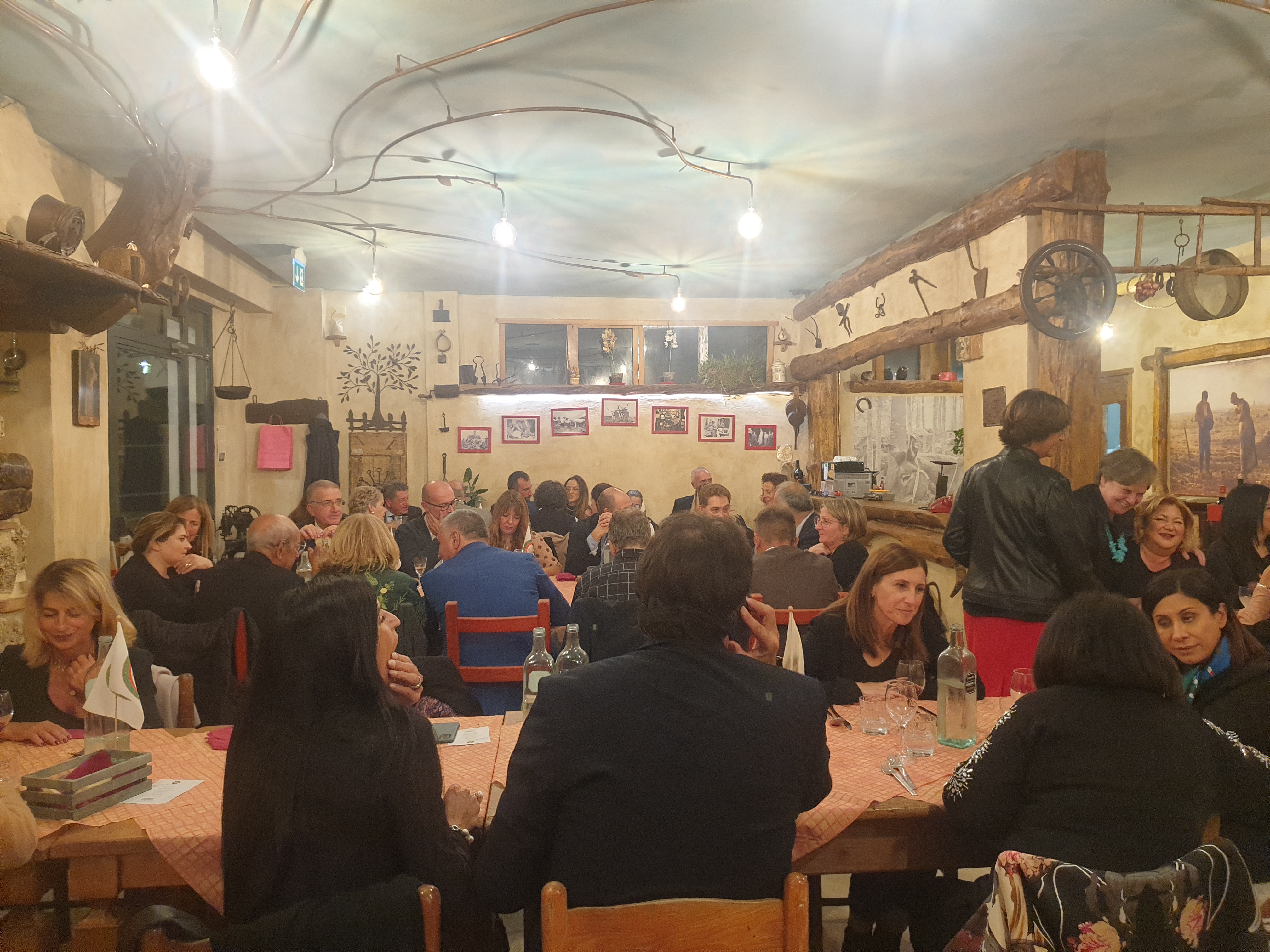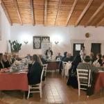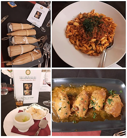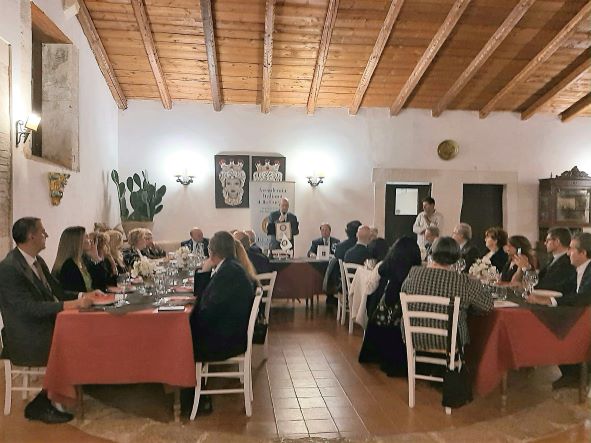 Convivio ecumenico della Delegazione di Sciacca presso l’agriturismo “Giorno e notte”. Il menu, concordato con i Simposiarchi, ha rispettato la tradizione culinaria contadina del territorio. Dopo l’apertura del Delegato, che ha illustrato il significato della cena ecumenica, la titolare ha accompagnato gli ospiti nel cortile coperto del locale, dove, circondati da strumenti dell’antica tradizione contadina hanno gustato un ricco antipasto con pane cunzatu, olive e pomodori, salsiccia secca, semi stagionato con marmellata di arance, panelle con farina di ceci, polpette di pane casereccio su letto di cipolle caramellate, frittatine di asparagi bieta e cicoria, insalata di arance, finocchio gratinato, melenzane stufate, uova affumicate, trippa, ricotta miele e mandarino, il tutto accompagnato da fette di pane ai cereali. In un secondo momento, nella sala, tra rami di erbe aromatiche, sono stati serviti il primo piatto e i secondi: maccheroni al sugo della nonna, stinco, spiedini, insalata verde. La cena si è conclusa con fichi d’India e melone giallo siciliano e un gustosissimo cannolo.