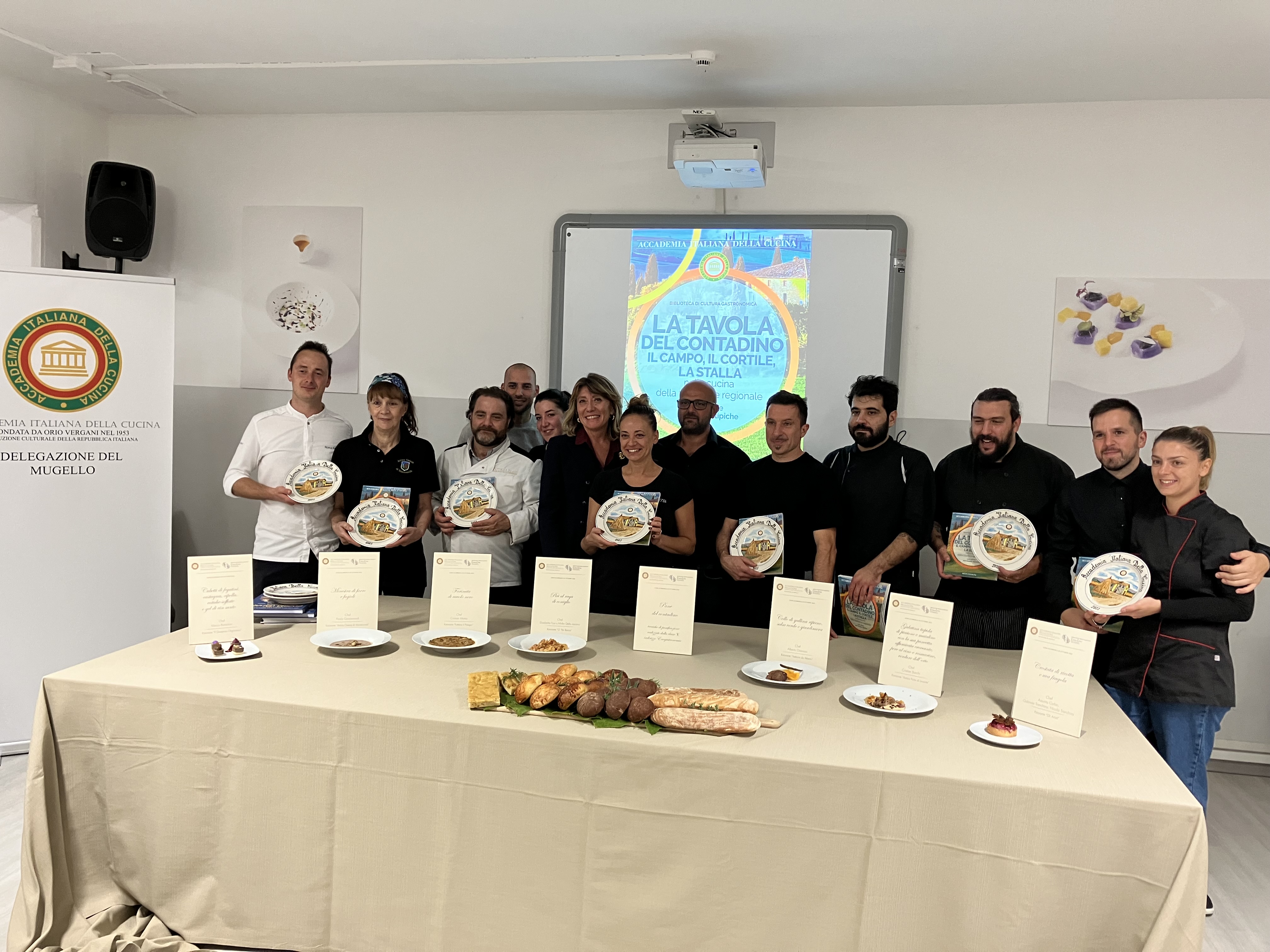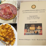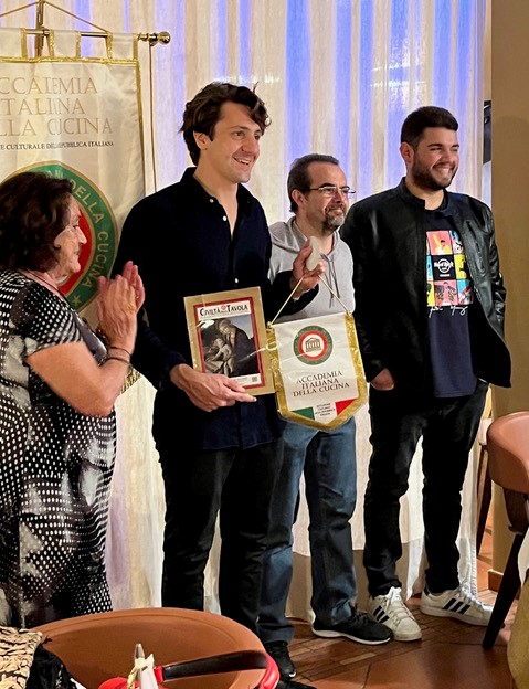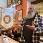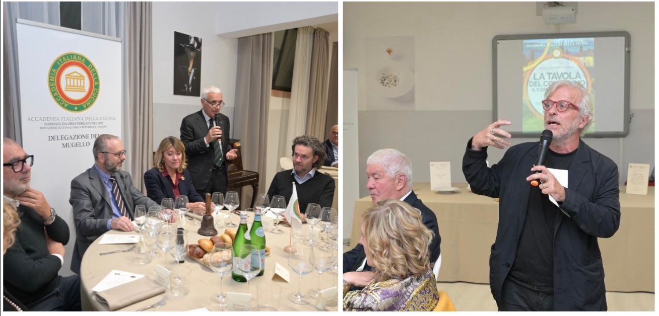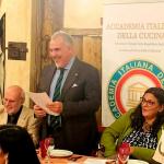 Ecumenica presso l’IIS “Chino Chini” di Borgo San Lorenzo (FI) con il conivolgimento di sette chef del territorio insieme agli studenti di più classi degli indirizzi di enogastronomia cucina, sala e accoglienza turistica. Dopo i saluti del prof. Filippo Margheri (foto 1) rappresentante dell’Istituto Alberghiero e l’introduzione alla serata da parte della Delegata Monica Sforzini (foto 1), è seguito un momento di approfondimento culturale a cura del vice Delegato Renzo Bartoloni (foto 2 sinistra), membro del CST Toscana est, che ha evidenziato l’importanza delle tradizioni della cucina contadina. Sette chef tra i più rappresentativi del territorio hanno composto il menu della serata, proponendo ciascuno un piatto della tradizione che ha rievocato antichi e genuini sapori. Durante la serata il brillante intervento del prof. Leonardo Romanelli (foto 2 destra), docente dell’Istituto Chini e scrittore che ha sottolineato l’importanza dell’Accademia e ha guidato tutti i partecipanti ad un’attenta riflessione sull’interpretazione del tema da parte degli chef partecipanti. Dopo la consegna agli studenti del piatto dell’Accademia e a tutti gli chef del piatto dell’anno (foto 3), ha chiuso il convivio, visibilmente commossa, la prof.ssa Carmelina Mupo.