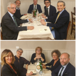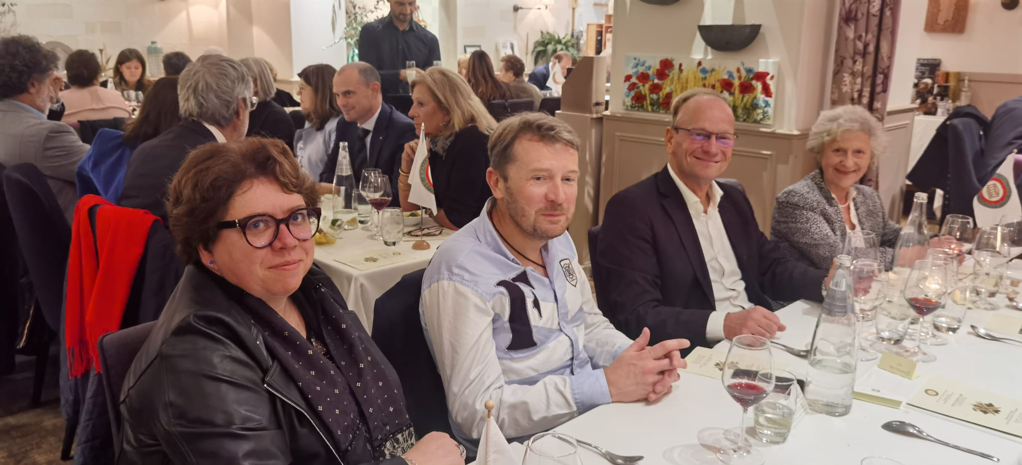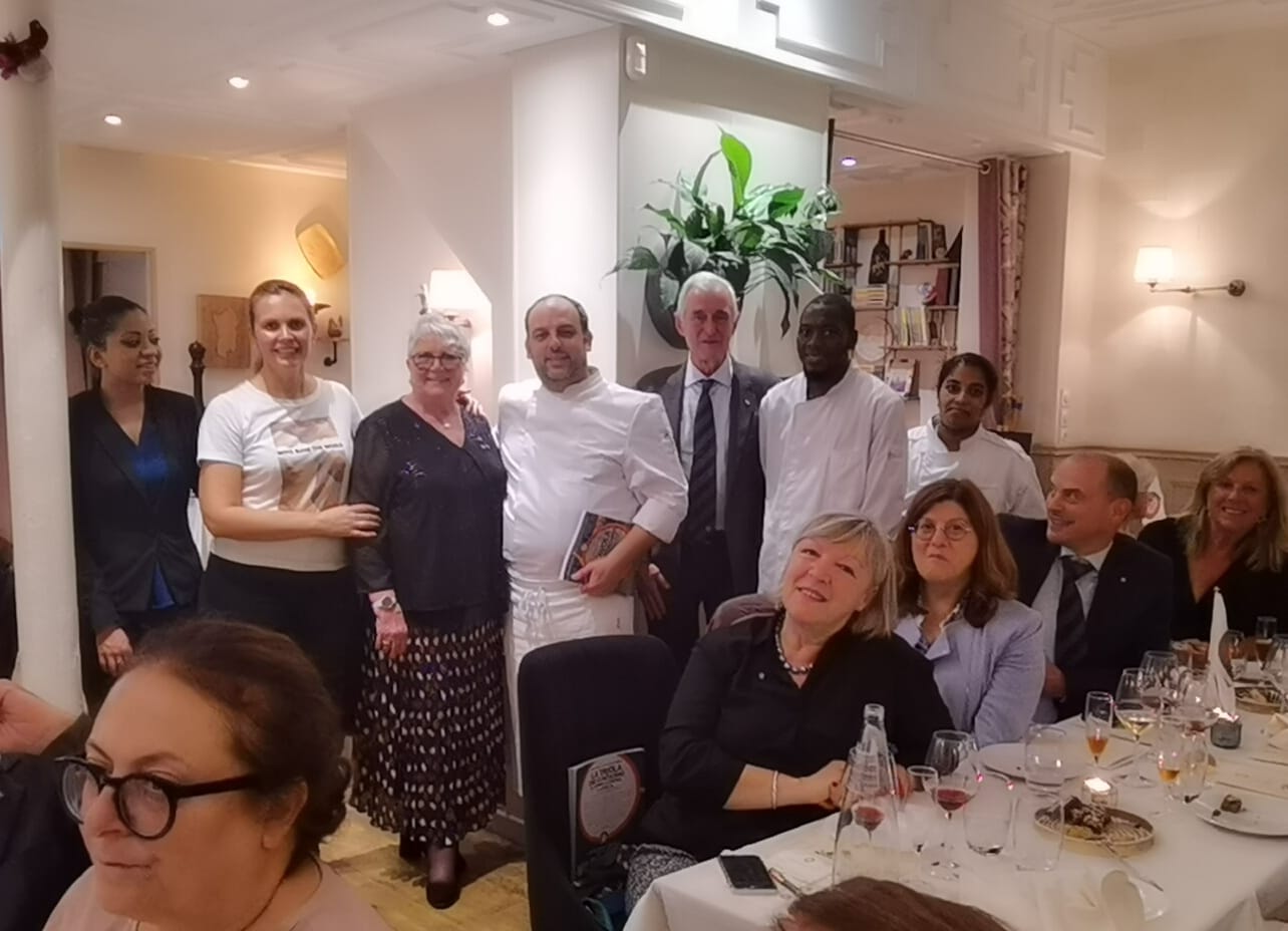 Grande serata al ristorante "Via del Campo" per la Cena Ecumenica che ha visto riunite le due Delegazioni presenti a Parigi. I due Simposiarchi e Delegati, Tino Callegari e Laura Giovenco Garrone, hanno saputo animare il convivio in un clima di serenità e amicizia. Lo chef Enrico Masia ha presentato un percorso della cucina del contadino molto strutturato, innovativo e articolato, proponendo piatti dai sapori antichi. Fuori menu ha offerto ai presenti un piatto sardo speciale, difficilmente reperibile anche in Sardegna, presentato magistralmente da Gian Paolo Cossu, vice Delegato di Parigi Montparnasse: i "Filindeu in brodo", di solito di pecora e serviti per le grandi occasioni. Lo chef ha voluto quindi, con questo omaggio, sottolineare la particolarità di questa festa conviviale. Entusiasti tutti gli Accademici delle due Delegazioni per essersi ritrovati e aver trascorso una piacevole serata. Presente la Vice Console Bianca Longobardi che ha portando i saluti della Console Generale che per impegni istituzionali presi in precedenza non ha potuto essere presente. Un ringraziamento da parte dei due Delegati a tutti i presenti allo chef Enrico e al suo staff con la promessa di ritrovarsi presto per altre importanti occasioni.