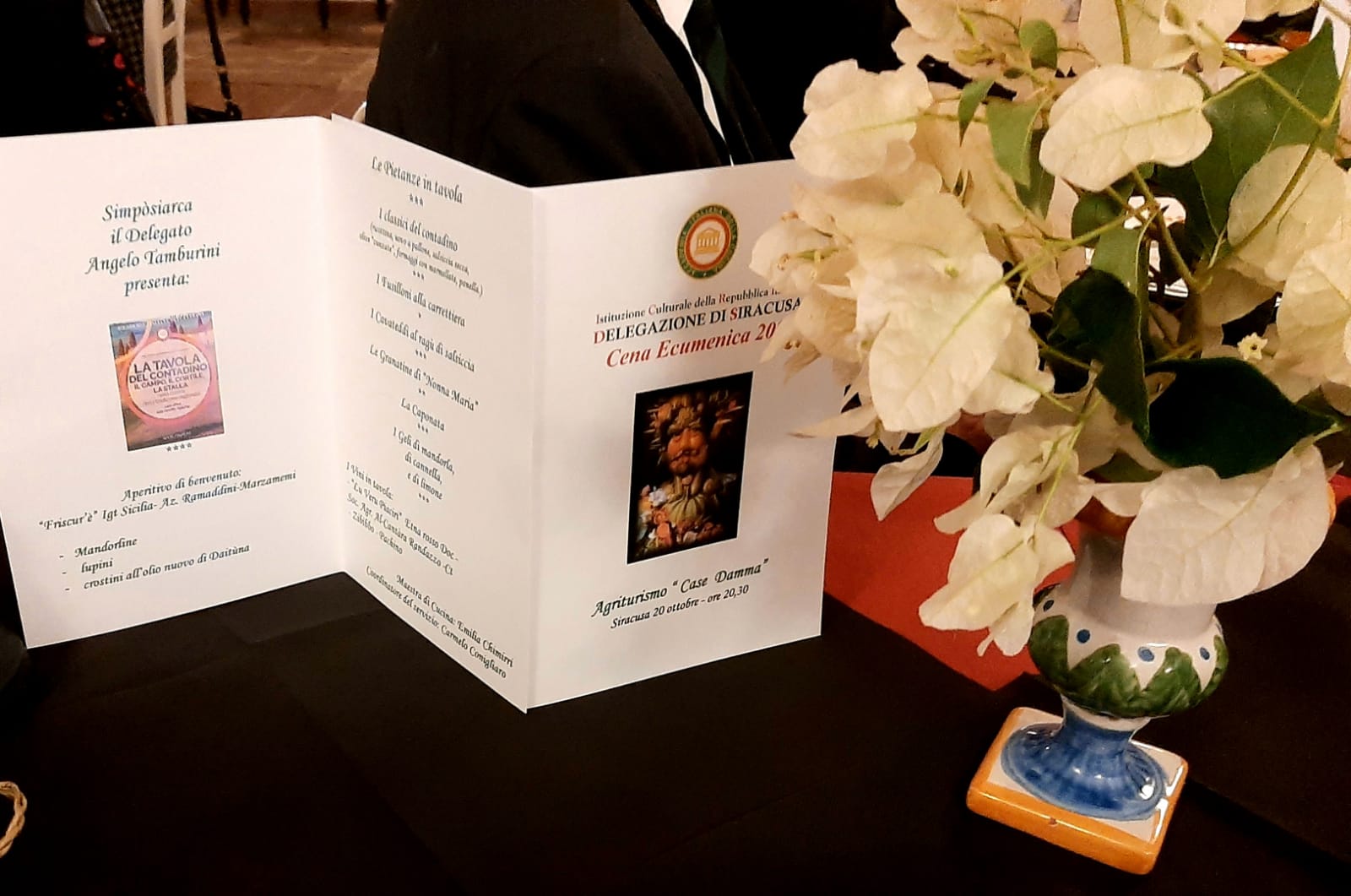Cena Ecumenica della Delegazione di Ragusa con taglio fortemente culturale per la presentazione di due libri: Pausa Pranzo di Giuseppe Leone, alla presenza dell’autore, e la Tavola del Contadino presentato da Alberto Fasiol, membro del CST. Alla presenza del Prefetto di Ragusa Ranieri e di numerosi Accademici e ospiti, il patron della Capinera, Maurizio, ha proposto una cucina del territorio dove hanno fatto mostra di sé i prodotti tipici e stagionali. Atmosfera delle grandi occasioni e vini in degustazione di altissimo pregio.