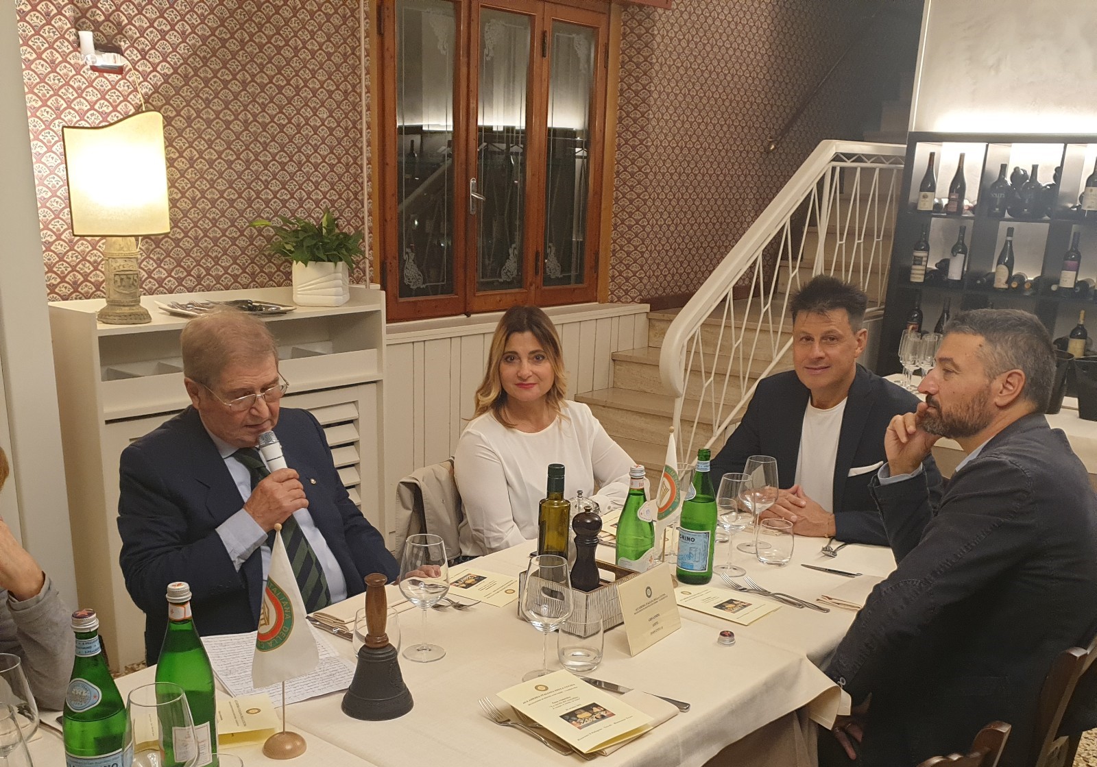 Anche quest’anno la cena ecumenica ha trovato la sua sede ideale nel ristorante “La Bilancia” di Loreto Aprutino, che eccelle per genuinità e fedeltà alle tradizioni dell’entroterra abruzzese. Il tema della serata è stato trattato dal prof. Ernesto di Renzo dell’Università di Roma Tor Vergata, che ha affascinato il pubblico con una dissertazione dell’argomento in chiave storica e antropologica (Foto 1 e 2). La Simposiarca Patrizia Accorsi ha scelto un menu che esaltasse i tratti tipici della cucina contadina abruzzese, una cucina povera ma ingegnosa, prevalentemente vegetale, ove la carne, per lo più proveniente dall’allevamento di animali da cortile, era un lusso delle grandi occasioni. Il menu (Foto 3) si apre con la rievocazione de lu sdijune, tipica usanza degli agricoltori abruzzesi, che erano soliti consumare a metà mattinata un'abbondante merenda, a base di prodotti tipici del territorio, che li sostenesse nel duro lavoro dei campi. Al termine del convivio, il Delegato Giuseppe Fioritoni ha elogiato e ringraziato i coniugi Di Zio, titolari del ristorante, che sempre riservano a questo solenne momento accademico la stessa cura, anche dei piccoli dettagli, che si porrebbe alla organizzazione di un importante banchetto familiare (Foto 4).