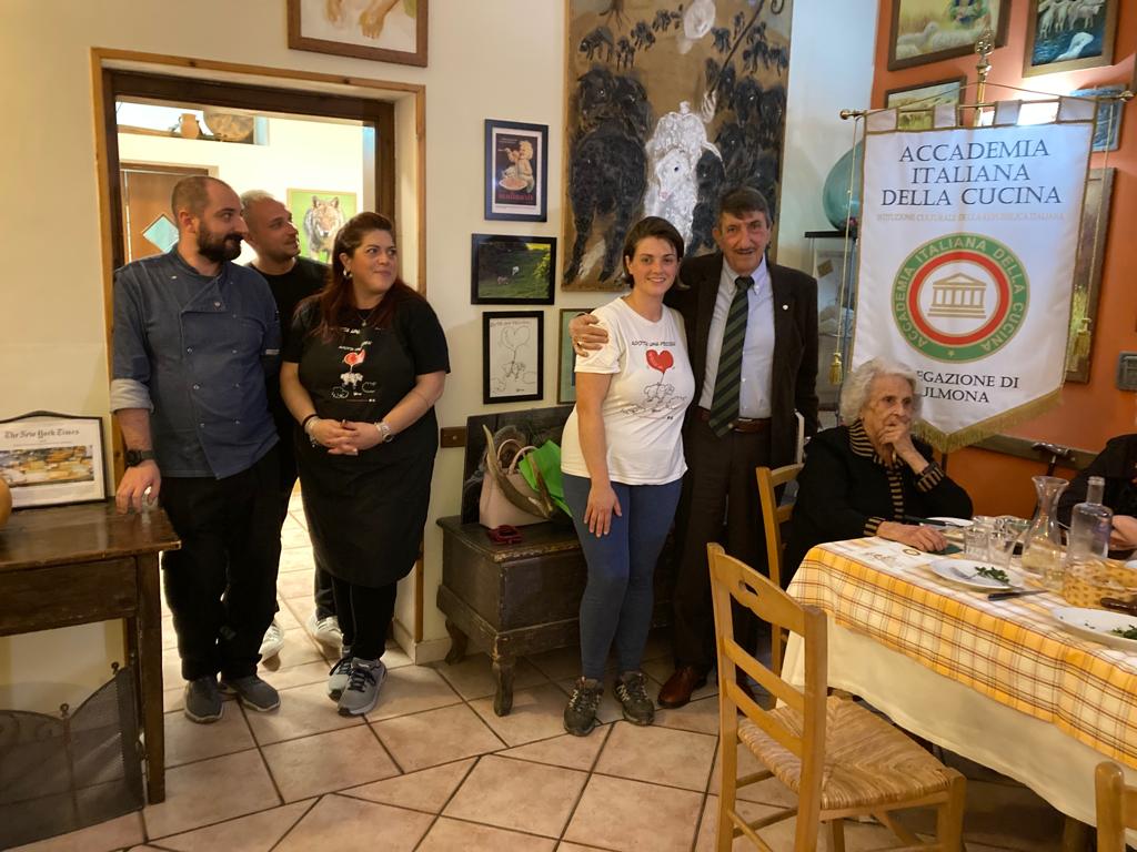 Per la Cena Ecumenica la Consulta di Sulmona, per interpretare al meglio il tema dell'anno, ha scelto il Bioagriturismo "La Porta dei Parchi" ad Anversa degli Abruzzi all'interno di un'azienda agricola di antiche tradizioni collocata nella valle del Sagittario in un ambiente naturale meraviglioso. Le portate servite, apprezzatissime, tutte della tradizione contadina e con prodotti a km0 dell'azienda agricola. Foto 1. L'Accademico Gianni Febbo illustra il significato della Cena Ecumenica. Foto 2. Il pastore abruzzese Nunzio Marcelli, titolare della azienda agricola, relaziona sul tema della serata. Foto 3. Il Delegato e la brigata di cucina.