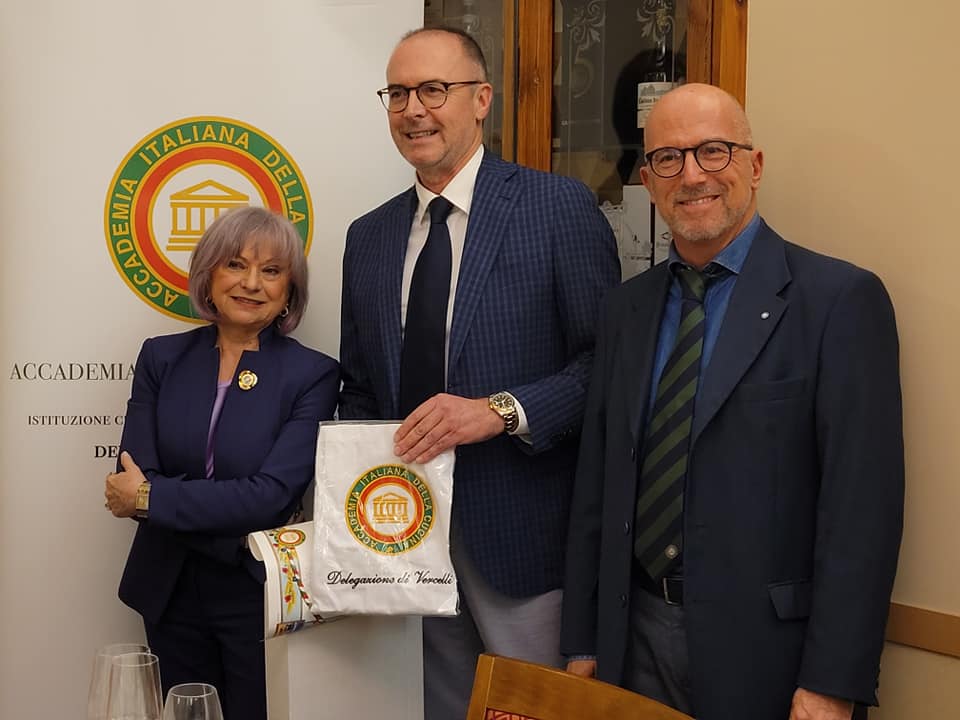 Il Ristorante Archigusto di Crescentino ha interpretato al meglio il tema dell’anno “La tavola del contadino. Il campo, il cortile, la stalla”, congeniale alla Delegazione di Vercelli in quanto la cucina contadina, povera ma piena d’inventiva, è tradizionale per le nostre tavole. Lo chef Enrico Bruera per la Cena Ecumenica ha elaborato un menu che si è aperto con un piatto povero ma molto diffuso nelle campagne vercellesi: la panada, con pane raffermo, brodo e altri sapori. Il menu ha visto poi l’impiego dell’animale da cortile per eccellenza, la gallina, e l’ortaggio più diffuso, la cipolla. Ecco poi l'elemento principe dei nostri campi: il riso Carnaroli combinato con il re del cortile, il maiale. Non poteva mancare la nobile faraona, che, per la sua carne prelibata, era il piatto forte della domenica o del pranzo di Natale. A chiudere la timballa: un dolce tipico locale, una frolla con farina di mais ripiena di un composto con pere cotte nel vino rosso. Una selezione di piatti che ha celebrato degnamente l'evento più importante dell'anno per l’Accademia. Nel corso della serata è stato celebrato l'ingresso del nuovo Accademico Massimo Calliera.