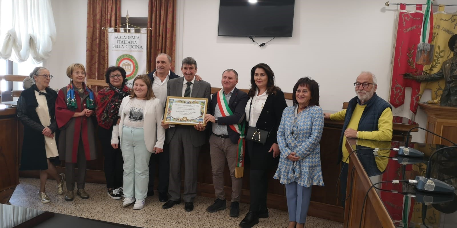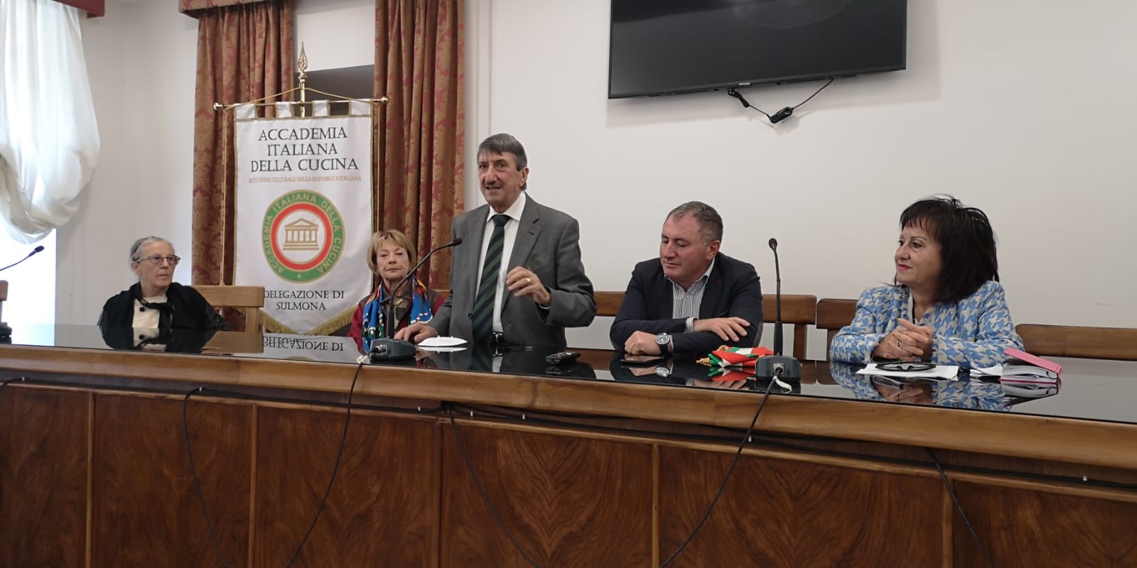 La Delegazione di Sulmona ha consegnato, nella Sala Consiliare del Comune di Castel di Sangro, il Premio Massimo Alberini alla ditta Ciro Flagella Rosso da Amare. Alla presenza di numerosi Accademici, del Sindaco e Presidente della Provincia Angelo Caruso, dei consiglieri comunali e di un numeroso pubblico. Un momento istituzionale importante. Foto 1. Il Delegato espone le motivazioni del Premio. Foto 2. Consegna del Premio. Foto 3. Il Delegato dona al Sindaco la pubblicazione “Storia della cucina italiana a fumetti”.
