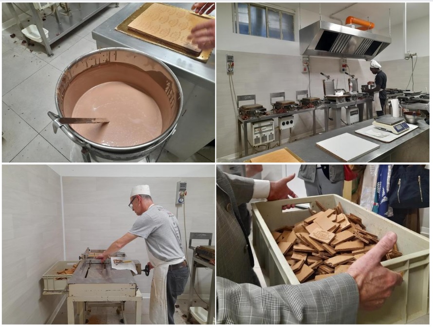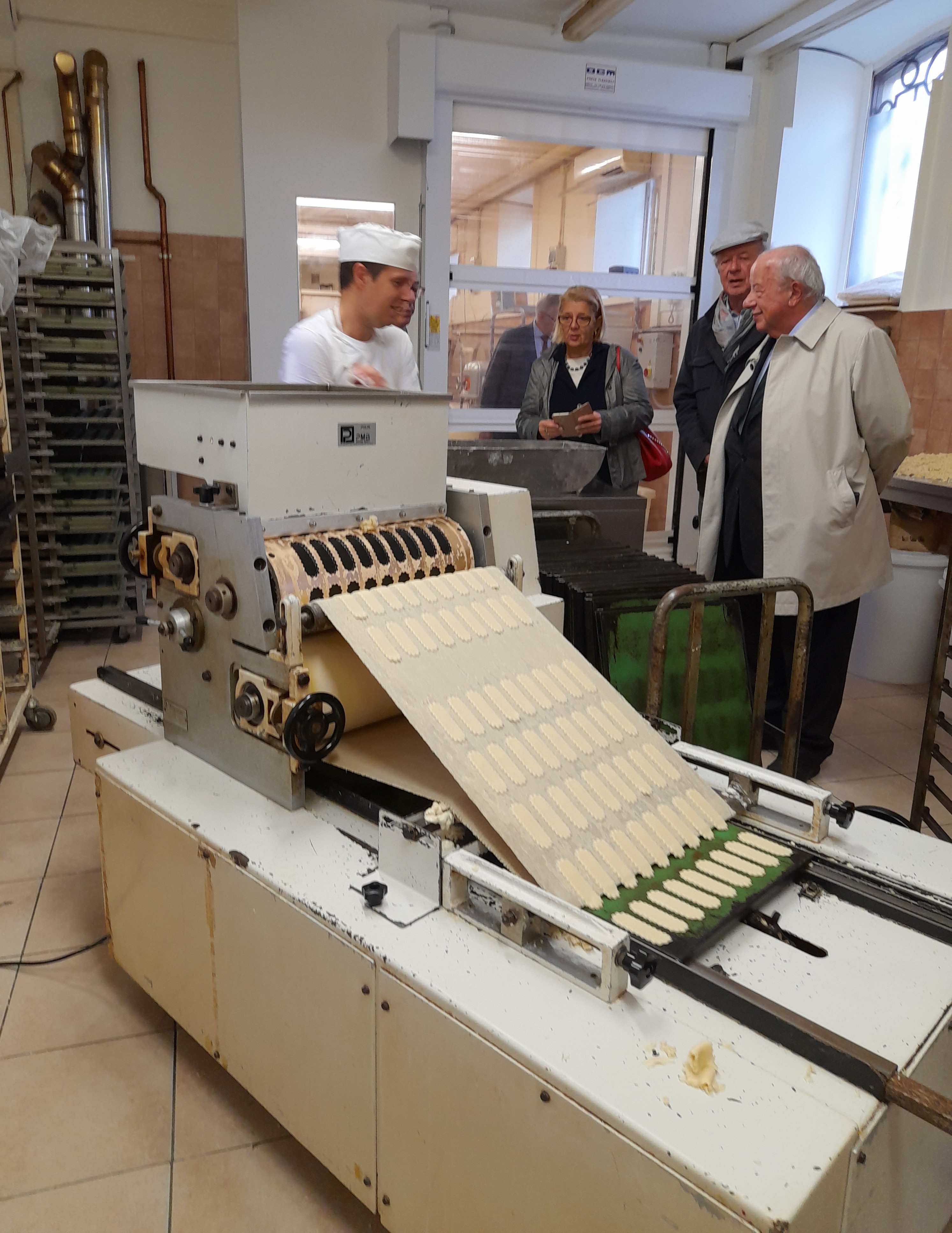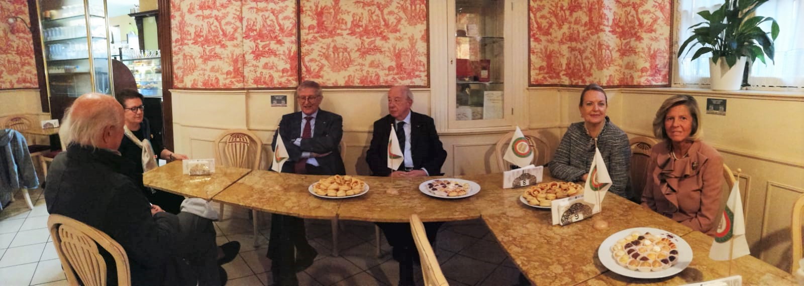 La Delegata Maria Luisa Bertotto con una piccola rappresentanza della Delegazione di Biella ha consegnato il Premio “Massimo Alberini” al titolare del Caffè del Teatro Pasticceria, Patrizio Pianca (foto 1). Il locale ha una lunga tradizione: nasce nel 1865 accanto al Teatro Sociale Villani di Biella e, nel 2007, la nuova gestione di Patrizio Pianca e del suo staff trasforma il bar esistente anche in pasticceria con la nuova denominazione di "Caffè del Teatro Pasticceria". Il locale diventa un punto di riferimento per tutti coloro in cerca di un luogo di ritrovo e di prodotti di qualità grazie alle creazioni dei maestri pasticceri che continuano a proporre specialità biellesi caratteristiche ed inimitabili. L’evento della consegna del Premio è avvenuto a metà mattinata per poter visitare il laboratorio di pasticceria durante la lavorazione. Infatti, i rappresentanti della Delegazione hanno potuto assistere alla produzione, ancora artigianale e manuale, dei Canestrelli (foto 2), dei biscotti “Brutti ma Buoni” e dei Nutritivi (foto 3). Durante la vista gli Accademici (foto 4) hanno incontrato l’ex-pasticcere Bianchi, figlio dell’ideatore dei biscotti Nutritivi, il quale ha ceduto il brevetto della ricetta al Caffè del Teatro. Il signor Bianchi, assieme al signor Pianca, ha intrattenuto i presenti con spiegazioni e delucidazioni sui diversi prodotti di pasticceria e sui macchinari usati.