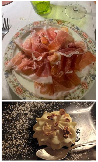 Protagoniste della riunione conviviale presso "Il Mare in Collina" sono state due donne: una in cucina, l’altra dominante nella relazione che ha aperto la serata. Bruna Mammarella Santuccione e la sua famiglia hanno dedicato la propria vita alla ristorazione, dal 1975 i Santuccione sono infatti gestori di alcuni tra i più importanti ristoranti di Chieti e nel 2015 avviano Il Mare in Collina con un’idea ben precisa, quella di proporre piatti che coniughino la tradizionale cucina marinara della costa teatina con quella dell’entroterra, rispettando la stagionalità, i prodotti dell’orto e della tradizione contadina. L’altra protagonista indiscussa è stata Petronilla, alias Amalia Moretti Foggia o Dottor Amal, attraverso la splendida relazione della Consultrice Gabriella Orlando che ha rapito i commensali raccontando il contributo che questa donna, dottoressa, farmacista, attivista politica, ha dato alla cucina italiana attraverso la sua rubrica “Ai Fornelli” della Domenica del Corriere tra gli anni ‘30 e ‘40. Un esempio di divulgazione e coesione sociale dal valore altissimo, in un momento di dolore, guerra e smarrimento del nostro Paese. Foto 1. Menu e relatrice Gabriella Orlando. Foto 2. Simposiarca Carlo Crocetta. Foto 3. Brigata di cucina. Foto 4. Uno dei piatti degustati.
