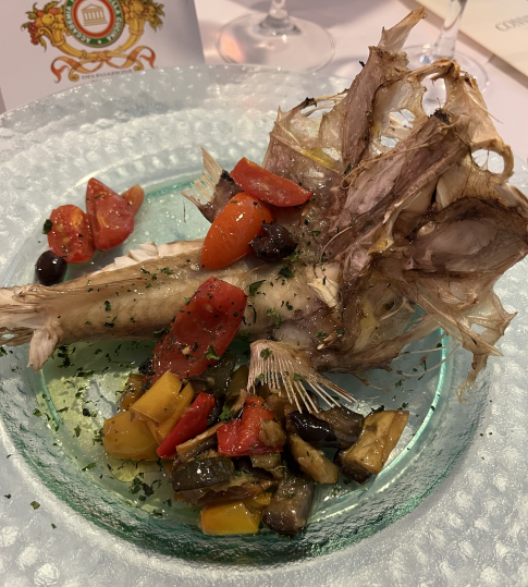 Gli Accademici agrigentini si sono ritrovati al ristorante Kokalos di Agrigento. Calorosamente accolti dal maître Gerlando Lorenzano, a loro è stato riservato un tavolo imperiale con vista sulla Valle dei Templi (foto1). Prima della cena il Delegato Claudio Barba, dopo aver ringraziato i graditi ospiti e gli Accademici intervenuti, ha intrattenuto i commensali sull’argomento della serata “dalla vite al vino”. È seguita la riunione conviviale preparata dallo chef Nabil Amour, molto apprezzata dagli Accademici, in special modo il soffice “cudduruni” e le schiacciate, il primo piatto con barchette di melanzane ripiene di busiate in salsa di ciliegino (foto 2) e, in tema con la serata, la selezione dei vini presentata. La Delegazione si è data appuntamento al prossimo incontro che si terrà il 20 ottobre in occasione della Cena Ecumenica 2022.
