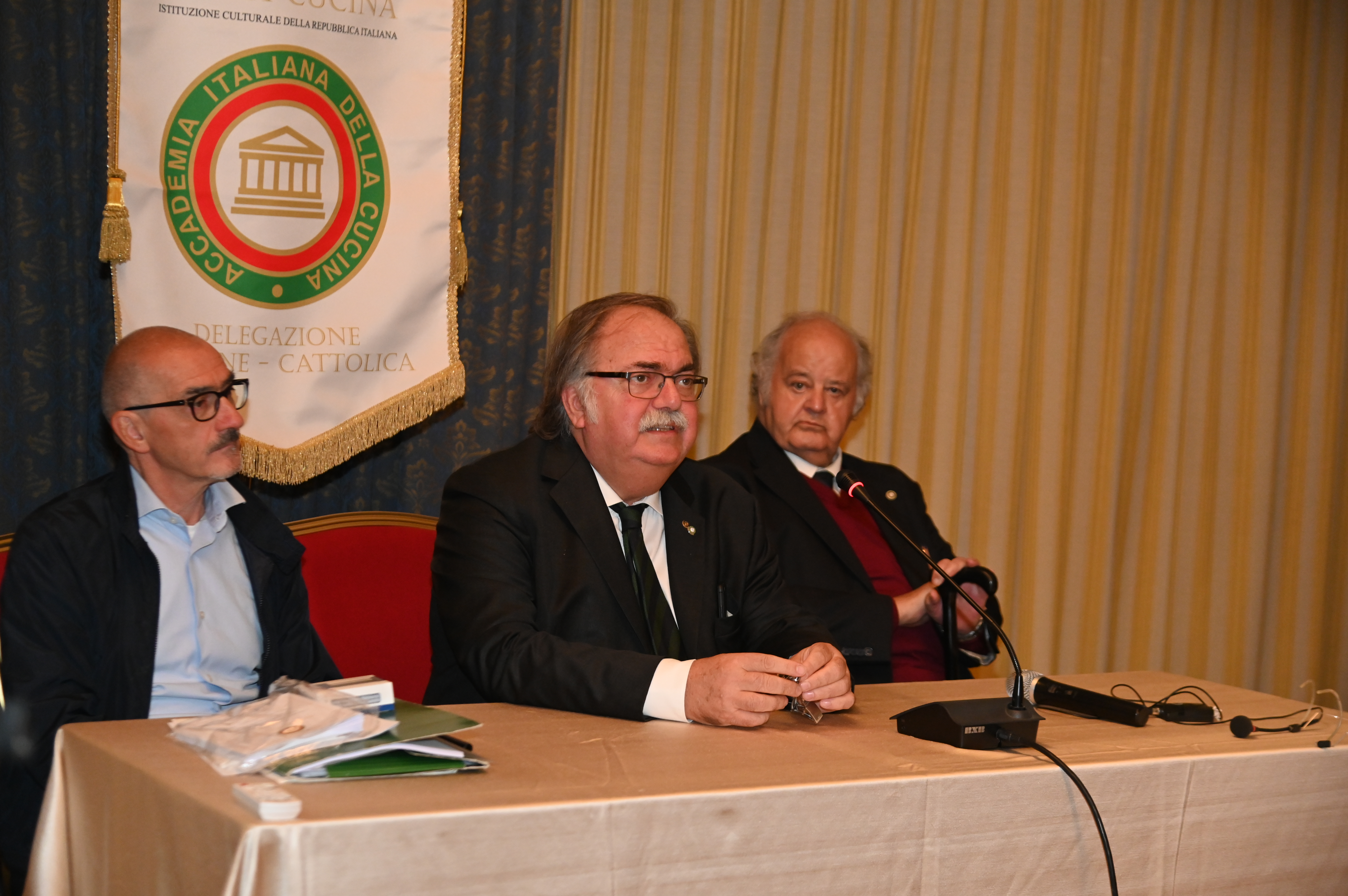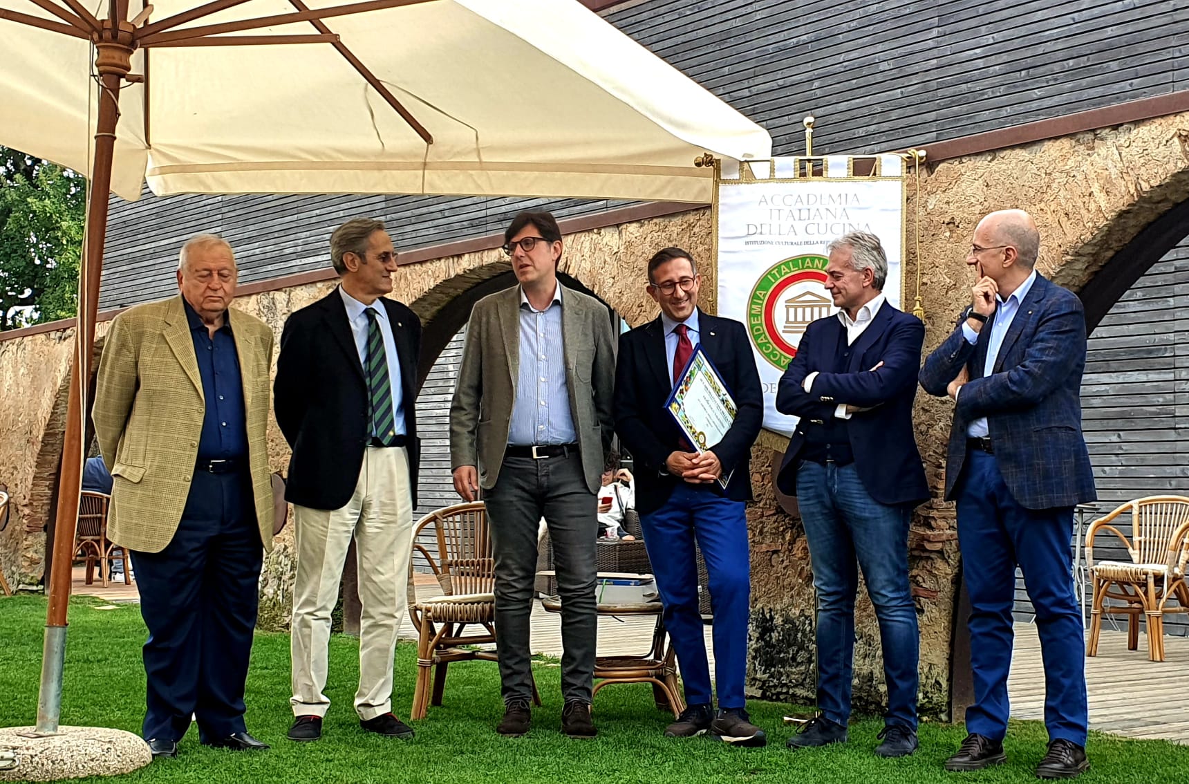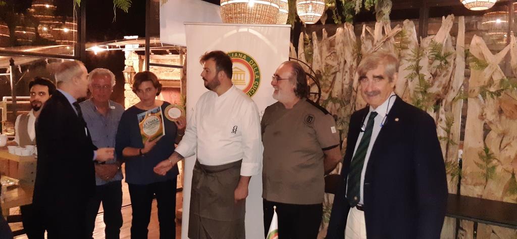 Nella splendida cornice di Villa Lattanzi è avvenuta la cerimonia di consegna dei Premi nazionali proposti dalla Delegazione di Fermo. La serata è stata presentata e aperta dai saluti del Delegato Fabio Torresi, cui sono seguiti gli interventi del Presidente della Camera di Commercio delle Marche Gino Sabatini, del CT Marche e Delegato di Ancona Sandro Marani, che ha esaltato il ruolo della nostra Istituzione nella salvaguardia della tradizione e il contributo dei Premi nella promozione delle eccellenze territoriali. Ad essi sono seguite, apprezzatissime, la relazione di Ugo Bellesi, Consultore nazionale AIC e Delegato di Macerata, titolata “Nuvoletti, Alberini e Villani insigni Accademici” e quella dell’Accademico di Pescara Aternum Leonardo Seghetti, membro del Centro Studi Franco Marenghi, su “Cucina della tradizione, prodotti tipici e valorizzazione del territorio”. La presenza del Prefetto Vincenza Filippi, al termine del suo incarico a Fermo, è stata l’occasione per i dovuti ringraziamenti per il lavoro svolto. Alla cerimonia è seguita la cena basata su piatti della tradizione interpretati dal giovane cuoco di Villa Lattanzi. Di gradimento assoluto sono stati i dolci finali.