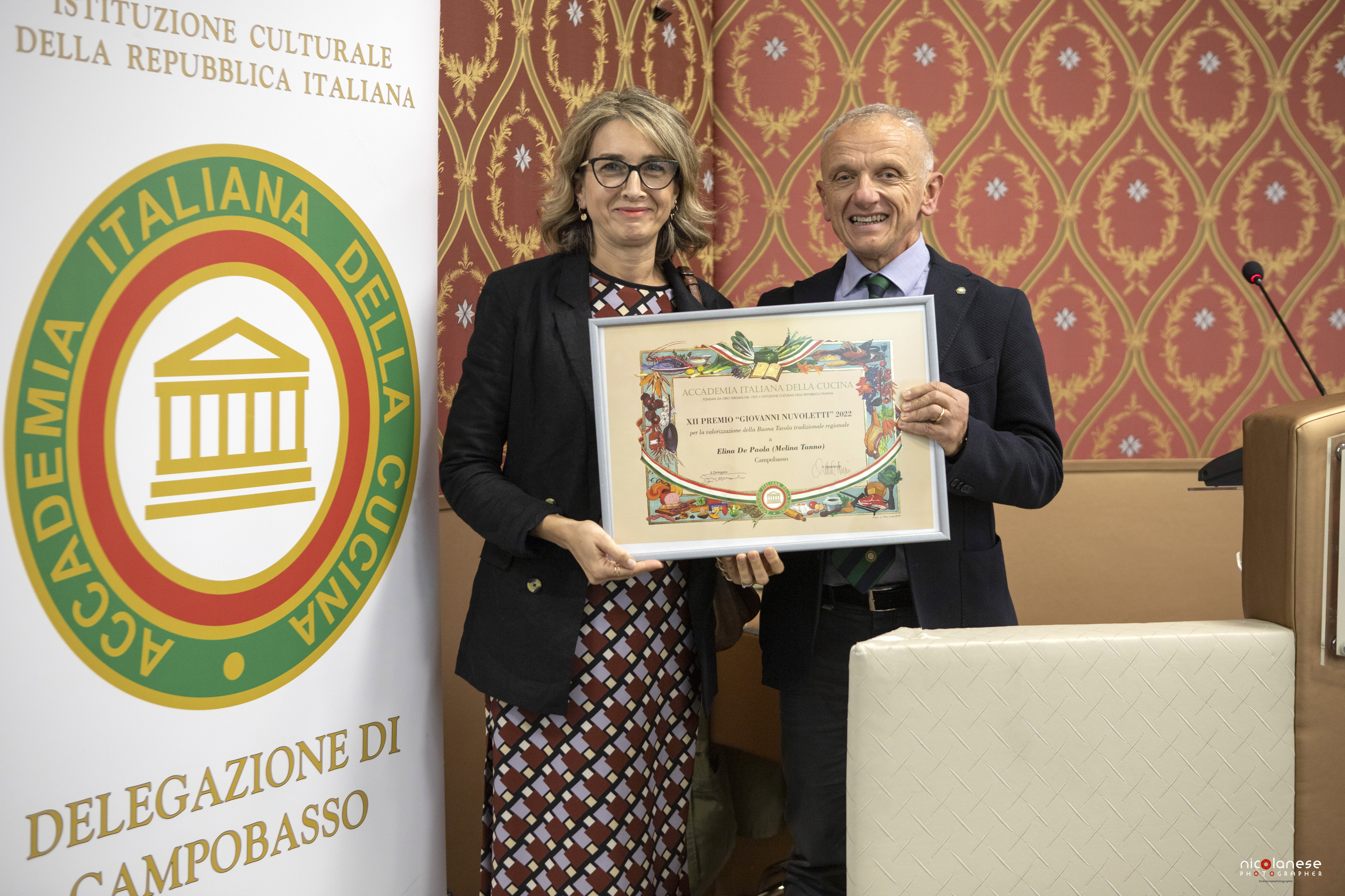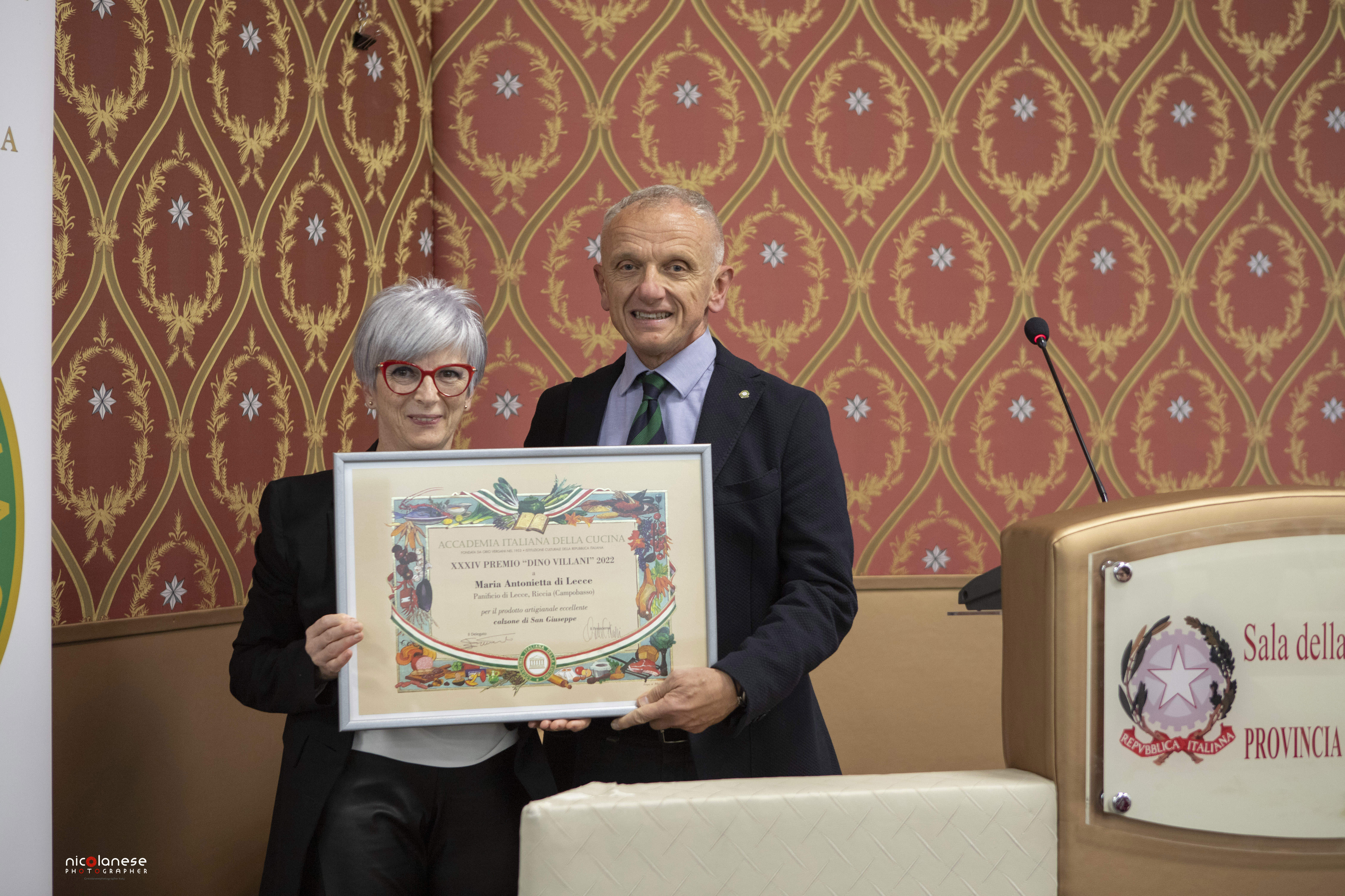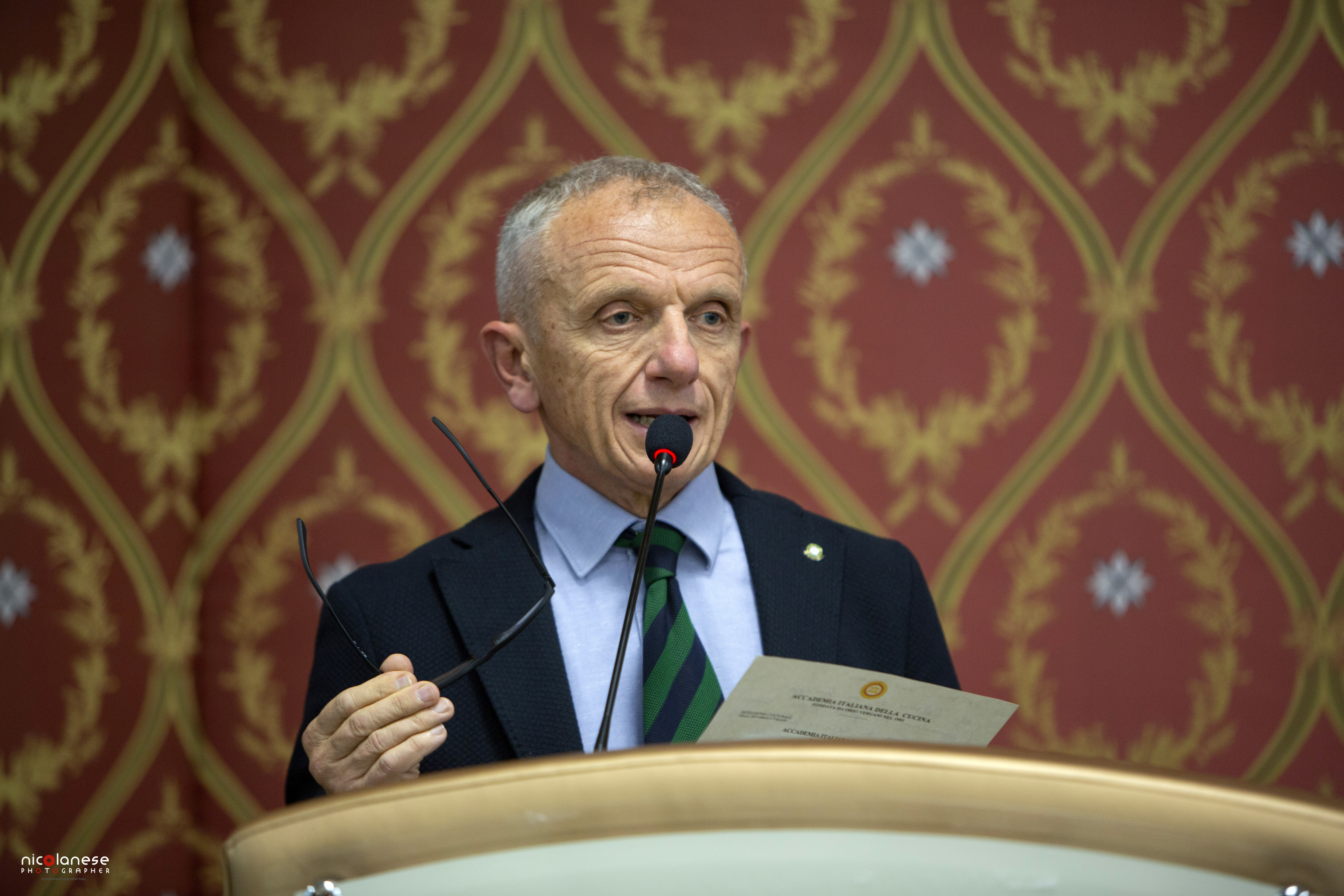 Nella splendida cornice di Villa Lattanzi è avvenuta la cerimonia di consegna dei Premi nazionali proposti dalla Delegazione di Fermo. La serata è stata presentata e aperta dai saluti del Delegato Fabio Torresi, cui sono seguiti gli interventi del Presidente della Camera di Commercio delle Marche Gino Sabatini, del CT Marche e Delegato di Ancona Sandro Marani, che ha esaltato il ruolo della nostra Istituzione nella salvaguardia della tradizione e il contributo dei Premi nella promozione delle eccellenze territoriali. Ad essi sono seguite, apprezzatissime, la relazione di Ugo Bellesi, Consultore nazionale AIC e Delegato di Macerata, titolata “Nuvoletti, Alberini e Villani insigni Accademici” e quella dell’Accademico di Pescara Aternum Leonardo Seghetti, membro del Centro Studi Franco Marenghi, su “Cucina della tradizione, prodotti tipici e valorizzazione del territorio”. La presenza del Prefetto Vincenza Filippi, al termine del suo incarico a Fermo, è stata l’occasione per i dovuti ringraziamenti per il lavoro svolto. Alla cerimonia è seguita la cena basata su piatti della tradizione interpretati dal giovane cuoco di Villa Lattanzi. Di gradimento assoluto sono stati i dolci finali.