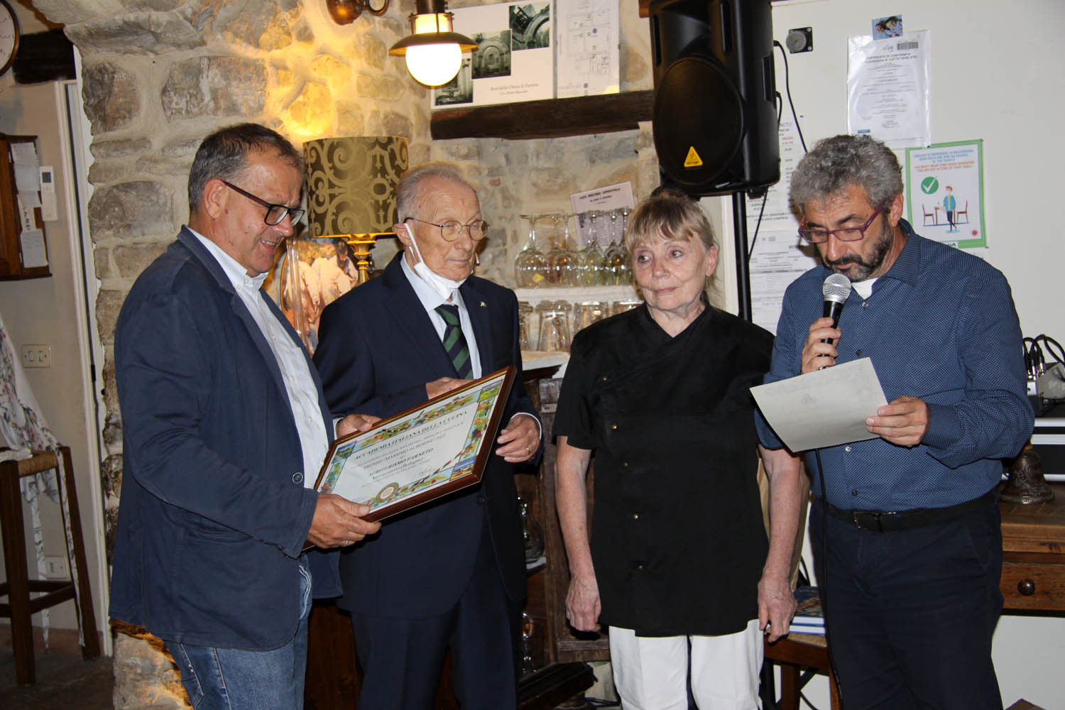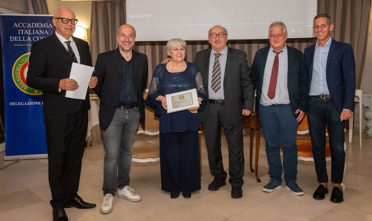 Nella suggestiva cornice dell’Agriturismo Il Farneto, a cavallo tra il comune di Castel San Pietro Terme e quello di Monterenzio, si è tenuta la riunione conviviale della Delegazione locale in occasione della quale è stato conferito alla titolare Marisa il prestigioso “Premio Massimo Alberini”, intitolato al giornalista e storico della gastronomia, assegnato a quelle attività che da lungo tempo, e con qualità costante, offrono al pubblico alimenti di produzione propria, lavorati artigianalmente con ingredienti di qualità eccellente e tecniche rispettose della tradizione del territorio, del codice etico e delle norme vigenti, a cui fa il paio un altro riconoscimento consegnato dal Sindaco di Monterenzio, Ivan Mantovani. Emozionata dai premi ricevuti, la famiglia proprietaria dello storico agriturismo, ha ripagato pienamente la stima ricevuto, portando sulla tavola piatti realizzati interamente con materia prima a filiera cortissima, proveniente dal loro macello, dal loro caseificio e dai loro campi. Una serata promossa a pieni voti da tutti i presenti.