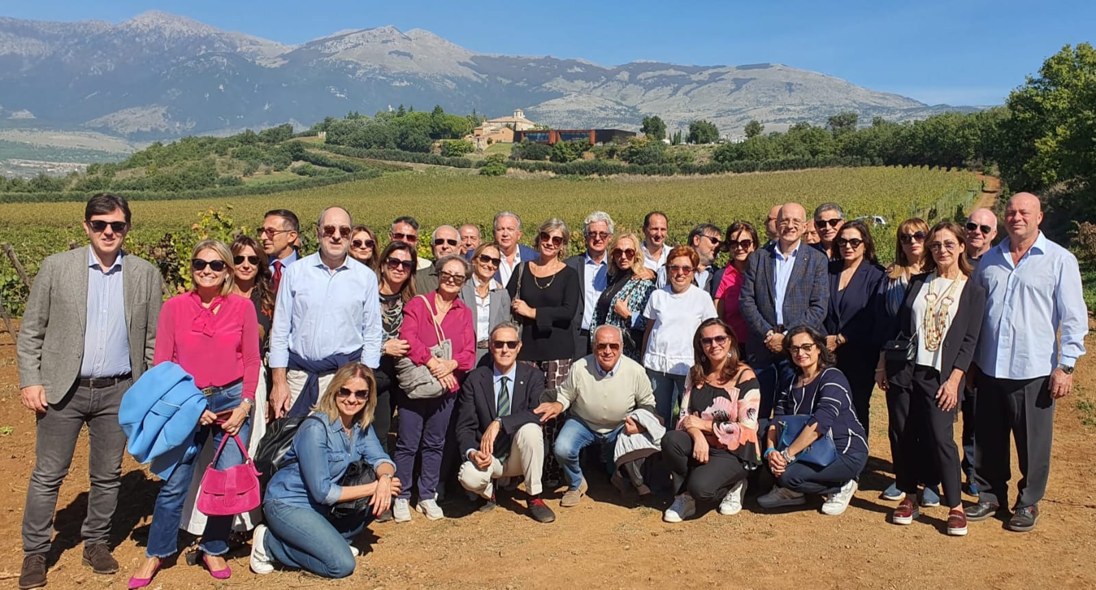 Si è tenuta in uno degli angoli più belli e suggestivi della Calabria la riunione conviviale d’autunno organizzata dalla Delegazione di Cosenza presso la Tenuta Ferrocinto a Castrovillari. Partendo dalle vigne con sullo sfondo la moderna cantina, l’antico fortilizio e il massiccio del Pollino, gli Accademici hanno avuto modo di assistere ad un momento di vendemmia (foto 1 e 2). Guidati dall’enologo e dal titolare della cantina Ferrocinto tra i filari dei vigneti sperimentali per il recupero di vitigni autoctoni, si è giunti alla barricaia e al locale di affinamento dello spumante metodo classico, con sboccatura effettuata al momento. La bella e panoramica sala del ristorante annesso ha costituito l’ideale cornice del momento conviviale con finale all’aperto dedicato ai dolci di territorio. Ospiti per l’occasione, il presidente regionale dell’AIS Antonio Fusco che ha parlato degli accostamenti tra cibo e vino, l’Assessore Regionale all’Agricoltura Gianluca Gallo, il giornalista gastronomico Gianfranco Manfredi. La conversazione con l’Accademico Perciaccante (foto 3) e la consegna del diploma al nuovo Accademico Francesco Valentini (foto 4) hanno concluso la piacevole giornata.