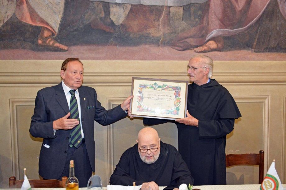 Gli Accademici delle due Delegazioni, alla presenza del Presidente Paolo Petroni, si sono riuniti nel Santuario di Monte Senario, uno dei più antichi della Toscana (1234), circondato da una splendida abetaia e situato nel Comune di Vaglia (FI). L'evento conviviale si è tenuta nel suggestivo refettorio del Convento, dove gli Accademici e le numerose autorità presenti - tra cui il Segretario Generale e Delegato di Firenze Roberto Ariani, il CT Toscana Est Roberto Vasarri, il DCS Toscana Est Roberto Doretti e il Sindaco di Vaglia Leonardo Borchi - sono stati ospitati dai Frati dell’Ordine dei Servi di Maria per condividere la loro mensa. Dopo i saluti e i ringraziamenti della Delegata del Mugello Monica Sforzini, il Segretario Generale Roberto Ariani, quale Delegato di Firenze, ha evidenziato l’importanza che da sempre il Santuario ha per i fiorentini. L’occasione dell’incontro è stata la consegna ai Frati Serviti del prestigioso Premio “Dino Villani” 2022 per la “Gemma d’Abeto”, un liquore di raffinata bontà prodotto dal 1865 ai giorni nostri, prima nella farmacia e poi nella Distilleria del Convento, secondo una antica ricetta gelosamente custodita e tramandata dai Frati. Durante la cerimonia di consegna del premio il Presidente Petroni ha ricordato in particolare la figura di Dino Villani, maestro di pubblicità, fondatore tra i più insigni dell’Accademia e ideatore del premio. Foto 1. Il refettorio durante i saluti della Delegata. Foto 2. Intervento del Presidente Paolo Petroni. Foto 3. Consegna del Premio a Padre Giovanni M. Sperman. Foto 4. L'intervento del Segretario Generale e Delegato di Firenze Roberto Ariani.