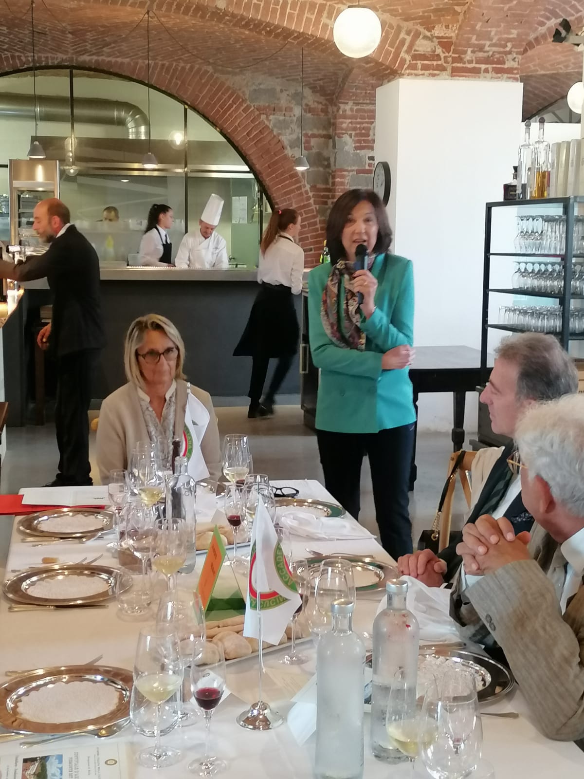 La Delegazione di Biella ha ospitato la seconda edizione della riunione riunione conviviale d’Area Piemonte Est, nata da un’idea del Coordinatore Territoriale Piero Spaini, nonché Delegato di Novara. Erano presenti tutte le 8 Delegazioni con una rappresentanza di Accademici: Alessandria, Asti, Monferrato, Novara, Val d’Ossola, Verbano-Cusio e Vercelli. La Delegata di Biella Maria Luisa Bertotto, organizzatrice dell’incontro, ha accolto il folto gruppo del mondo accademico piemontese nei locali della Fondazione Pistoletto Cittadellarte. Dopo la visita alle sale della Fondazione, l’aperitivo e il pranzo si solo svolti nelle Sale Auliche e nella caffetteria “Bistrot Le Arti”. Sono stati utilizzati ingredienti tipici biellesi e ricette di personaggi illustri di storia locale, dal cuoco di Casa Savoia, Giovanni Vialardi, ad un piatto creato dal Generale La Marmora, figura di spicco del Risorgimento Italiano. Gli artefici della parte gastronomica sono stati Franco ed Ivan Ramella supportati da uno staff di collaboratori efficienti. All’incontro erano presenti Elisabetta Cocito, direttore del CST Piemonte e membro del Centro Studi Franco Marenghi che ha illustrato la storia dei ravioli, il coordinatore dell’area Ovest, Alberto Negro, e Cristina Ciusa Delegata di Milano Navigli. Foto 1. Gruppo dei Delegati. Foto 2. Intervento di E. Cocito. Foto 3. CT e Delegato P. Spaini. Foto 4. Lo chef Ramella; preparazioni.
