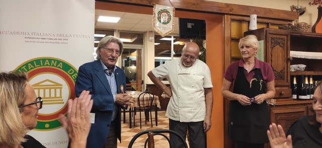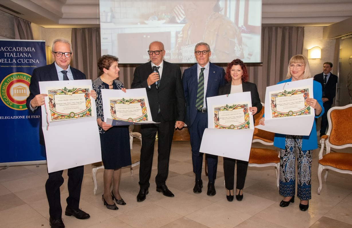 Sotto l’attenta guida della nuova Delegata di Pordenone, Cristina Sist, si è celebrata la consegna dei prestigiosi Premi Dino Villani, Massimo Alberini e Giovanni Nuvoletti durante il convivio di autunno organizzato presso il ristorante Hotel Moderno. Ospite d’onore della serata Gildo Fanzago, per molto tempo ristoratore a Porcia e punto di riferimento della buona cucina nel pordenonese nonché decano della categoria. Il premio “Dino Villani” è stato assegnato a Luigi Carlo Fabbro, titolare della ditta Dorth 1931, attiva ad Aviano come macelleria e nella produzione e stagionatura di salami, speck, mortadelle, culatta e prosciutto artigianale, tutti di elevata qualità. A congratularsi con il vincitore è intervenuto anche il sindaco di Aviano, Paolo Tassan Zanin. Il premio “Massimo Alberini” è stato assegnato a Giuseppe Faggiotto, titolare della storica (fondata nel 1873) pasticceria Peratoner di Pordenone. Al premiato è giunto un messaggio di felicitazioni da parte del sindaco di Pordenone, Alessandro Ciriani, e del presidente della Regione, Massimiliano Fedriga. Il premio “Giovanni Nuvoletti” è stato assegnato a Federico Mariutti, giovane chef (classe 1984) e gestore dell’Osteria Turlonia, una piccola e ospitale trattoria ubicata a Praturlone di Fiume Veneto. La consegna del premio è stata fatta da Jessica Canton, sindaco di Fiume Veneto.