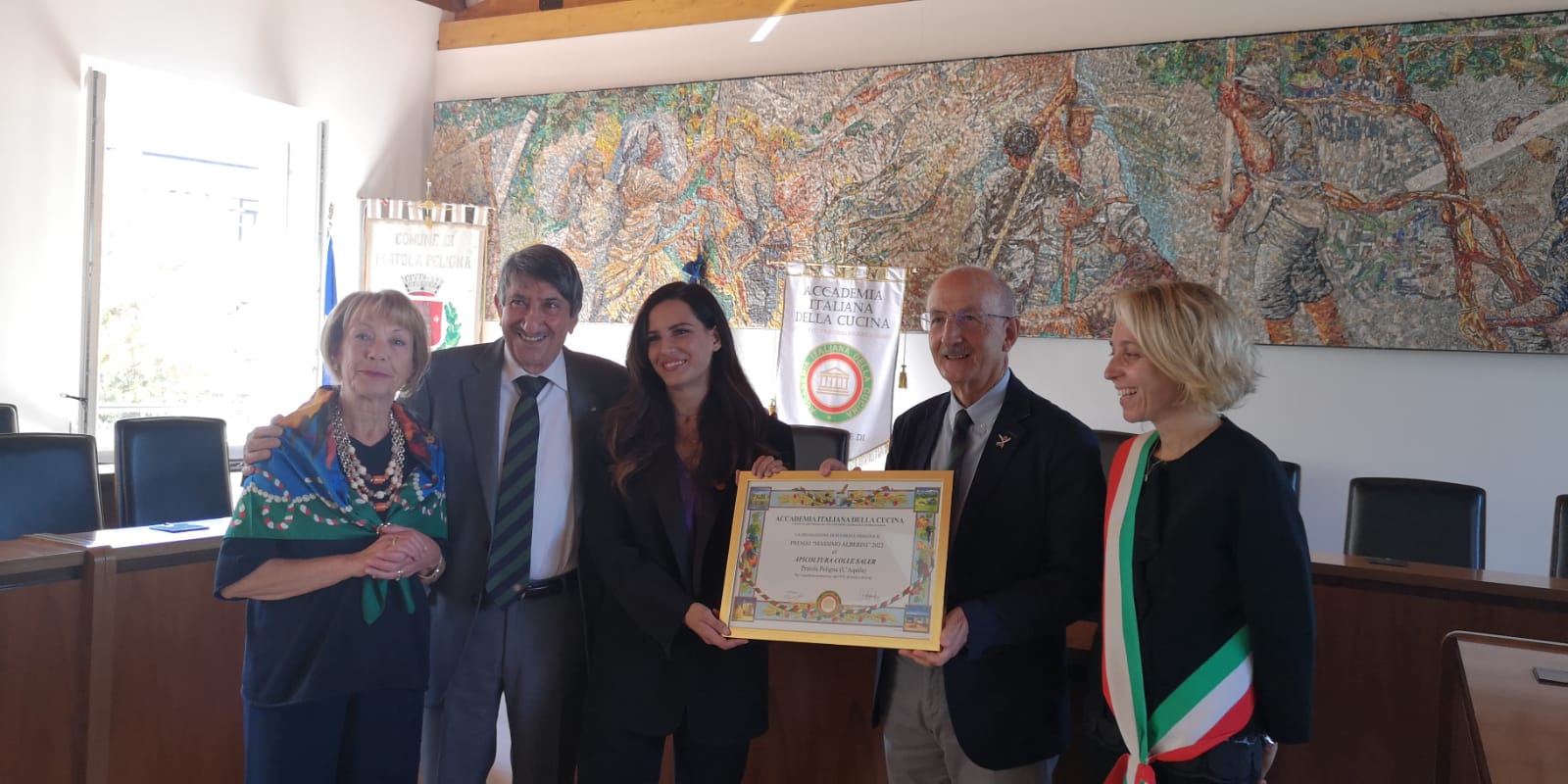 Consegnato il 5 ottobre 2022 nella Sala Consiliare del Comune di Pratola Peligna, dalla Delegazione di Sulmona, il Premio Massimo Alberini all'Apicoltura Colle Salera. Foto 1. Il Delegato Giovanni Maria D'Amario, il Sindaco Antonella Di Nino, la Vice Delegata Maria Carmela Petrucci e l'Accademico Gianvincenzo D'Andrea. Foto 2. La consegna del Premio. Foto 3. Il Delegato dona al Sindaco di Pratola Peligna il Volume "Storia della cucina italiana a fumetti".