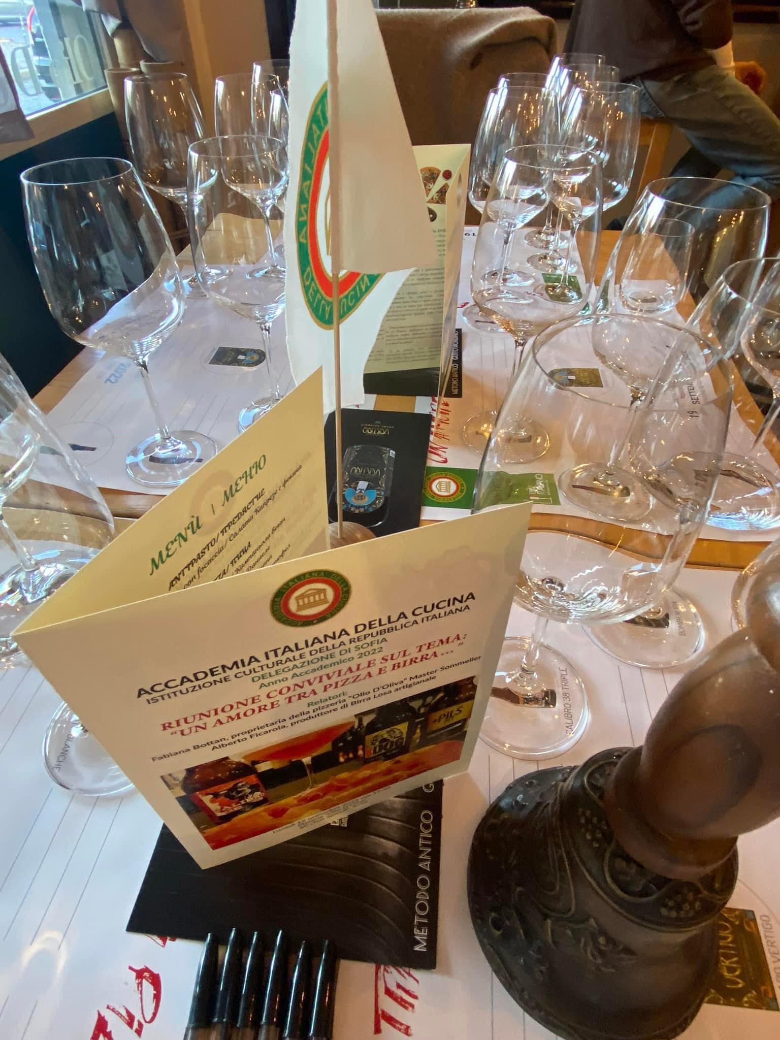 Riunione conviviale presso la pizzeria Olio D'Oliva sul tema: “Un amore tra pizza e birra…”. Storia, cultura, tradizioni, passione, produzione artigianale uniscono il grande amore tra pizza e birra. Grani dei vasti campi della soleggiata Sicilia e olio d'oliva dei freschi pendii di Terracina per completare le aromatiche pizze del locale di Fabiana Bottan e Carlo Di Principe, dediti alla missione di soddisfare anche i gusti più raffinati. Questa magia si è unita ai colori delle birre chiare, ambrate, scure dei campi d'orzo di Latina, dai sapori inebrianti e aromi di diverse intensità. Così è stato l’incontro della Delegazione di Sofia, una magia che ha affascinato Accademici e ospiti. Presente anche S.E. Giuseppina Zarra, Ambasciatrice d'Italia in Bulgaria. Complimenti e ringraziamenti meritati a Fabiana Bottan, Carlo Di Principe e al loro team.