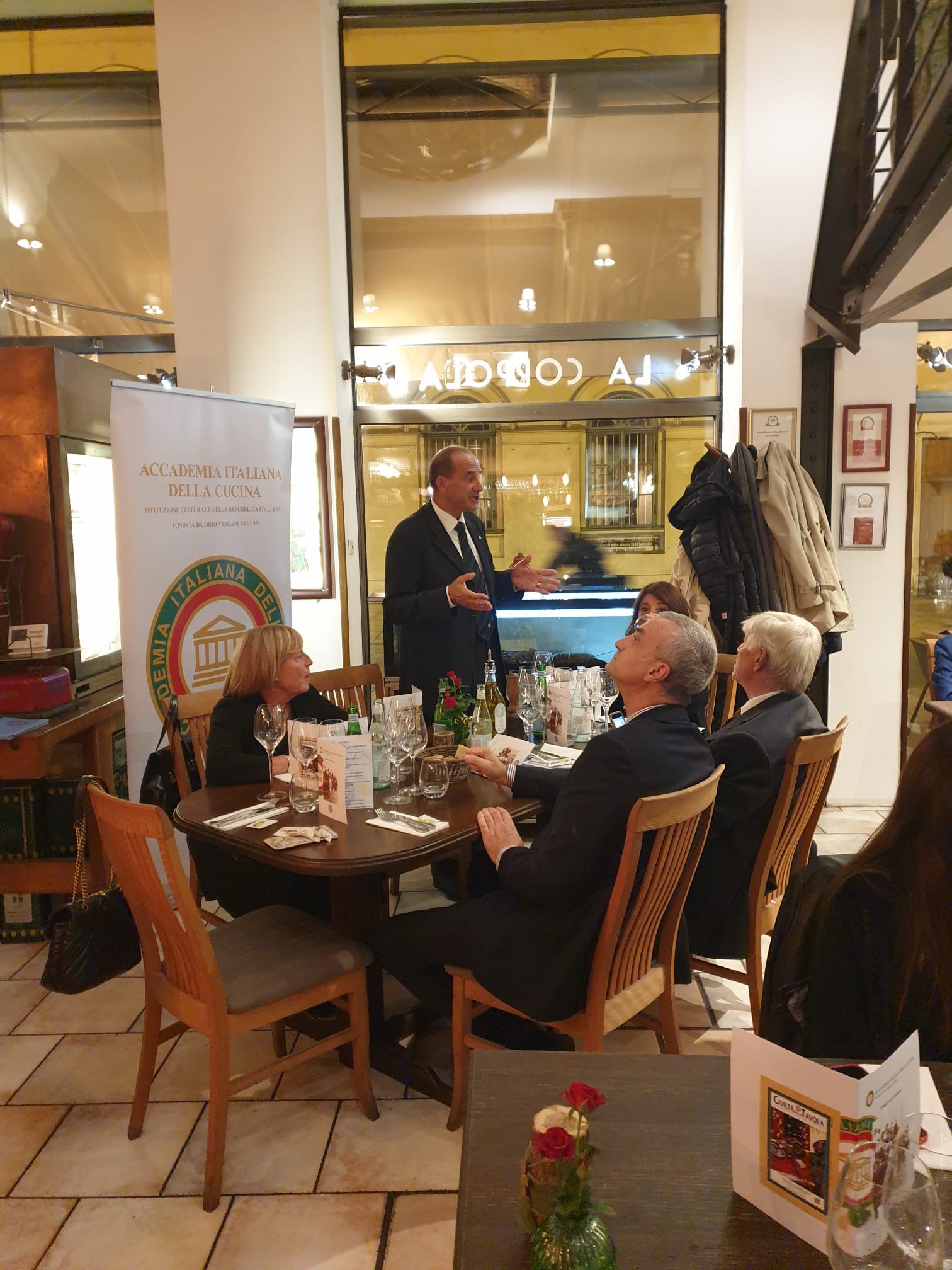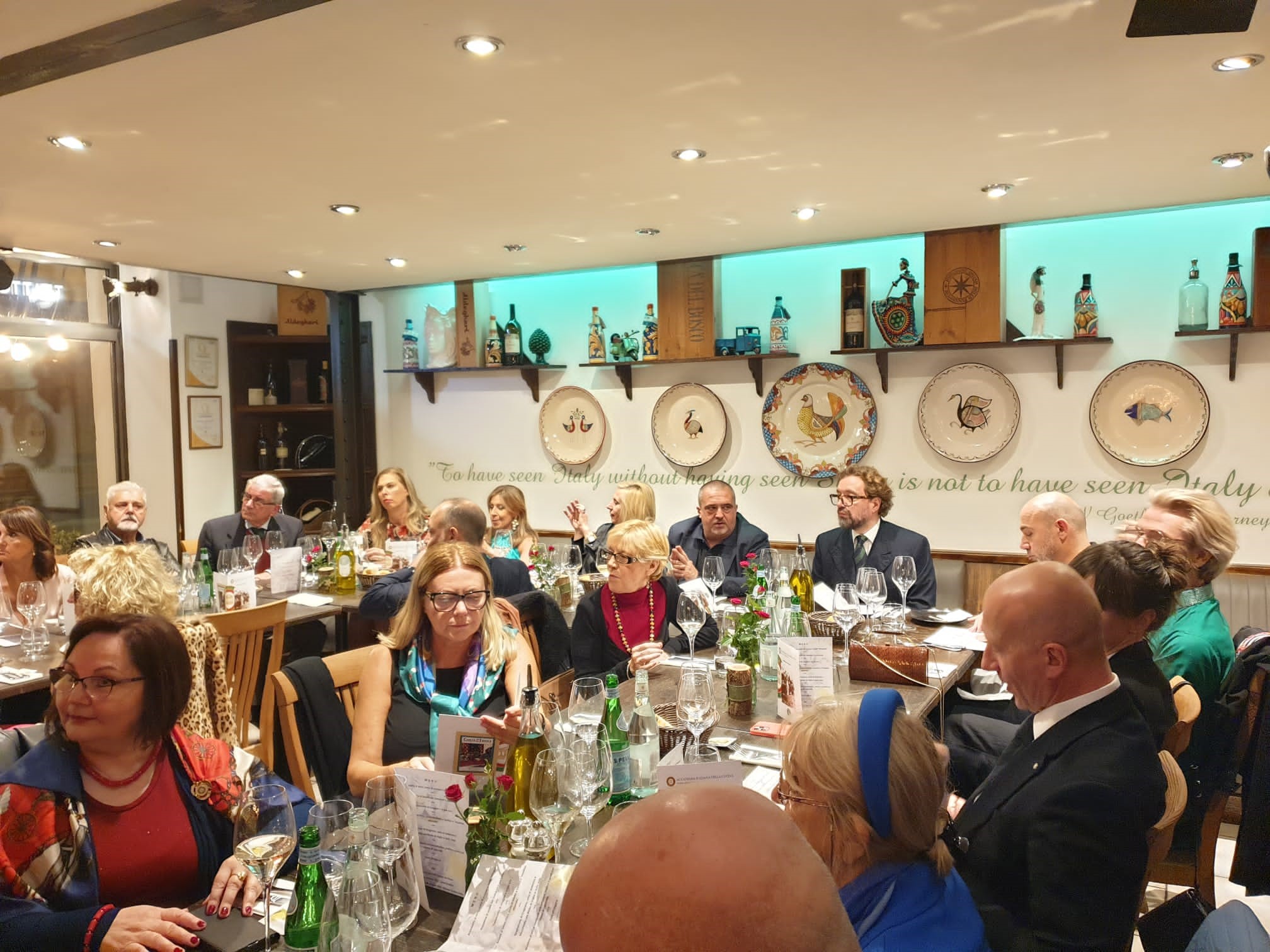 Un vero scorcio di Sicilia con i suoi colori e i suoi sapori ha accolto la folta rappresentanza di Accademici di Budapest presenti alla riunione conviviale di fine estate al ristorante "La coppola". Il menu, concordato con il Simposiarca, ha esaltato le indiscusse abilità dello chef Vincenzo Manzella che ha dato il meglio di sé combinando sapientemente gusti e percezione visiva, coinvolgendo i presenti in una esperienza sensoriale a tutto tondo. Unanime il giudizio di apprezzamento. Relatrice della serata è stata l'Accademica Patrizia Scaduti Sauli che ha intrattenuto i convenuti sul tema: “La cultura della cucina siciliana: una millenaria storia di contaminazioni”.