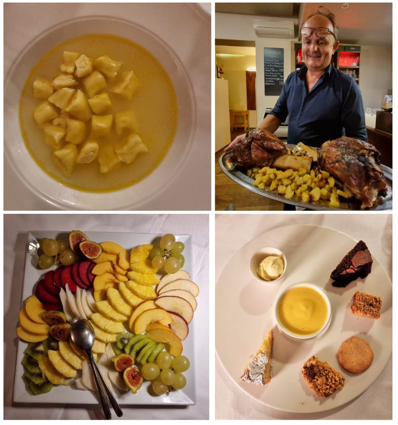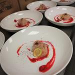 Gli Accademici si sono ritrovati al ristorante “Il rosmarino” a Crevoladossola, locale gestito dal giovane chef Luca Zaccheo, il quale ama sperimentare, sempre con una particolare attenzione ai prodotti del territorio. Il ristorante si trova in cima alla salita del ponte di Crevole e dalla sala e dalla terrazza si può godere di uno splendido panorama su tutta la piana di Domodossola. Bollicine di benvenuto e crostini con lardo ossolano seguiti dall’antipasto composto da zucca al forno con barbabietola marinata e caprino fresco gratinato alla polvere di porcino. Sontuosi panzerotti ripieni di porcini su letto di erbette dell’orto con pancetta croccante come primo piatto, e come secondo, un tenerissimo filetto di maialino affumicato, cotto a bassa temperatura accompagnato da una delicata salsa ai funghi, di sicuro il piatto più apprezzato dai presenti. Per dessert la classica fiocca, un dolce semplice ma che ben si sposava con i frutti di bosco. Luca Zaccheo è un giovanissimo chef che entra nell’ambiente della ristorazione locale e comincia a farsi conoscere e apprezzare per le sue qualità, non potrà fare altro che migliorare e progredire.