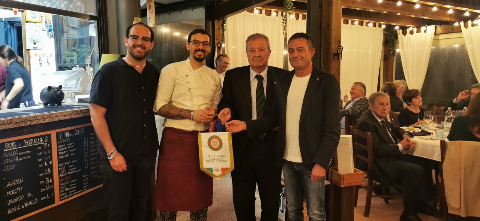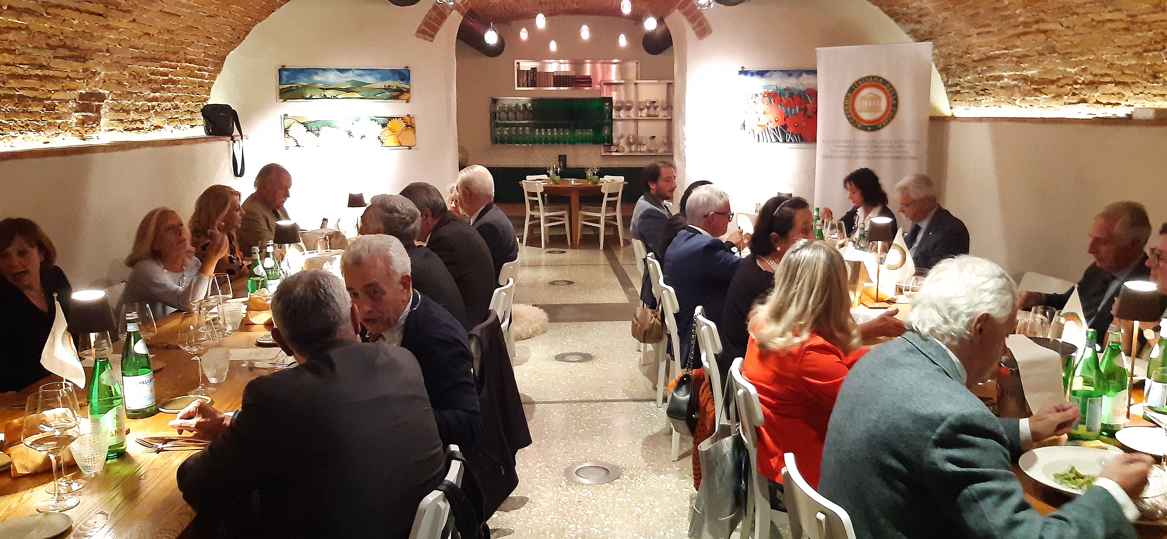 Un lungo abbraccio associativo all’Accademico Renato Andalò ha coronato la riunione conviviale settembrina tenutasi nel chiosco-ristorante Soul Kitchen di Toscanella di Dozza. Proprio nei giorni precedenti, Renato aveva donato all’Istituto di Riabilitazione di Montecatone un pulmino da 9 posti per degenti e famigliari. E la Delegazione ha reso omaggio all'Accademico consegnandogli un omaggio associativo tra gli applausi dei presenti. La serata è poi proseguita visitando il locale aperto da poco più di tre anni dai due giovani fratelli Russomanno che non si sono arresi davanti al concomitante inizio pandemico. Una scelta coraggiosa ma premiata, come testimoniato dalla qualità dei piatti, alcuni dei quali ad alto gradimento, degli abbinamenti con i vini e del servizio preciso ed efficiente emersi durante il convivio.