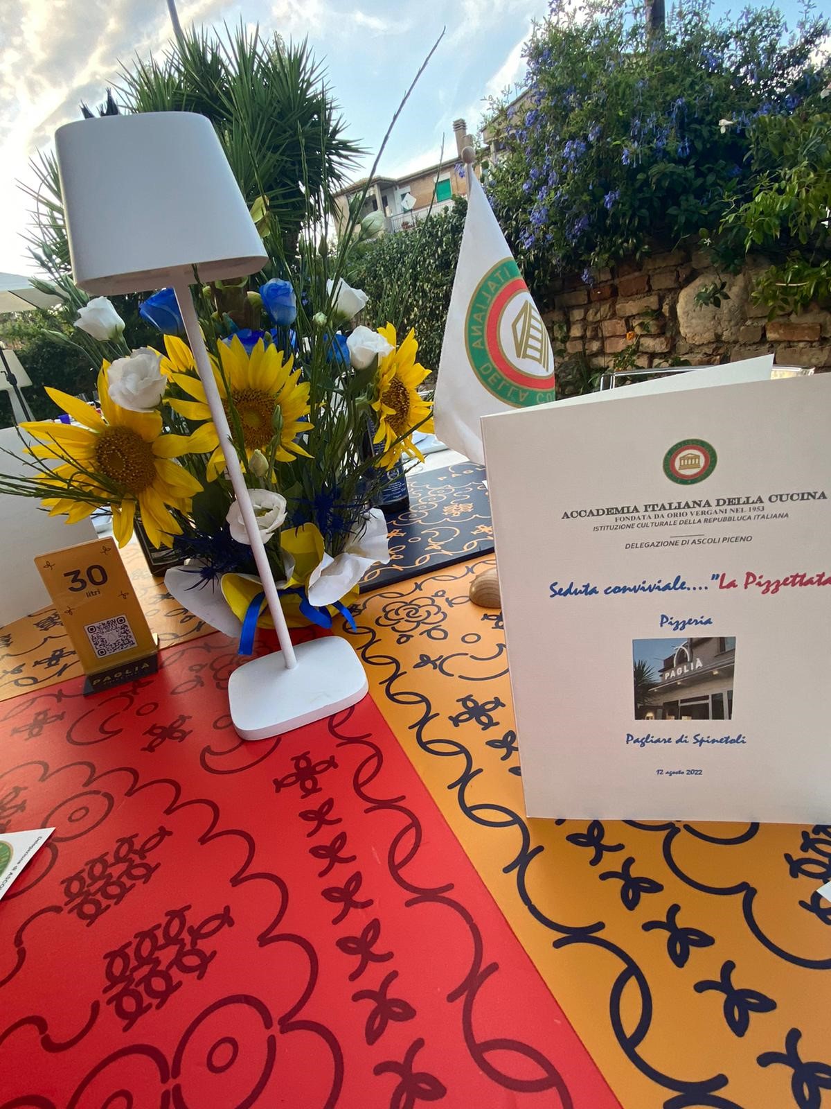 La Delegazione di Ascoli Piceno ha rispettato anche quest’anno l’attuazione della tradizione della “Pizzettata” che il Delegato Vittorio Ricci ha instaurato tempo fa dopo il riconoscimento dell’UNESCO, nel 2017, de "L'arte tradizionale del pizzaiuolo napoletano” come “patrimonio culturale immateriale dell’umanità”. Quest’anno si è celebrato l’evento, con grande successo di presenze e con gradimento unanime dei vari tipi di pizza, presso una pizzeria proposta dal Simposiarca Tiziano Palma, denominata “Paglià, pizza e fichi” in località Pagliare di Spinetoli (Ascoli Piceno) che lavora esclusivamente con ingredienti freschi genuini, molti dei quali prodotti in appezzamenti di terreno di proprietà, disdegnando prodotti industriali in scatola. Ad assaporare i tanti tipi di pizza in menu, magnificamente e sapientemente elaborati dai cuochi Isaia D’Angelo, Gabriele Eusebi e Franco Pizzingrilli, oltre agli Accademici erano presenti anche il Sindaco di Spinetoli, ing. Alessandro Luciani, e un’Accademica d’eccezione, la Delegata di Sofia (Bulgaria) Penka Nesheva che ha gradito molto le varie portate e apprezzato l’iniziativa annuale della Delegazione dedicata alla pizza (foto 1 da sinistra: il Sindaco Luciani, il Simposiarca Palma, il Delegato Ricci, la Delegata Nesheva). Al termine della serata, il Simposiarca ha voluto donare a tutti gli astanti un’ampolla con olio prodotto da un frantoio del territorio marchigiano.