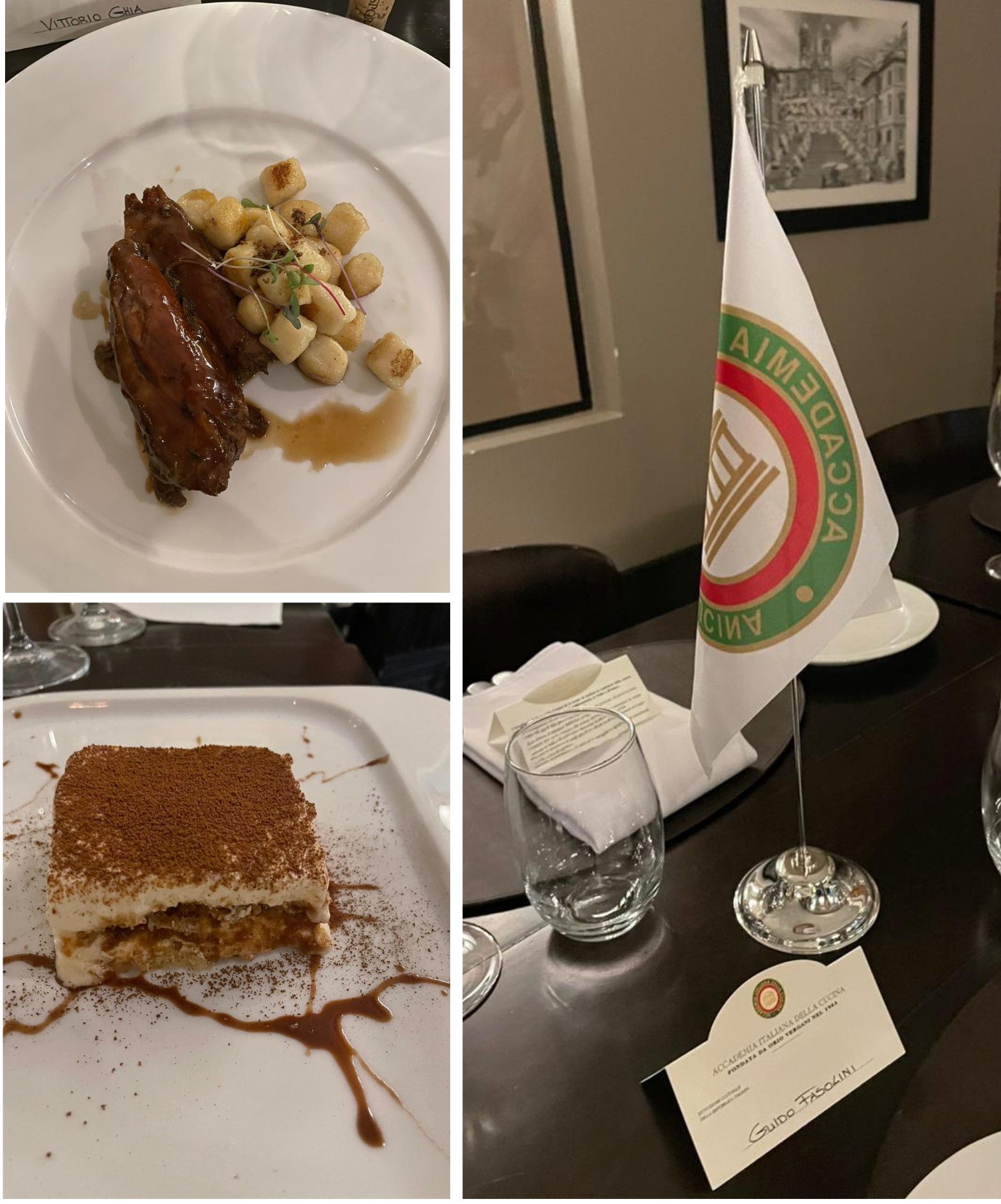 Riunione conviviale della Legazione Washington DC presso il ristorante Quattro Osteria dei fratelli napoletani Giovanni e Salvio Ippolito che, dopo l'esperienza a Miami e Washington, nel 2019 si sono messi in proprio aprendo il bistrot. Il locale è ben arredato e accogliente ma la serata si è tenuta all'esterno, in una zona molto rumorosa, il che non ha favorito tanto la convivialità. Foto 1. Interno. Foto 2. Accademici. Foto 3. Le portate della serata.