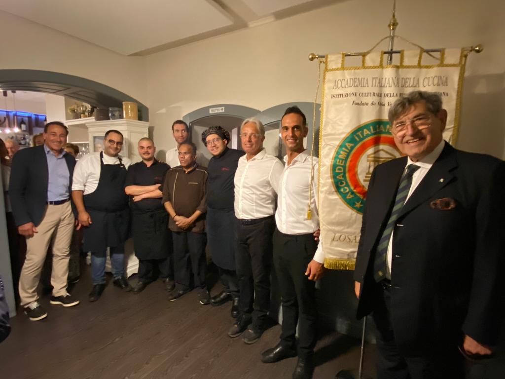 Gradevole, succulenta e gioiosa riunione conviviale organizzata congiuntamente dalle Delegazioni della Suisse romande e di Losanna-Vennes al ristorante “Magna Grecia” di Guido Quintino (Renens, Vaud). Serata in onore della cucina tradizionale della Sicilia, preparata da una brigata di cucina motivata, fiera delle proprie origini siciliane, e servita da una brigata di sala efficiente, sorridente e ben coordinata da Domenico Niglia. Guido Quintino è stato affiancato in cucina dallo chef Domenico Gurnari del ristorante “Côté Jardin” del Palace Hotel di Losanna. Dopo i cenni storici sulle vivande presentate da Mara Marino (Segretaria della Delegazione della Suisse Romande) e, dopo la presentazione degli ospiti e la relazione sulla cucina tradizionale siciliana del Delegato di Losanna-Vennes Alessandro Caponi, il menu è stato apprezzato unanimemente, con vivaci scambi ai tavoli che hanno preparato il rituale della critica alla fine del convivio, applaudita a più riprese. La Delegata Zena Marchettini-Jeanbart ha consegnato al ristorante il guidoncino dell’Accademia, largamente meritato.