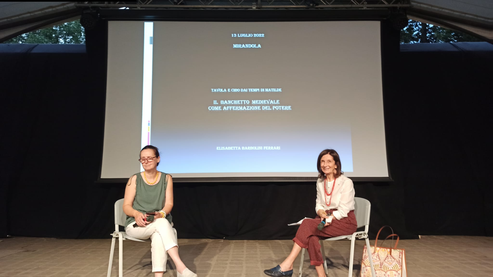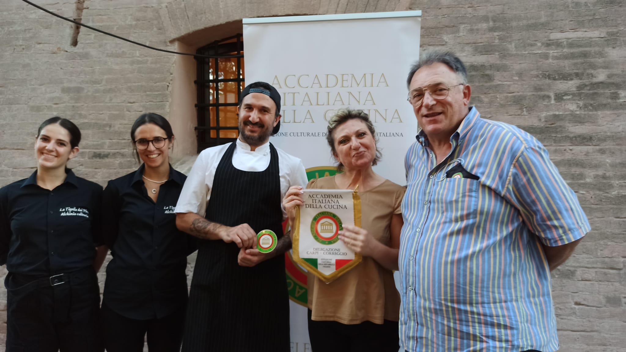 Riunione conviviale suggestiva organizzata dalla Delegazione Carpi-Correggio presso il ristorante “La tigella dei Pico”, al piano terra della ricostruita torre del castello di Mirandola - che ha subito i danni del terremoto del 2012 - a testimonianza della capacità del territorio di rispondere alle avversità (foto 1). Il Simposiarca Marco Catellani ha presentato il convivio in modo impeccabile con il supporto della titolare Simona che ha ricevuto le insegne accademiche per l’ospitalità e per il menu estivo eccellente (la titolare e lo staff in foto 2 con il Delegato). Il pranzo ha preceduto la conferenza organizzata dall'associazione Terra e Identità e dal Comune di Mirandola in cui è intervenuta Elisabetta Barbolini Ferrari (foto 3), Direttrice del Centro Studi Emilia AIC e Accademica di Carpi-Correggio. La relatrice ha trattato il tema "Il banchetto medievale come strumento di potere”. All’evento erano presenti gli Accademici di Carpi-Correggio con il Delegato Pier Paolo Veroni e il Delegato di Bologna dei Bentivoglio Mauro Taddia.