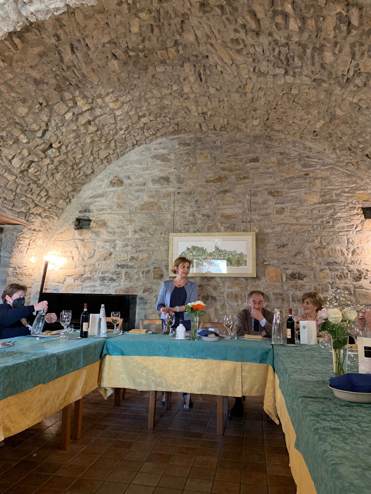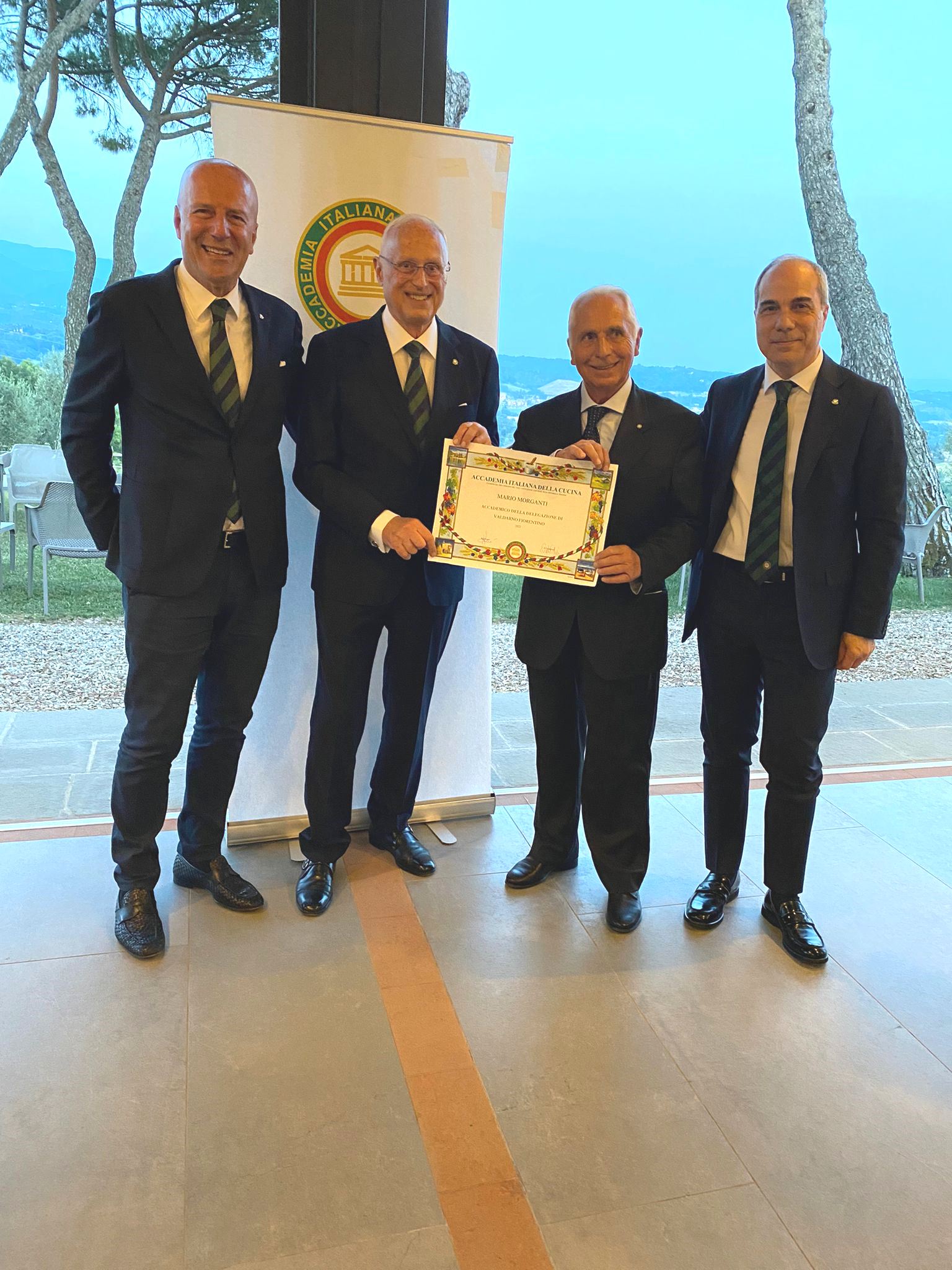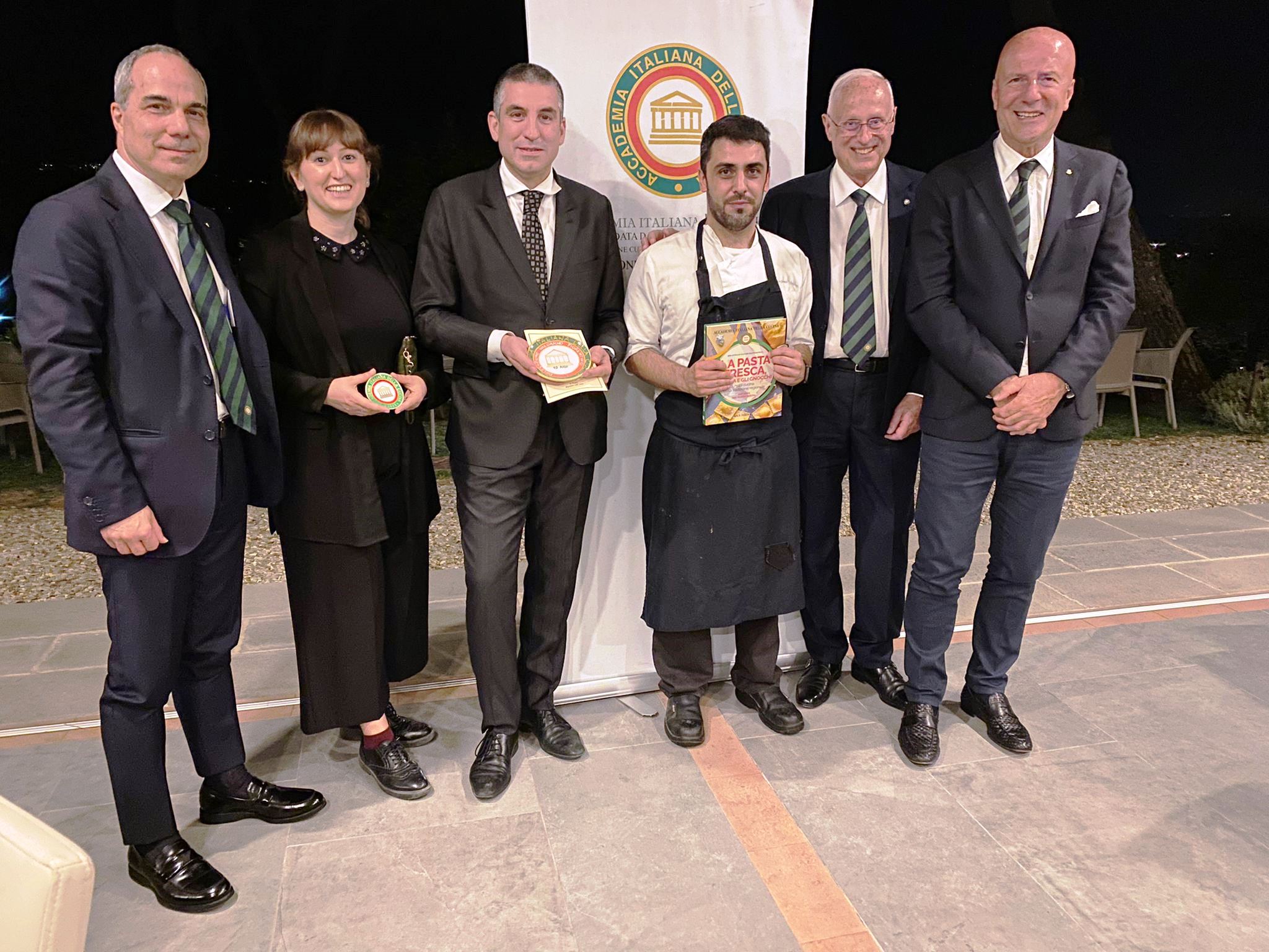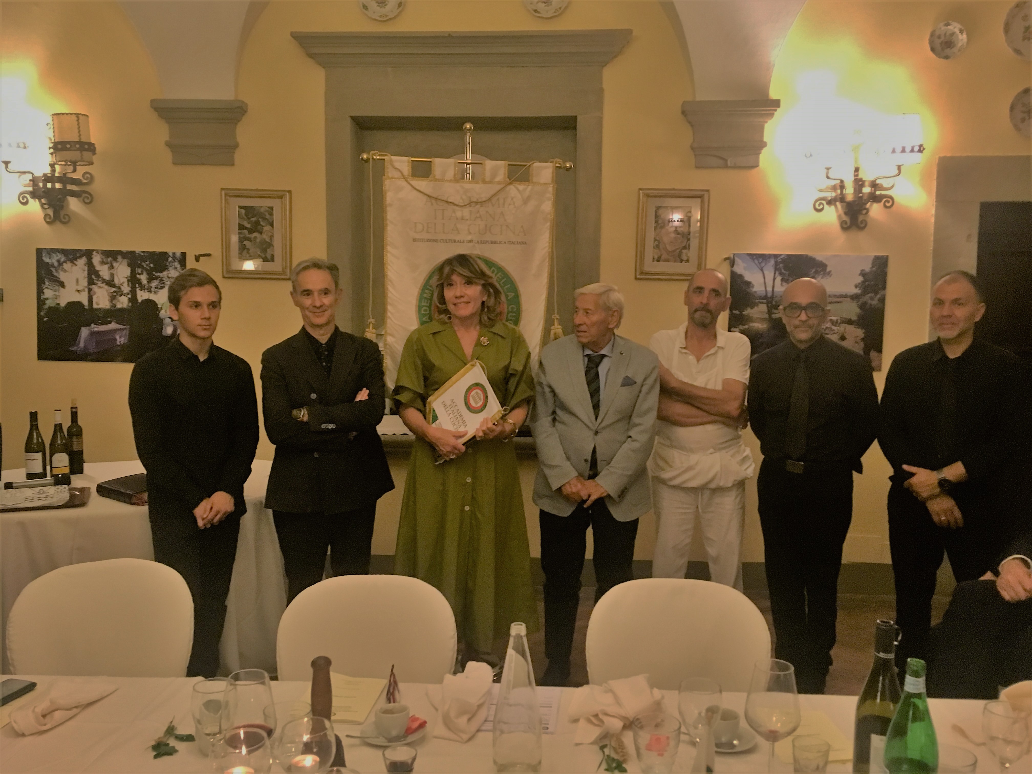 La riunione conviviale per celebrare il decimo anniversario di fondazione della Delegazione del Valdarno Fiorentino si è tenuta al ristorante Al Pruno, all’interno del bellissimo Resort 37 a Rignano sull’Arno, alla presenza del Segretario Generale Roberto Ariani, del Coordinatore Territoriale Toscana Est Roberto Vasarri e di altri Delegati e ospiti. La riunione è stata introdotta dal Delegato Sandro Fusari che ha riassunto le attività culturali e conviviali svolte dalla Delegazione nei dieci anni. A seguire sono intervenuti: Ruggero Larco, Delegato del Valdarno Fiorentino per nove anni, che ha riferito anche della propria attività come Direttore del Centro Studi della Toscana, Roberto Vasarri, che ha ricordato il fermento che ha accompagnato la nascita della Delegazione e, a concludere, Roberto Ariani che, dopo aver ringraziato del lavoro svolto con grande passione, ha sottolineato i valori fondanti dell’Accademia (in foto 1 L’intervento del Segretario Generale Roberto Ariani). Durante la serata si è dato il benvenuto all’Accademica Carmencita Bua, trasferitasi dalla Delegazione di Boston e alla investitura del nuovo Accademico Mario Morganti da parte del Segretario Generale (foto 2). Lo chef Giacomo Menchini ha servito per l’occasione un menù piacevole e gustoso, improntato su piatti tradizionali, prepararti con prodotti esclusivamente del territorio, rivisitati e presentati in chiave moderna (foto 4). Al termine della serata Fusari, insieme a ad Ariani e Vasarri, ha voluto ringraziare il Restaurant Manager Simone Boldrini e la Responsabile Eventi Cecilia Barfotti con un piatto ricordo dei 10 anni della Delegazione e lo chef Giacomo Menchini con un volume dell’Accademia (foto 3).