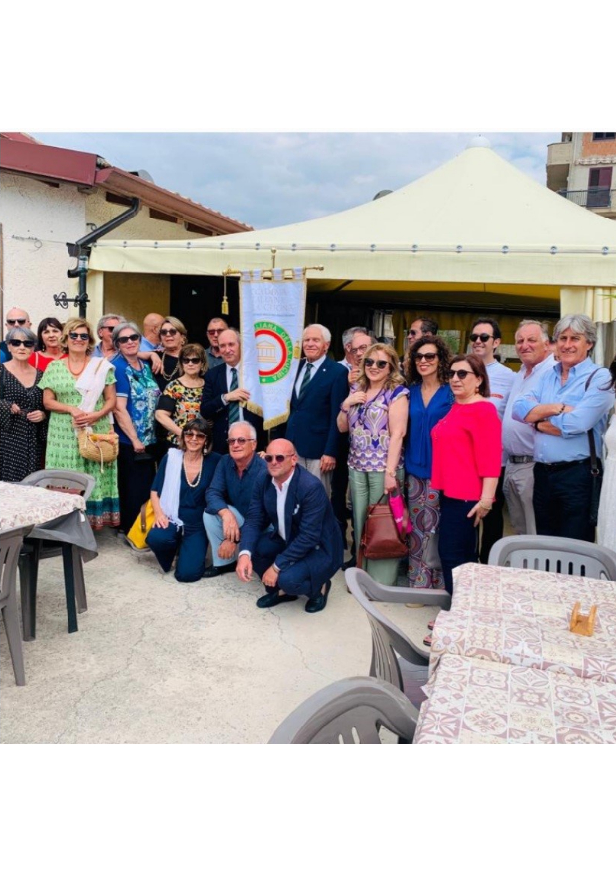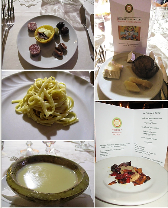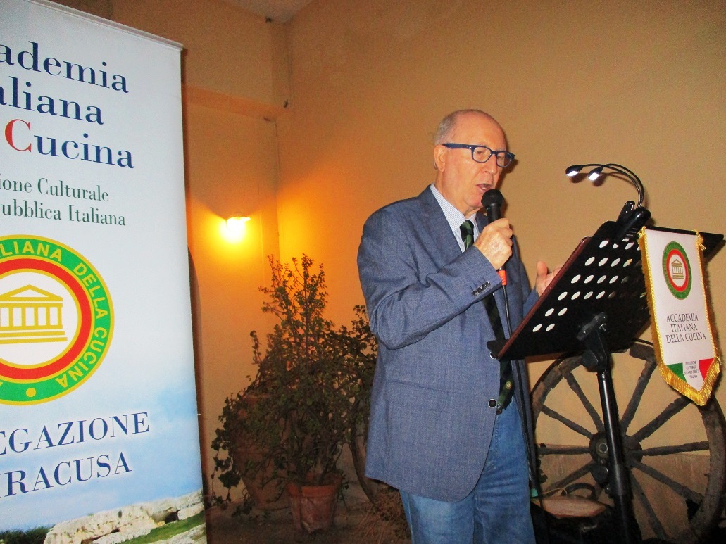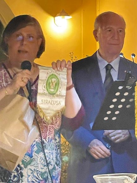 Nell'intima e accogliente cornice del giardino dell’agriturismo “Terrauzza sul Mare” si è tenuta la celebrazione del sessantesimo anniversario di fondazione della Delegazione di Siracusa (foto 1). Il Delegato Angelo Tamburini (foto 2) ha ricordato, in apertura, la successione dei Delegati e ringraziato la Consulta della Delegazione. A seguire, è intervenuta Carla Siena che ha consegnato a Tamburini alcune testimonianze storiche relative al periodo di gestione da Delegato del padre Enzo Siena e fra questi l’antico guidoncino (foto 3). La cena in tavola (foto 4): una sequenza di pietanze realizzate in maniera tradizionale e con genuini prodotti dell’orto e del campo dell’agriturismo e del territorio siracusano. A conclusione della serata, la consegna ai convenuti di una pregiata ceramica celebrativa, realizzata dalla Accademica Renata Emmolo e recante il logo della Delegazione di Siracusa nell’anno 60° di fondazione.