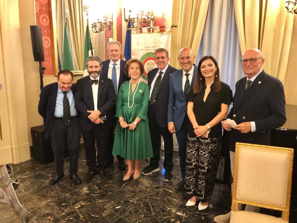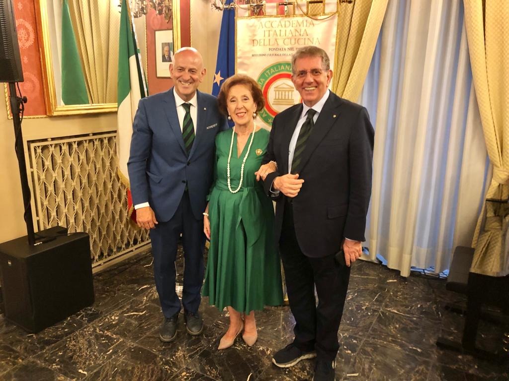 Una serata di festa e di impegno accademico, quella del 7 luglio scorso presso il salone di rappresentanza della Prefettura di Chieti: la Delegazione di Chieti ha registrato con atto notarile un verbale finalizzato al deposito e alla registrazione della ricetta tipica delle "pallotte cace e ove" e ha consegnato i Premi dell'Accademia 2022. Tra le eccellenze gastronomiche del territorio teatino, le “Pallotte cace e ove”, delle polpette al sugo realizzate senza carne, ma solo con uova e formaggio, racchiudono in sé tutte le caratteristiche tipiche della gastronomia abruzzese, fatta di materiali semplici e poveri, per una cucina del riuso. Alla presenza del prefetto, Armando Forgione, e del Vice Presidente vicario dell’Accademia Italiana della Cucina, Mimmo D’Alessio, il Delegato Nicola D'Auria ha anche conferito i Premi per il 2022: il Premio “Dino Villani” è stato assegnato al salsicciotto casolano della Macelleria Travaglini Assunta di Casoli, il Premio “Massimo Alberini” a “Storico Gastronomia Andreina” di Chieti, nella persona del legale rappresentante Lorenzo Carosella e il “Diploma di Buona Cucina” al ristorante “Caldora Punta Vallevò” di Rocca San Giovanni, dei titolari Luca e Marco Caldora. In foto 1. Il Delegato D'Auria, il Vice Presidente vicario D'Alessio con la Consultrice della Delegazione Gabriella Orlando, che ha curato le ricerche storiche sulle pallotte cace e ove. Foto 2. Il Prefetto, dott. Armando Forgione, con i premiati 2022, D'Auria e D'Alessio. Foto 3. La Consulta della Delegazione con il Prefetto e il notaio Federica Verna.