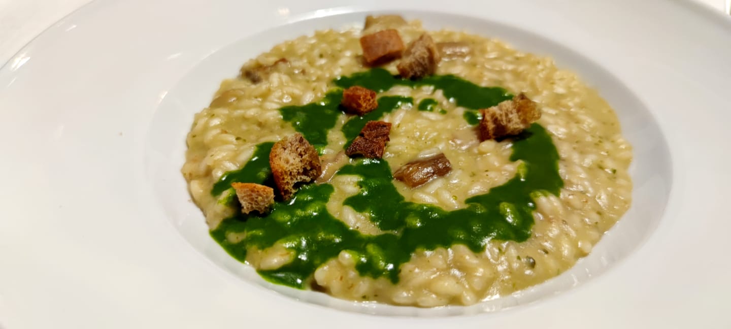 L’estate della Delegazione di Cortina d’Ampezzo è iniziata martedì 28 giugno, presso il ristorante Col Druscié 1778, con tema un “Viaggio su Marte, passando per il Polo Sud”. Prima del convivio si è svolto un interessante dialogo con Giovanni Caprara, presidente UGIS (Unione Giornalisti Italiani Scientifici) ed editorialista scientifico del Corriere della Sera, Enzo Vitale coordinatore del gruppo Astronomia e astrofisica dell’UGIS e Giulia Iafrate, ricercatrice INAF-Osservatorio Astronomico di Trieste e presidente Associazione Astronomica di Cortina d’Ampezzo, in collegamento diretto con Massimiliano Catricalà, station leader della base italo-francese Concordia in Antartide e altri ricercatori. Tra le altre cose si è parlato dell’approvvigionamento e dell’alimentazione dei ricercatori in queste condizioni di vita decisamente estreme, che rappresentano inoltre una sorta di allenamento per un viaggio su Marte che non appare più così lontano e improbabile. La serata, studiata dalla Simposiarca Chiara Caliceti con Paola Franco, è proseguita con l’aperitivo in terrazza e poi la meravigliosa cena all’interno del ristorante, introdotta dalla Delegata Monica De Mattia che ha sottolineato il connubio tra cibo e spazio, che pone molteplici tematiche di pensiero. Foto 1. Collegamento in diretta con i ricercatori della base italo-francese Concordia, in Antartide. Foto 2. La Delegata Monica De Mattia con il Vice Delegato Diego Dipol, Luca e Silvia Sudiro titolari del ristorante e i cuochi Luca Ursella e Simone Michelon. Foto 3. Un momento della Conviviale. Foto 4. Risotto ai funghi porcini con salsa al prezzemolo e puccia croccante.