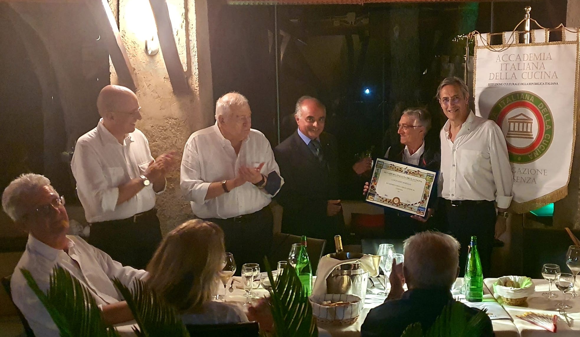 Che si programmi un viaggio o che ci si appresti ad organizzare un periodo di vacanze dedicate al riposo, al divertimento e a qualche momento di amichevole e familiare leggerezza, l’estate continua a rappresentare la stagione più attesa dell’anno. Come sosteneva un anonimo, “D’estate: i capelli sono più leggeri. La pelle è più scura. L’acqua è più calda. Le bibite sono più fredde. La musica è più forte. Le notti si allungano. La vita migliora”. Con questo spirito gli Accademici della Delegazione di Cosenza hanno dato il benvenuto all’estate nello splendido scenario offerto dal ristorante il Clubbino di san Nicola Arcella con vista sull’isola di Dino e sul golfo di Policastro (foto 1). Cucina di territorio con valorizzazione del pesce azzurro (foto 2) e delle verdure di stagione, per concludere con il digestivo al cedro realizzato dallo chef secondo una vecchia ricetta di famiglia. Il tutto ben narrato dal Simposiarca Giovanni Molinaro che ha curato la serata nei minimi dettagli (foto 3). L’occasione è risultata propizia per consegnare l'attestato di appartenenza all'Accademico a Luigi Santaniello insieme ai vice Delegati Gentile e Vivona e al Segretario-Tesoriere Rogano (foto 4).