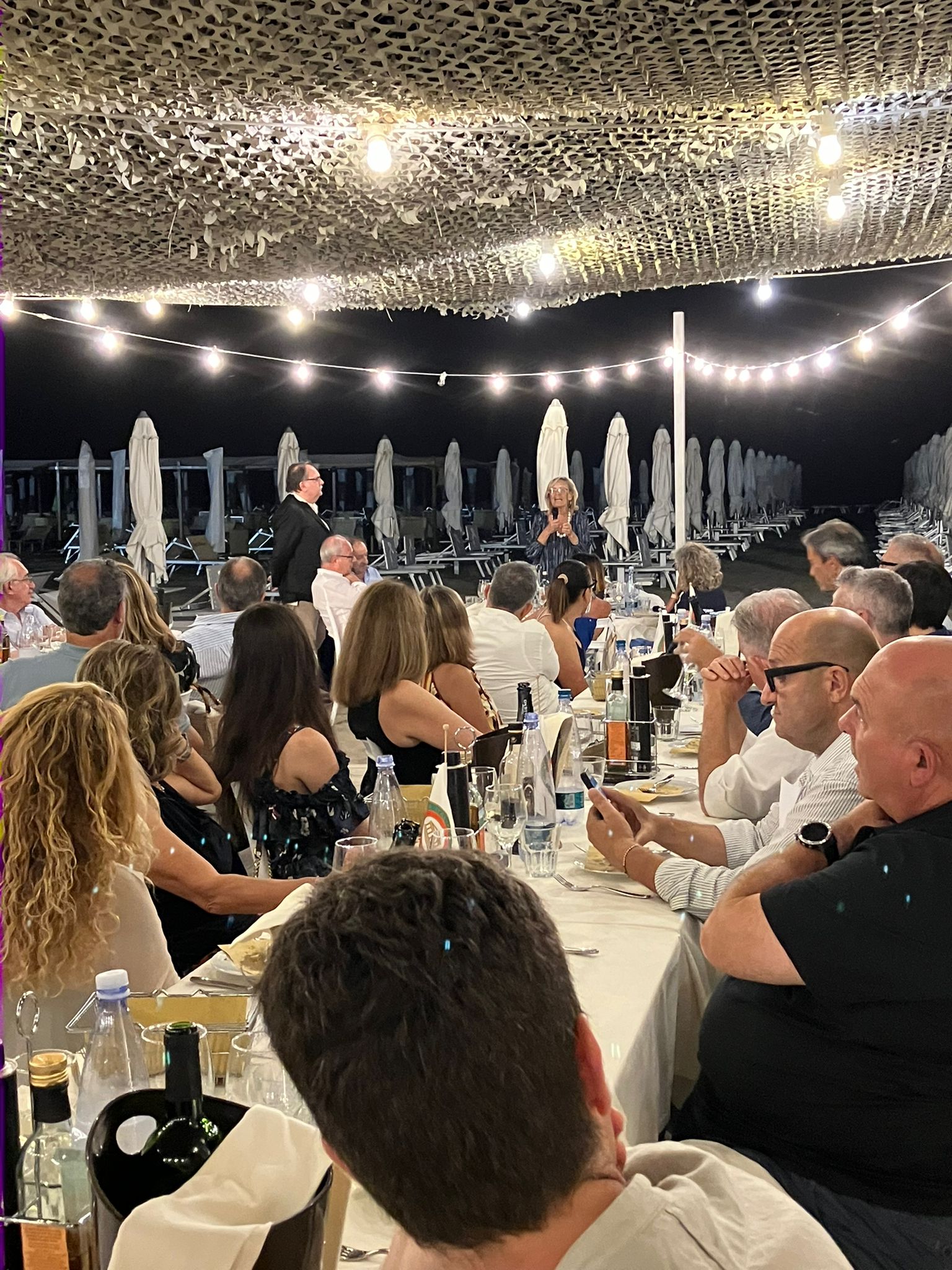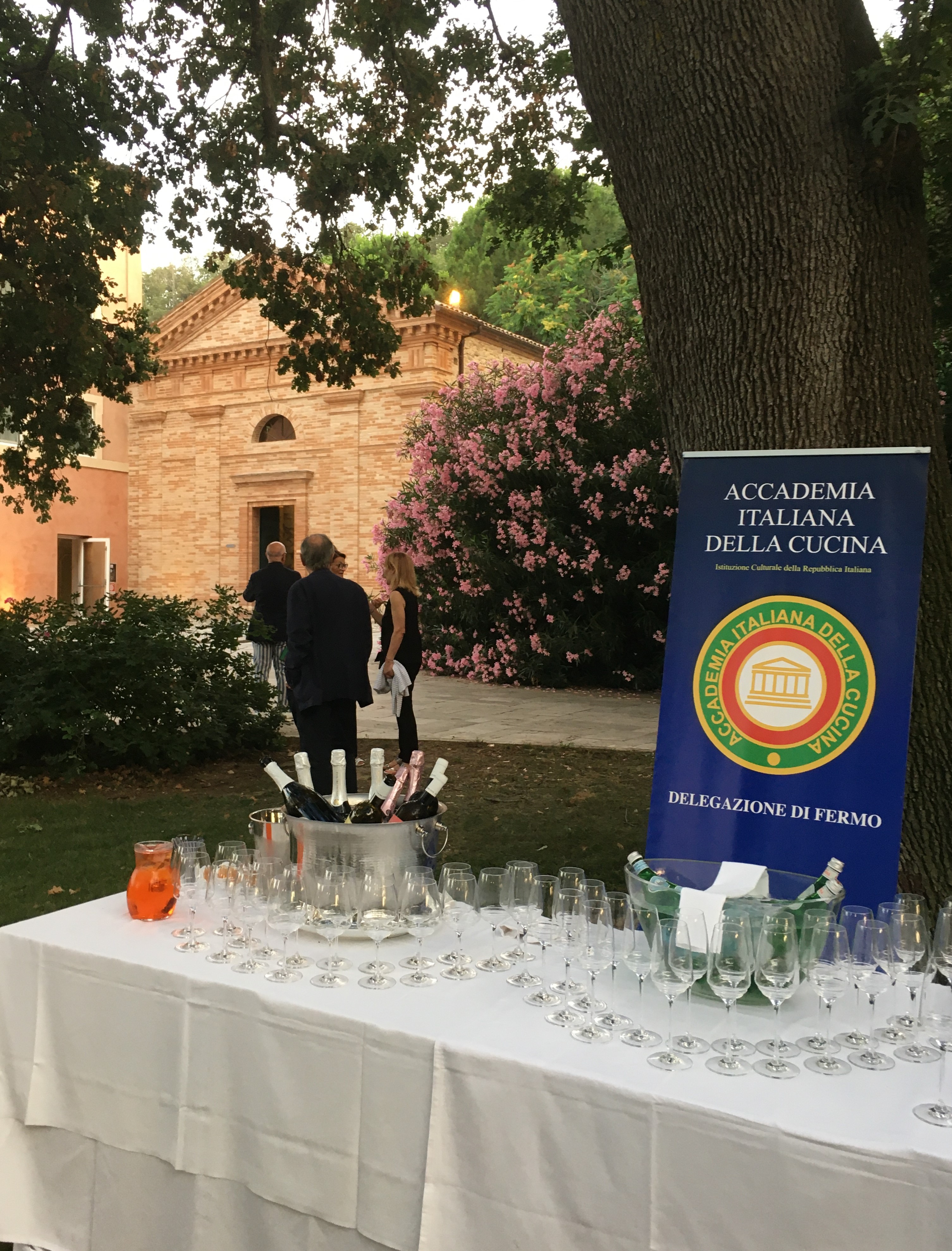 Splendida riunione conviviale quella predisposta dalla Simposiarca Mariella Meconi nello scenografico parco delle querce di Villa Lattanzi, incastonata nella falesia che domina il mare Adriatico e sovrastata da uno dei Borghi più belli d’Italia quale Torre di Palme. Accademici e ospiti si sono ritrovati per godere insieme del tramonto ma anche di delizie gastronomiche e culturali che hanno impreziosito l’evento. Molti gli spunti nella dotta relazione della Simposiarca: il solstizio, la notte di san Giovanni e i rituali della tradizione quali l’acqua del Santo, la raccolta di fiori ed erbe spontanee e delle noci acerbe (per l’occasione a comporre deliziosi centro tavola) e le ricette dell’olio di iperico e del Nocino. Tuttavia il volersi ritrovare prima del tramonto a godere di ambiente e panorami ha ispirato l’Accademica ad organizzare un’apericena, uno dei riti delle nuove generazioni apprezzato, perché no, anche dalle altre. Piatti identitari del territorio ma serviti in apposito buffet come finger food a partire dai pani, formaggi e salumi e poi a seguire olive ripiene, cremini e fiori di zucca fritti e al cartoccio, frascarelli al ciabuscolo, e tanto altro ancora sino a sua maestà i vincisgrassi serviti però a tavola in generosi ”scacchi” come poi i dolci. Il tutto è stato doviziosamente accompagnato da cocktail e dalla selezione dei vini dell’Officina del Sole. Le splendide note del violino di Valentino Alessandrini, l’attenta ospitalità e la piacevolissima brezza marina hanno deliziato i convenuti trattenendoli sino alle ore piccole tanto il gradimento per questa memorabile serata meritevole di un bis.