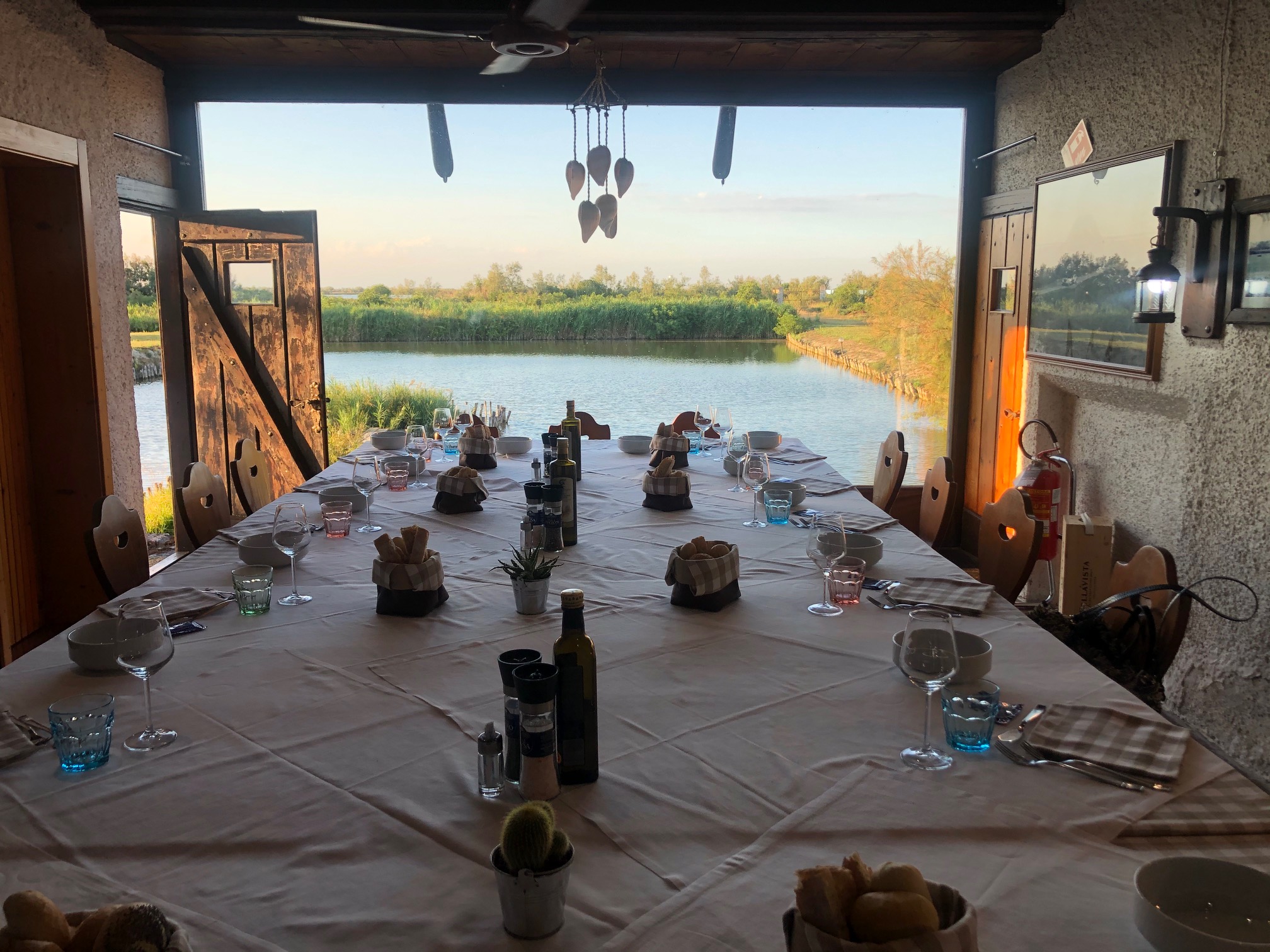 Immerso nel cuore delle valli del Delta del Po si trova questo tipico ristorante costruito a somiglianza degli antichi “casoni di valle” che costituivano uno degli elementi che caratterizzavano l’ambiente di questo territorio diviso tra acqua e terra (foto 1). La cena al ristorante “Oasi Val Pisani” a Porto Viro (RO) è stata preceduta da un’interessante relazione tenuta dal Simposiarca Giovanni Battista Scarpari sulla storia, sulle caratteristiche costruttive dei “casoni” e sulla vita delle popolazioni che li abitavano e, naturalmente, si è basata sui prodotti ittici del territorio cucinati nei modi tradizionali. L’esito è stato più che soddisfacente, con altissimi apprezzamenti per i bocconcini di cefalo fritti e per le cozze di Scardovari in brodetto (foto 2) ma anche per il tipico risotto di pesce del Delta (foto 3) e per la zuppa inglese di chiusura; meno riuscita la grigliata di pesce per la difformità nella cottura di alcuni elementi. Un commento finale comunque positivo, anche per la squisita accoglienza, con meritati applausi e la consegna di un libro dell’Accademia alla signora Catia Bellan che da meno di un anno ha in gestione questo caratteristico locale (foto 4. Il Delegato Giorgio Golfetti, la signora Catia Bellan e il Simposiarca Giovanni Battista Scarpari).