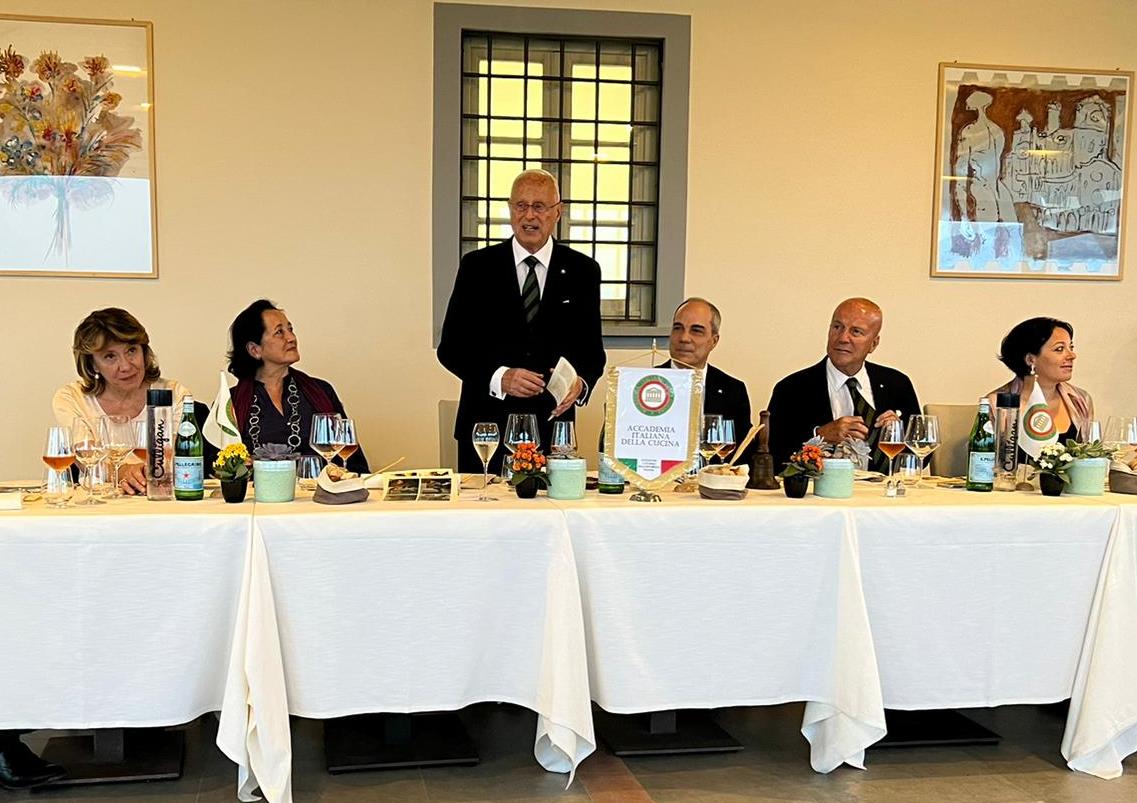 Piena soddisfazione per il convivio d’inizio estate alla “Trattoria da Valentino” (Buggiano, PT) scelto dall’Accademico e Simposiarca Patani che ha riportato la Delegazione in questo locale già visitato in passato. Accolti con cortesia ed efficienza, la cena si è svolta all’aperto, con Accademici e ospiti disposti attorno a lunga tavola, in viva convivialità e amicizia. Il menu concordato proponeva piatti della tradizione, basati su prodotti locali, a chilometro zero, in linea con il tema dell’anno 2022: eccellente la pasta spianata, il fritto di pollo, il coniglio alle erbe; in tempi di surgelati, un elogio alle patate, pregevolmente asimmetriche, buone di pasta e fritte bene. Ringraziando l’organizzatore e i numerosi intervenuti, il Delegato Giovannini ha sottolineato la riuscita della serata, all’insegna di ritrovata vicinanza e di sapori domestici.