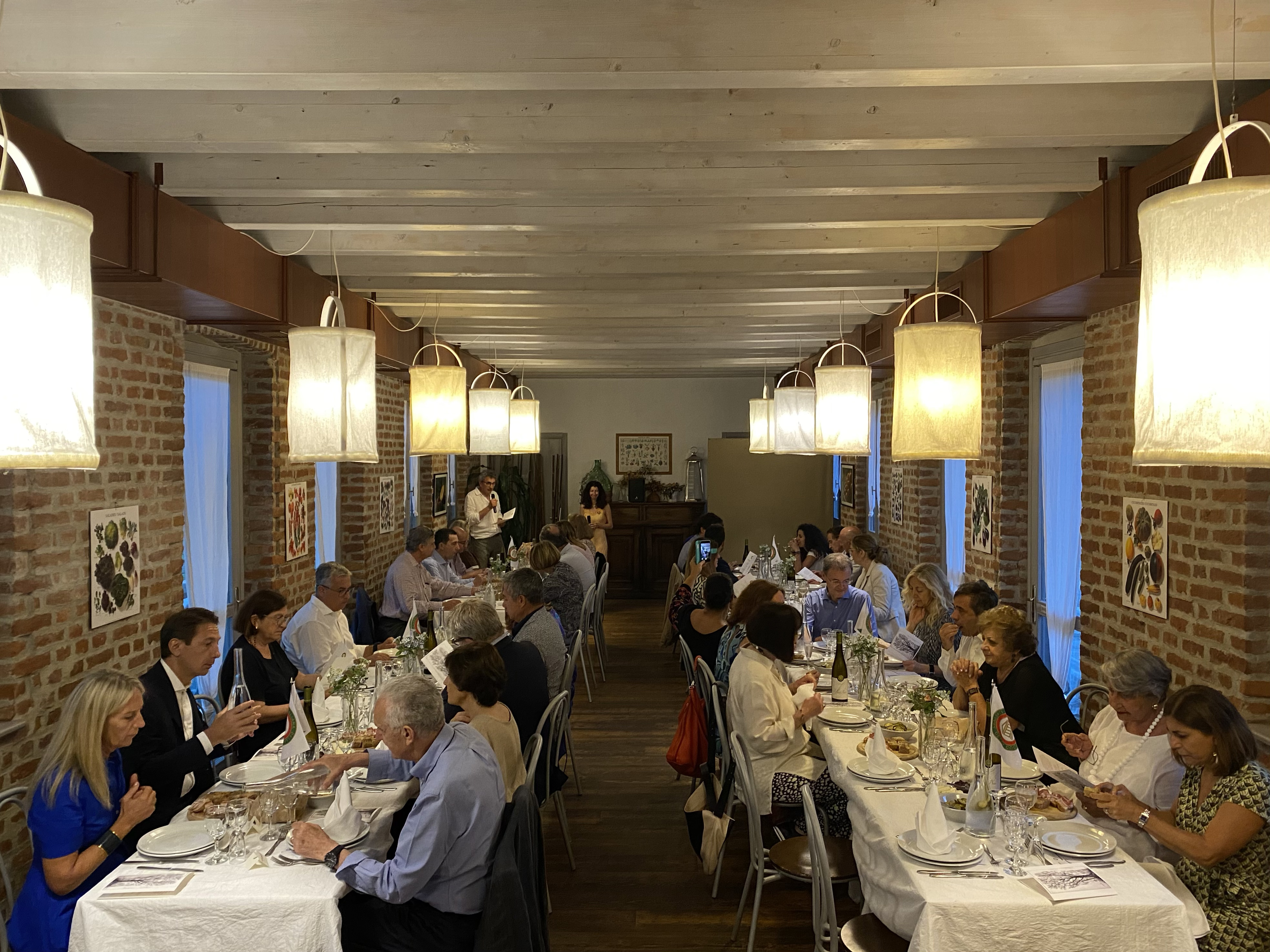 Prima riunione conviviale della Delegazione del Monferrato con Accademici e ospiti, organizzata presso l’Agriturismo del Luogo a Brusasco (TO). Hanno partecipato: Elisabetta Cocito, Direttore Centro Studi Piemonte e Segretario del Centro Studi Franco Marenghi; Roberto Pirino membro della Consulta Accademica e Delegato di Albenga e del Ponente Ligure; Maria Luisa Bertotto Delegata di Biella; Accademici di Aosta e Vercelli. La serata è stata gioviale, svoltasi nel prestigioso contesto storico del Castello di Brusasco con la graditissima presenza del Sindaco Giulio Bosso. Oltre agli interventi del Delegato Pietro Caire è risultato interessantissimo l’intervento del Sindaco che ha catturato l’attenzione degli Accademici con curiosità e notizie storiche del territorio. La cucina della chef Elisa Violi, semplice e genuina grazie all’utilizzo di materiale di produzione propria, ha riscosso i complimenti di tutti. Ottimi i salumi proposti, prodotti nel proprio allevamento del suino nero parmense, praticamente allo stato semibrado.