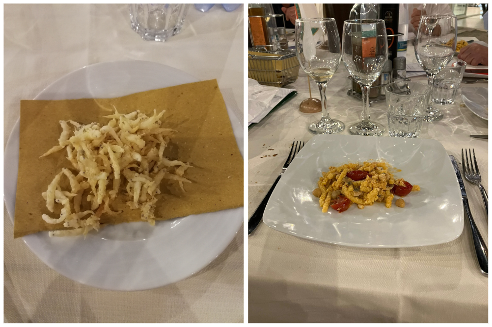 La Delegazione di Riccione-Cattolica si è riunita al ristorante “Compreso Iva”, un locale ubicato sulla spiaggia, che propone la tipica cucina romagnola di pesce: piatti semplici ma allo stesso tempo saporiti, realizzati con quello che offre il mercato giorno per giorno. La riunione conviviale è stata anche l’occasione per iniziare a lavorare sul tema Ecumenico dell’anno. L’Accademica di Cesena Liliana Babbi Cappelletti, autrice di numerosi testi sulla civiltà contadina (in foto 1 e in foto 2 con il Delegato Fabio Giavolucci), ha tenuto una relazione sulla Tavola del Contadino nei diversi contesti territoriali e sociali della Romagna: la costa, la pianura, la collina e la montagna. Sono intervenuti quasi tutti gli Accademici di Riccione-Cattolica e numerosi ospiti. La cena si è sviluppata lungo un percorso che ha riproposto tanti sapori tipici e tradizionali. Con l’antipasto sono giunti in tavola le canocchie, la ricciola e il cefalo (foto 3). Grande emozione per i rossetti fritti, piatto ormai introvabile, e i passatelli hanno deliziato il palato degli intervenuti con il sugo di ceci, vongole, sogliole e pomodoro (foto 4). La serata è trascorsa con piacevolezza per l’ottimo clima, la location suggestiva, l’interessante relazione, il buon cibo e tanta amicizia accademica.