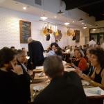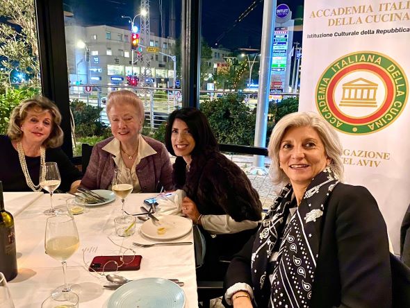 Gli Accademici di Tel Aviv si sono ritrovati per gli auguri di buone feste al ristorante Calata 15 dove Alessandro Conficconi, unico chef toscano residente a Tel Aviv, ha preparato un menu classico toscano. Tema della serata, Dante Alighieri e il cibo nella Divina Commedia. Durante la cena, alcuni ospiti e Accademici hanno declamato i versi della Divina Commedia contenenti richiami al cibo. Alla fine del convivio dantesco, la sommelier ed esperta di storia del cibo Emanuela Panke ha proposto ai presenti un quiz dantesco e letterario con domande sul cibo nella letteratura. La vincitrice dott.ssa Giordana Tagliacozzo ha ricevuto come premio il piatto accademico 2021. Foto 1. L'Accademico Massimo Lomonaco legge il girone dei Golosi. Foto 2. Le Accademiche Alda Chen, Giustina Rachmanoff, Anat Carlquist e Francesca Torrini. Foto 3. Da sinistra: l'Accademico Stefano Ventura, la Delegata Klein, l'Accademico Roberto della Rocca con la moglie Letizia, la dott.ssa giordana Tagliacozzo, la dott.ssa Claudia Fellus. Foto 4. Flan di pecorino; ribollita; paccheri alla fiorentina; pesce in umido; cantucci e profiteroles.