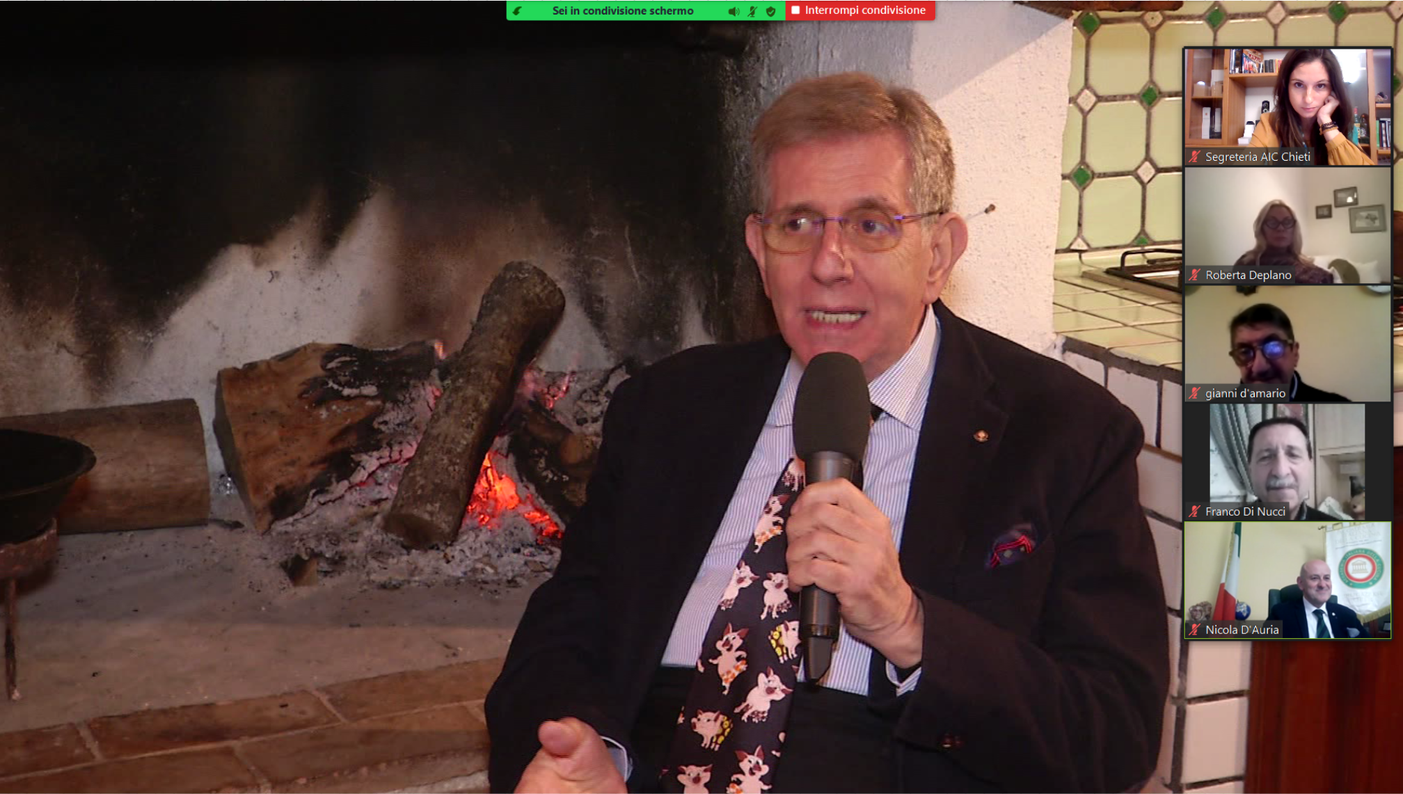 Le restrizioni dovute alla zona gialla non fermano la Delegazione di Chieti, guidata da Nicola D'Auria (foto 1), che ha organizzato una video conviviale su uno dei temi più legati al territorio in questo periodo invernale. "Il maiale: vita, morte e miracoli", questo il titolo dell'incontro che ha raccontato, grazie agli interventi del Presidente onorario Giovanni Ballarini (foto 2) e del Vice Presidente vicario Mimmo D'Alessio (foto 3), le tradizioni e l'importanza del maiale nella cultura contadina della zona. A partecipare, oltre agli Accademici della Delegazione teatina, anche numerosi ospiti provenienti da altre Delegazioni Italiane ed estere (foto 4).