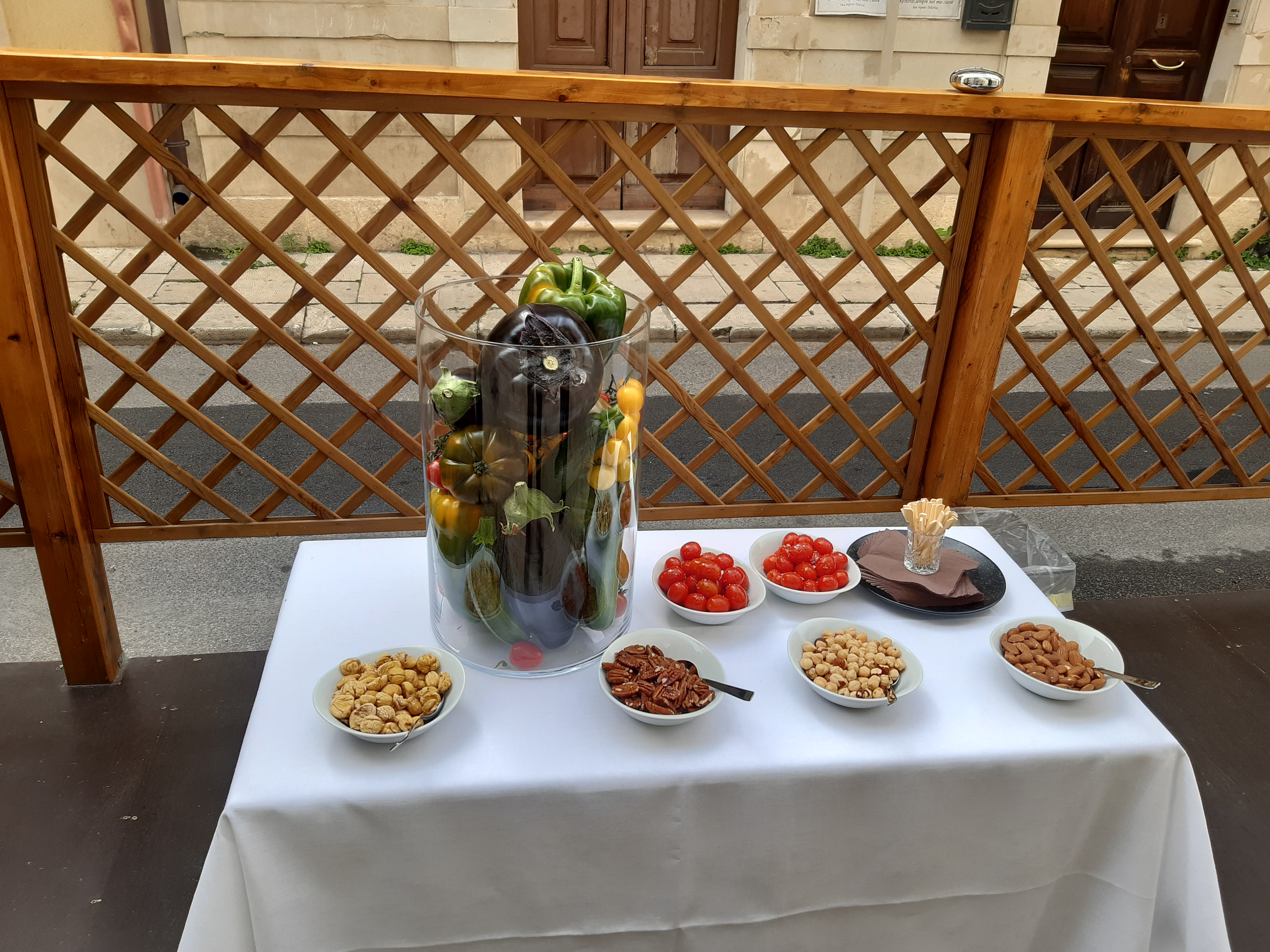 La Delegazione di Ragusa si è ritrovata per una riunione conviviale al ristorante “Colonna” di Vittoria. Foto 1. Da sinistra, il Simposiarca Emanuele Gucciardello, il Delegato Vittorio Sartorio e il Consultore Alberto Fasiol. Foto 2. Panoramica della sala. Foto 3. Al termine del pranzo il Delegato Vittorio Sartorio ha consegnato al Patron Angelo Di Stefano e allo staff di cucina la vetrofania dell'Accademia. Foto 4. Prodotti del territorio.