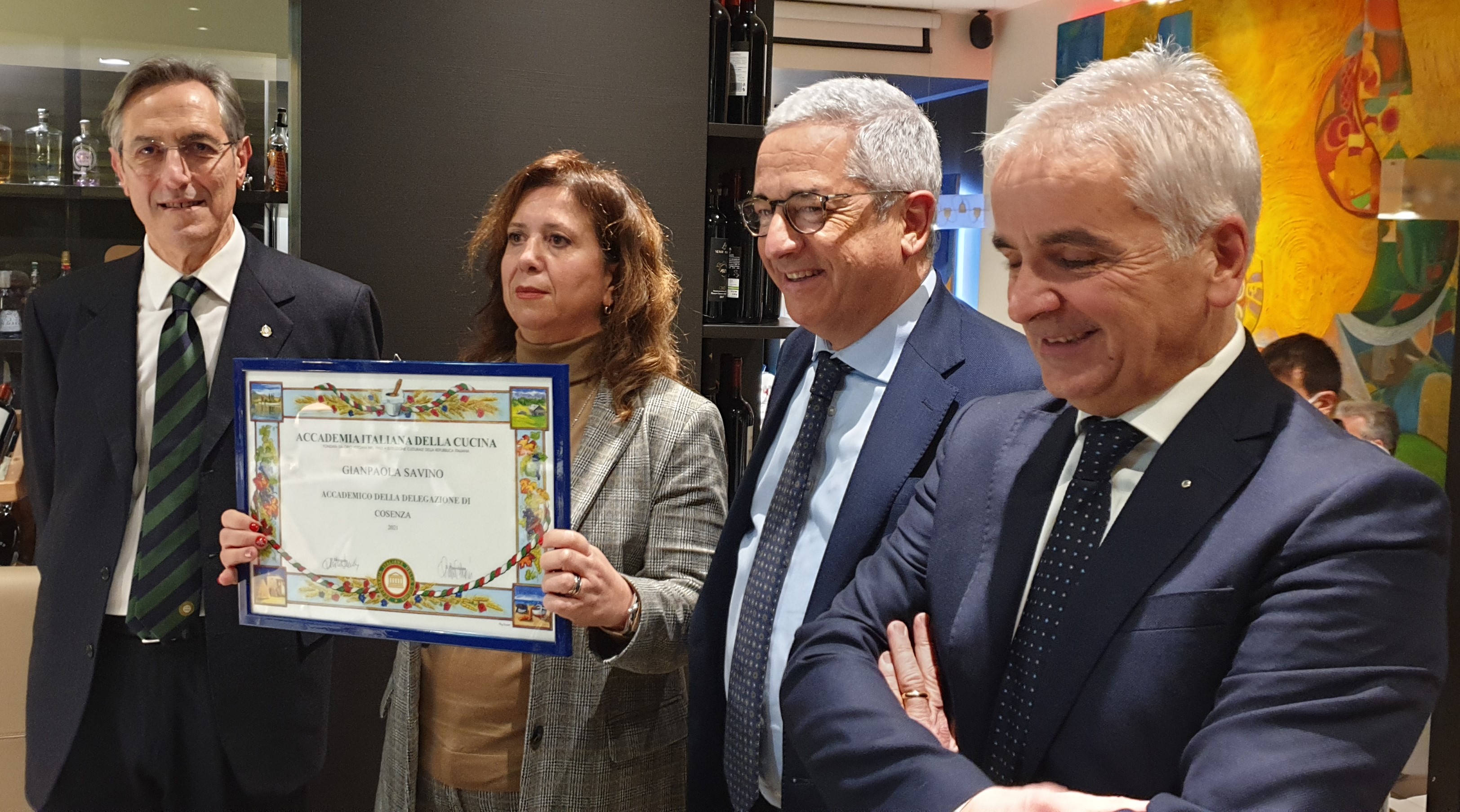 L'avvicinarsi del Natale, che rappresenta da sempre la festa delle feste, ha offerto l'occasione per riprendere l'annuale tradizione della convivialità accademica: circostanza privilegiata per condividere affetti e sentimenti di stima, scambiarsi auguri ed auspici per l'anno che verrà (foto 1). Lo chef Davide Forgione del ristorante 87Cento di Cosenza ha interpretato le tradizioni della vigilia di Natale con estro, equilibrio e mano felice con un menu esclusivo studiato per l'occasione. Il tutto molto apprezzato dagli Accademici presenti in numero rilevante (foto 2). Simposiarca, il Consultore Francesco Amato che ha ripercorso usanze e riti del periodo. Consegnati gli attestati di appartenenza ai neo Accademici Oreste Morcavallo e Gianpaola Savino in un clima di amicizia calorosa e gioviale (foto 3 e 4).