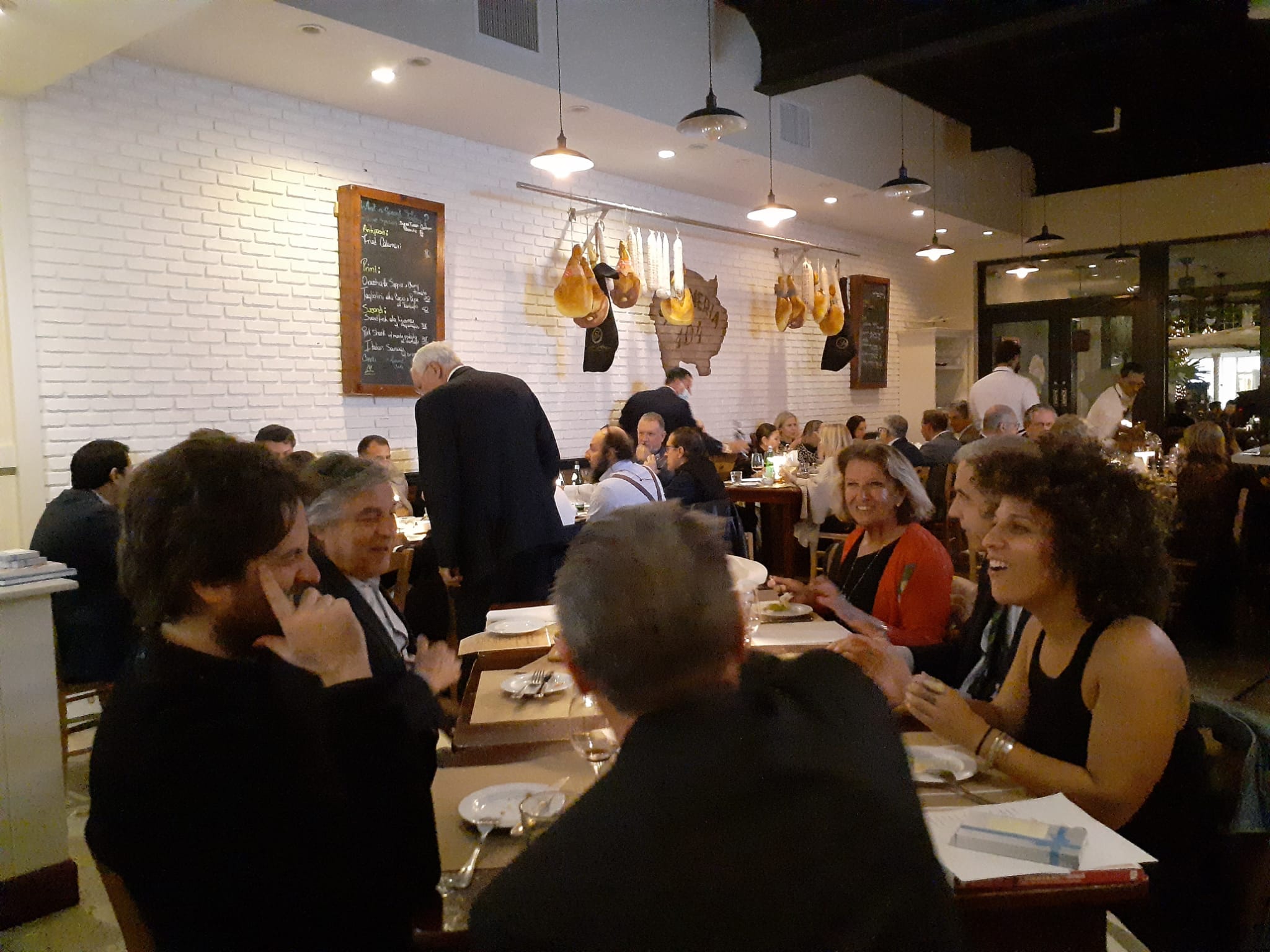 Si è tenuto presso il ristorante “Salumeria 104” di Coral Gables il primo convivio dell'anno della Delegazione di Miami. Il proprietario Graziano Sbroggiò e i due chef Angelo Masarin e Rocco Mauriello hanno accolto con la consueta cordialità i numerosi Accademici e ospiti (foto 1). La serata ha visto la partecipazione del Delegato di New York Soho Berardo Paradiso e di alcuni Accademici di Modena. Il Delegato Antonio Pianta ha voluto premiare Graziano Sbroggiò con il piatto d'argento dell’Accademia (foto 2 e 3) per la professionalità dimostrata in oltre vent'anni di attività sul territorio, diffondendo la tradizione della cucina italiana senza mai cedere alle lusinghe della cosiddetta ristorazione italo-americana. Molto apprezzati la scelta del menu, il servizio ai tavoli e la presentazione dei piatti. Sui tavoli, come segnaposto, sono stati messi dei biglietti scritti a mano con riferimento ai piatti preparati. Gli Accademici hanno elogiato particolarmente il risotto e il brasato (foto 4).