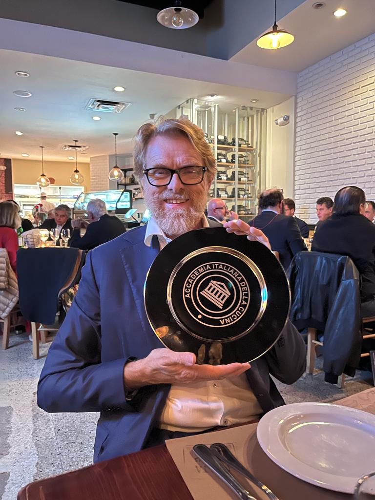Continuando con lo spirito della VI Settimana della Cucina Italiana nel Mondo, durante la prima cena accademica della Delegazione di New York sono stati approfonditi i concetti e la filosofia della Dieta Mediterranea e dei suoi benefici. Il ristorante scelto è stato “Il Divo” di Antonio Sinesi che ha accolto gli ospiti in diretta dal suo ristorante milanese “Al Valentino”. Onorati dalla partecipazione del Console Generale a New York Fabrizio Di Michele e dal Direttore dell’ICE Antonino La Spina, accompagnati dalle rispettive consorti, la Delegazione ha dato il benvenuto a due nuovi Accademici: Carola Tagliabue trasferitasi da Singapore e Davide Romeo, già Accademico di Guatemala. La Simposiarca Monica Fornier ha relazionato sui benefici della Dieta Mediterranea avendo scelto con lo chef Antonio Savino un menu di pesce e verdure. Lodevole l’antipasto di polpo con agrumi in una presentazione artistica, la zuppa di farro e verdura perfetta per una serata piovosa, e il cefalo con una ricca e gustosa caponatina di melanzane. Ben selezionati anche i vini in abbinamento ai piatti e ottima l’ospitalità mostrata da tutto il personale durante la serata, specialmente dopo il periodo post-Covid in cui il servizio, nella maggior parte dei ristoranti newyorkesi, viene trascurato. A completare l'ottima riuscita della serata, una “performance” di Simone Savino, fratello dello chef Antonio, con canzoni di Frank Sinatra e di cantanti italiani.