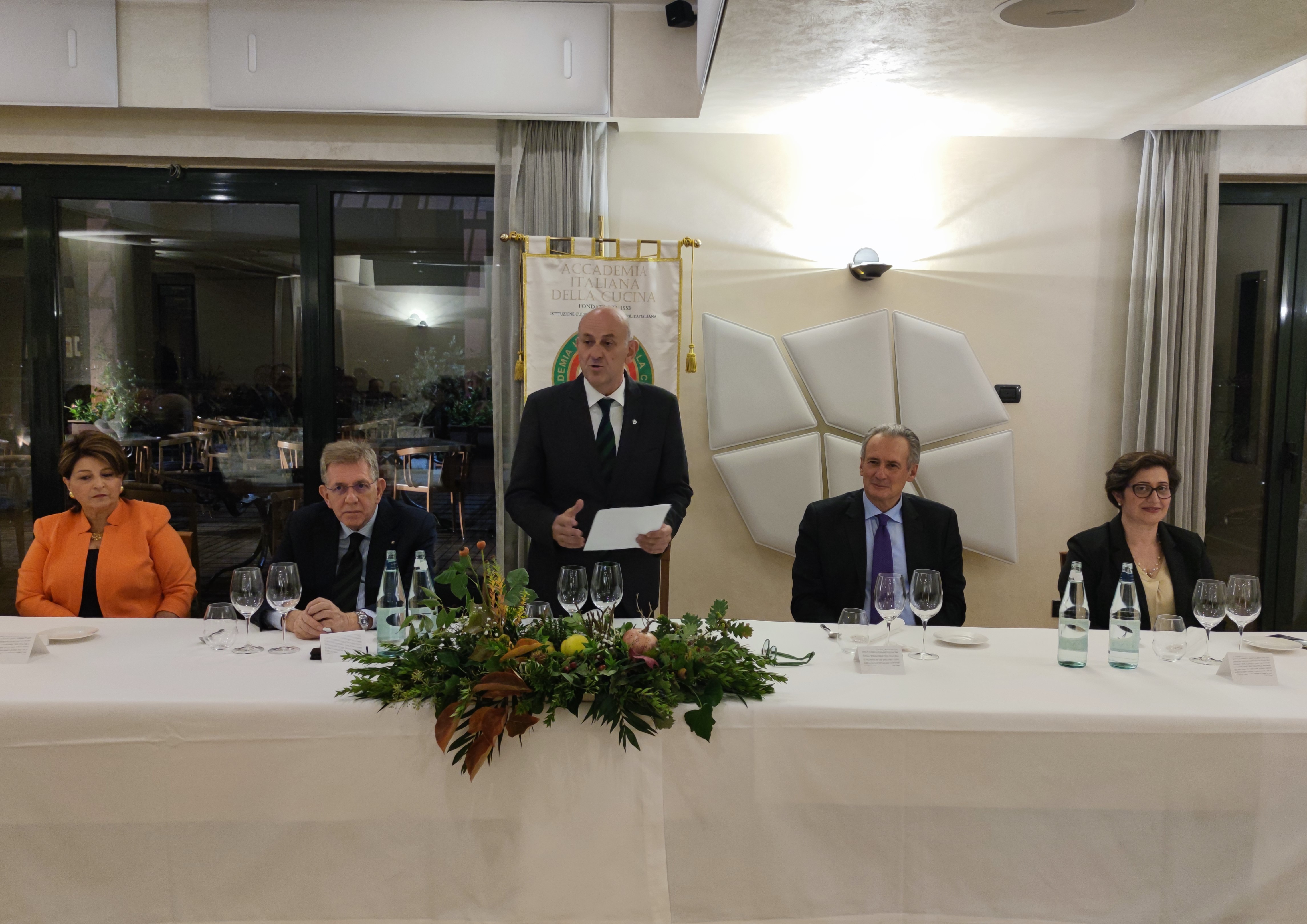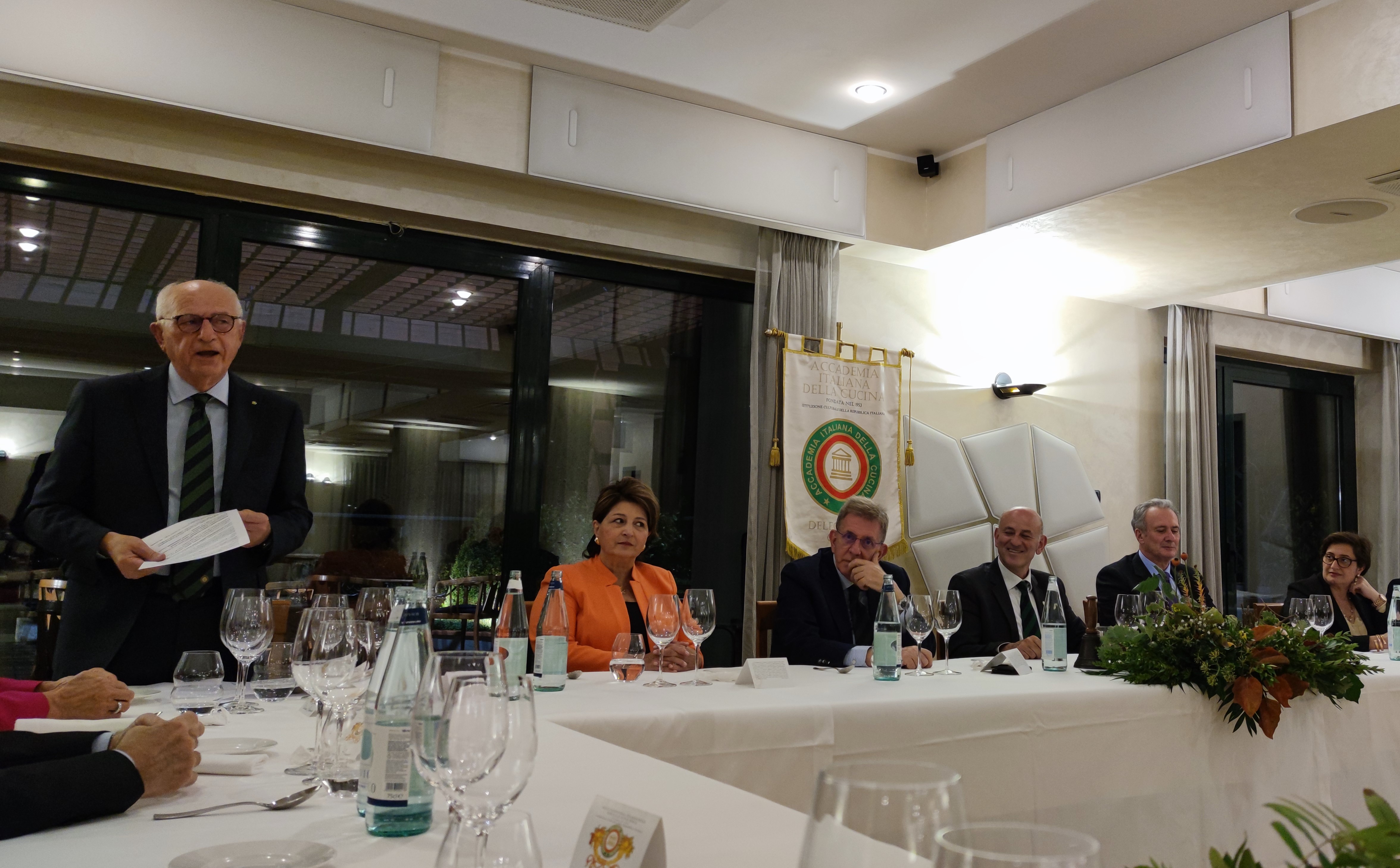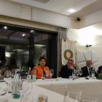 Cena Ecumenica caratterizzata da larghissima partecipazione e vivo entusiasmo pari all’apprezzamento del menu, predisposto con assoluta fedeltà e adesione al tema dell’anno, superando le difficoltà derivate dalla vocazione marinara della cucina peloritana. Il convivio è stato introdotto dal Delegato Francesco Trimarchi e quindi dall’intervento di Attilio Borda Bossana, Direttore del CST Sicilia Orientale (Foto 1) che ha trattato il tema dell’anno sotto il profilo storico-antropologico della cultura alimentare. Il Delegato ha quindi introdotto (Foto 2) la chef-patronne Loredana Carere che ha illustrato, con garbo e competenza, “I perché del Menu” elegantemente presentato (Foto 3) ai numerosi Accademici (Foto 4) intervenuti all’animato dibattito conclusivo a testimonianza del successo e del gradimento dell’Ecumenica.