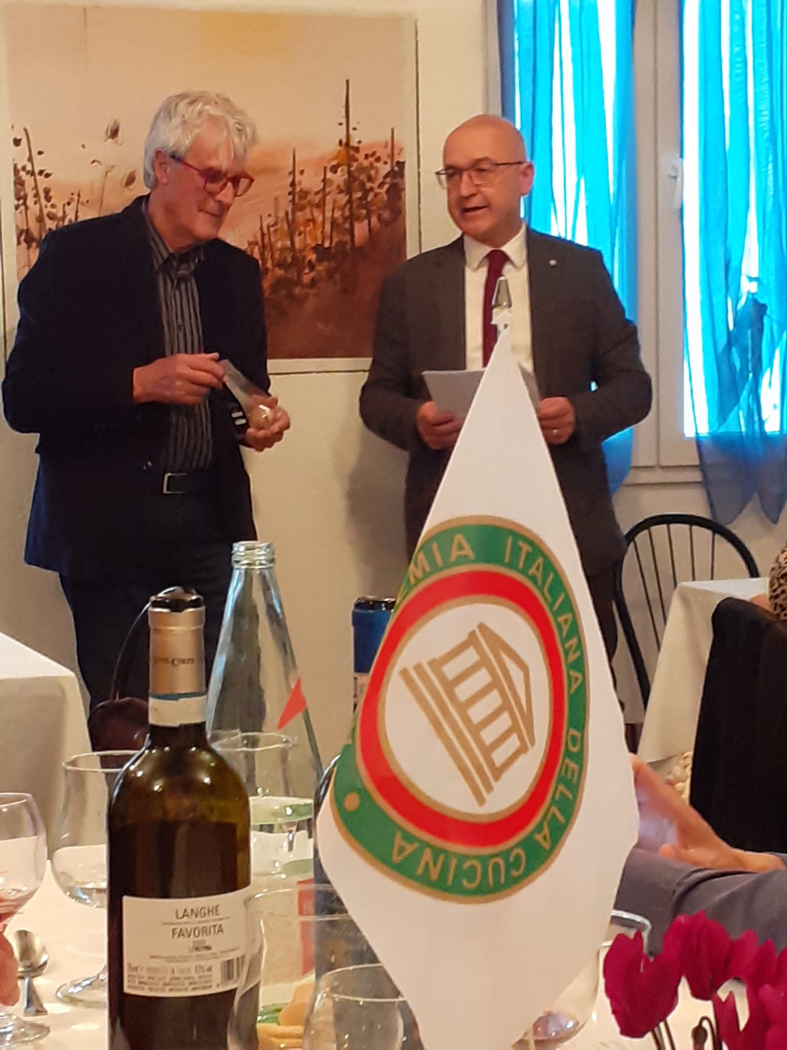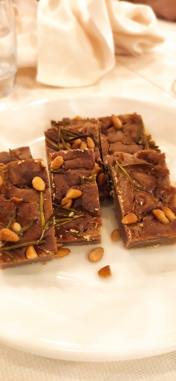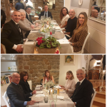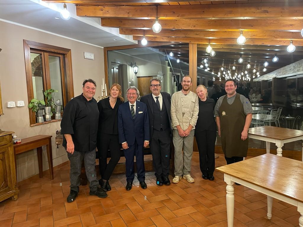 Per la Cena Ecumenica la Delegazione è tornata al “Caffè Giusti”, guidati dall’Accademico Luca Marchetti. La prova è stata ben superata dai giovani chef che hanno proposto un menu non scontato con ingredienti locali, in accostamenti nuovi e interessanti. Fra i piatti, graditi in particolare il croccante di porcini su fonduta di parmigiano, il secondo piatto nelle due varianti (petto d’anatra laccato al vinsanto con porcini e acqua cotta ai frutti di bosco o filetto all’alpina) e il dolce (crostata al cioccolato con lamponi). In collegamento da Tel Aviv sono giunti anche gli auguri della Delegata Cinzia Klein. Al termine il Delegato Giovannini ha proposto una riflessione sulla castagna della Valleriana, tipica produzione del territorio, informato gli Accademici sui prossimi appuntamenti e ringraziato artefici e partecipanti alla serata.