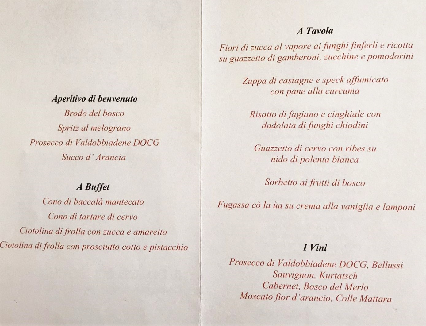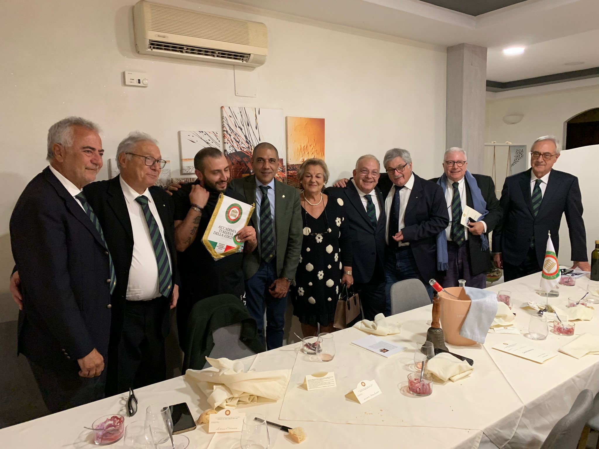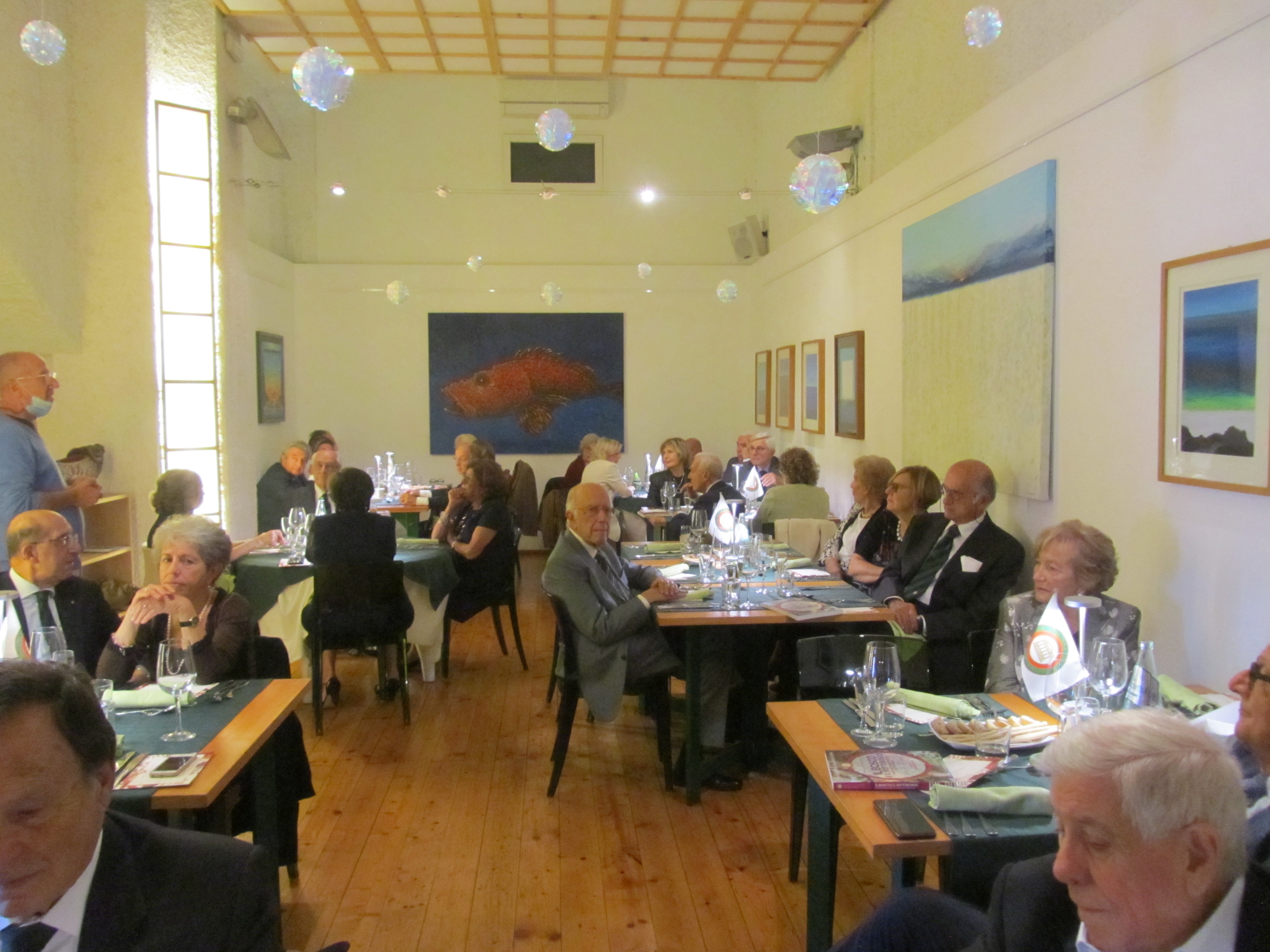 Per la Cena Ecumenica la Delegazione è tornata al “Caffè Giusti”, guidati dall’Accademico Luca Marchetti. La prova è stata ben superata dai giovani chef che hanno proposto un menu non scontato con ingredienti locali, in accostamenti nuovi e interessanti. Fra i piatti, graditi in particolare il croccante di porcini su fonduta di parmigiano, il secondo piatto nelle due varianti (petto d’anatra laccato al vinsanto con porcini e acqua cotta ai frutti di bosco o filetto all’alpina) e il dolce (crostata al cioccolato con lamponi). In collegamento da Tel Aviv sono giunti anche gli auguri della Delegata Cinzia Klein. Al termine il Delegato Giovannini ha proposto una riflessione sulla castagna della Valleriana, tipica produzione del territorio, informato gli Accademici sui prossimi appuntamenti e ringraziato artefici e partecipanti alla serata.