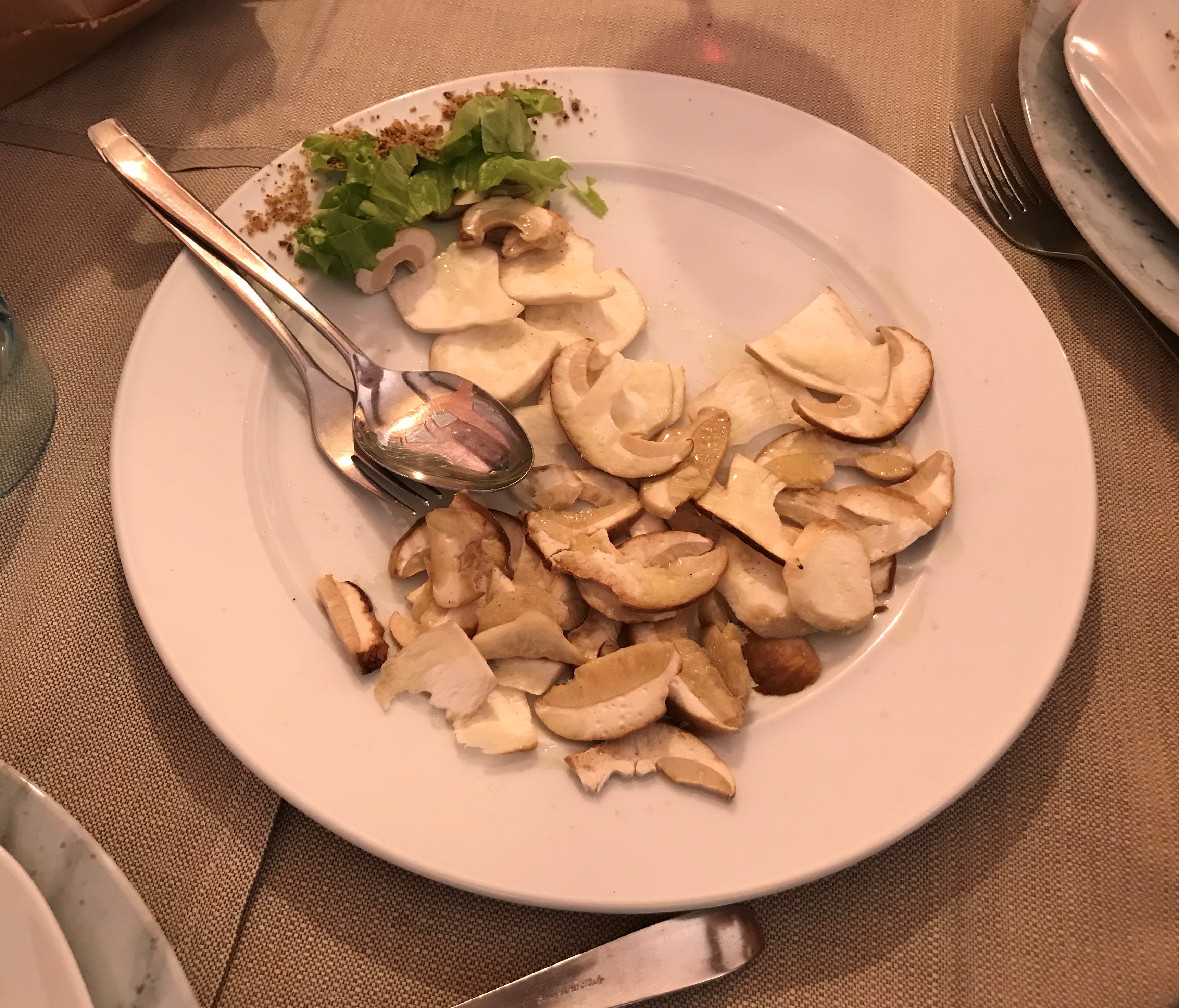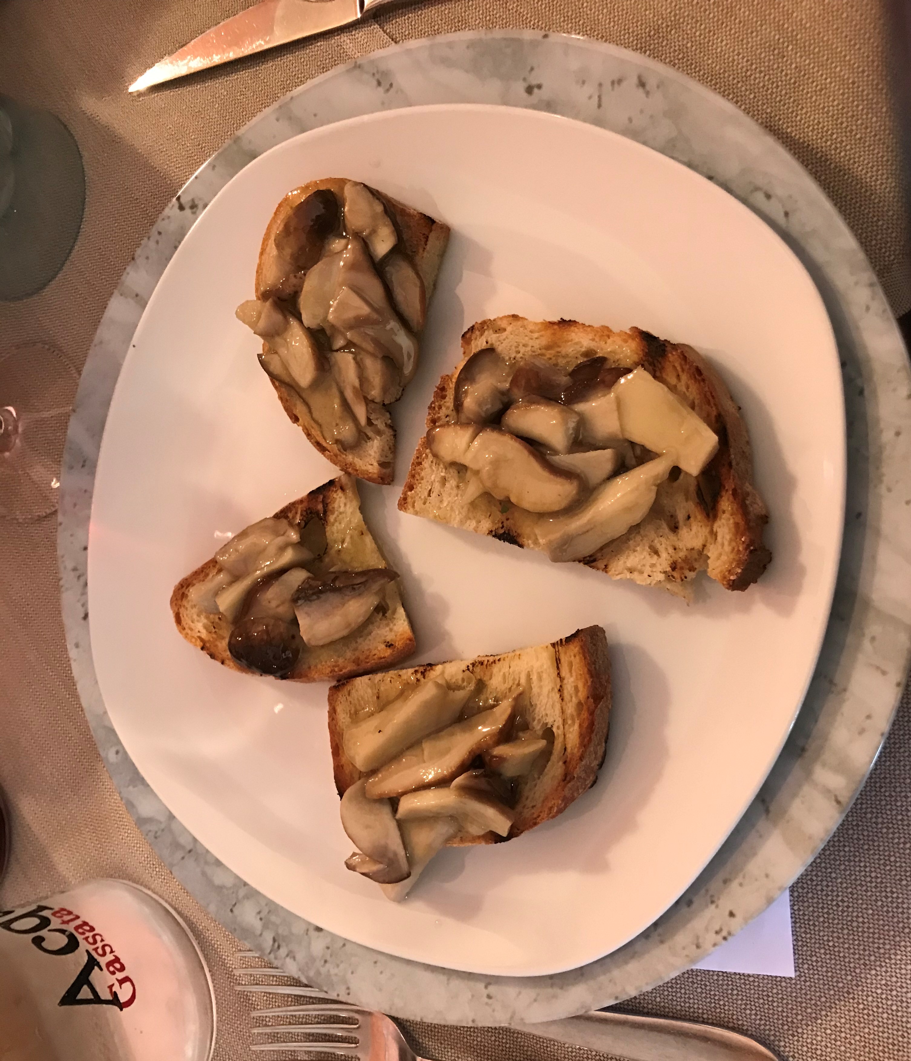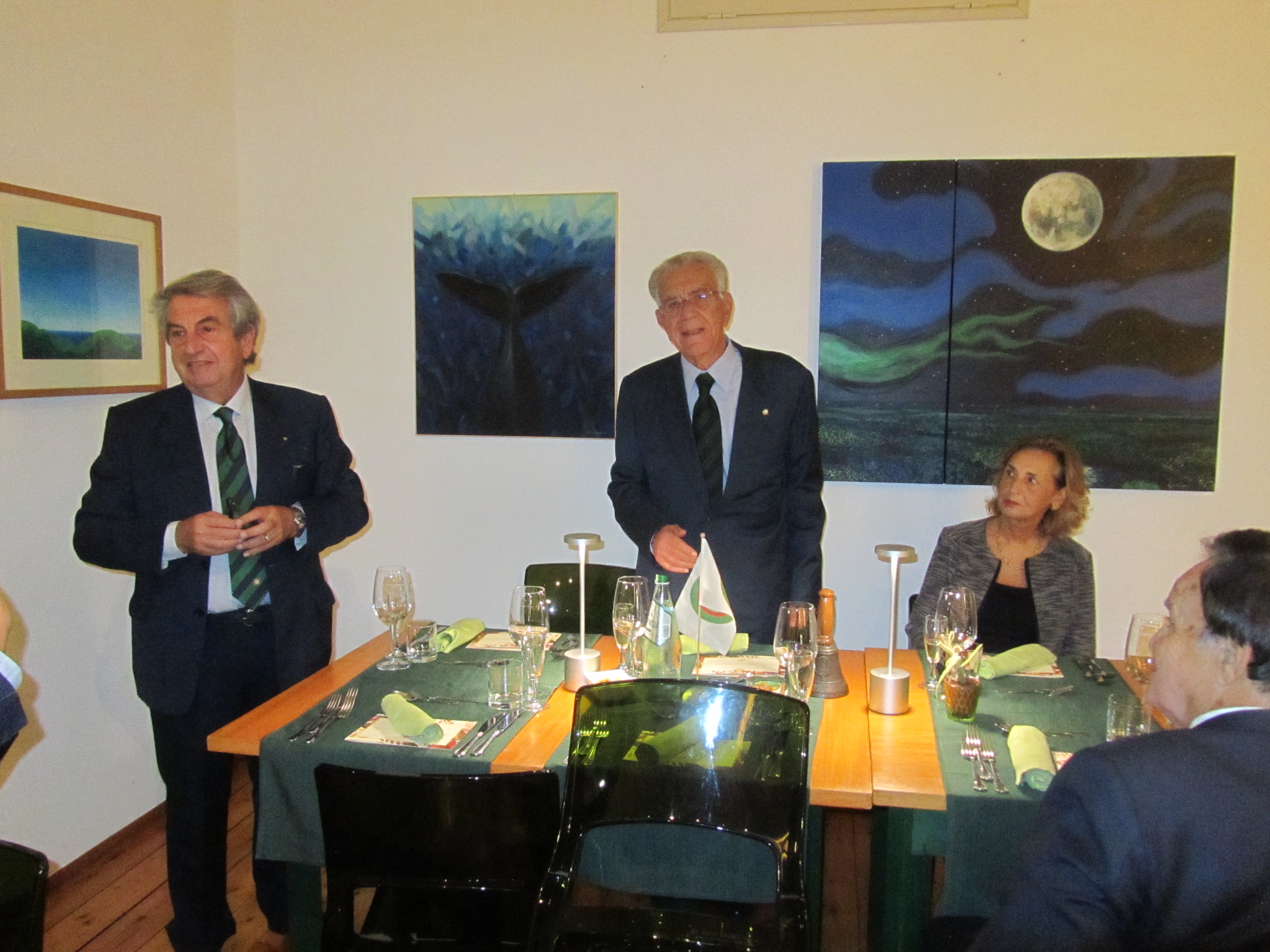 La Cena Ecumenica della Delegazione Garfagnana-Val di Serchio si è tenuta presso il ristorante, bar e piccolo albergo, Col D'Arciana (Castiglione di Garfagnana), situato sulla Strada Provinciale che porta al Passo delle Radici, gestito per tre generazione dalla famiglia del titolare Adelmo Rossi. Ha mantenuto nel tempo la caratteristica di una cucina casalinga basata sui prodotti locali del sottobosco, funghi, castagne, mirtilli e lamponi, nonché asparagi e noci, uniti insieme alla cacciagione. Ottimo il servizio, cortese e veloce, eccellente il rapporto qualità prezzo. Foto 1. Il Delegato Ezio Pierotti consegna la vetrofania al titolare Rossi. Foto 2 e 3. Due piatti tipici del ristorante: bruschetta con funghi trifolati e insalata di funghi porcini.
