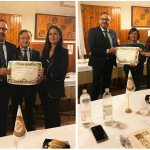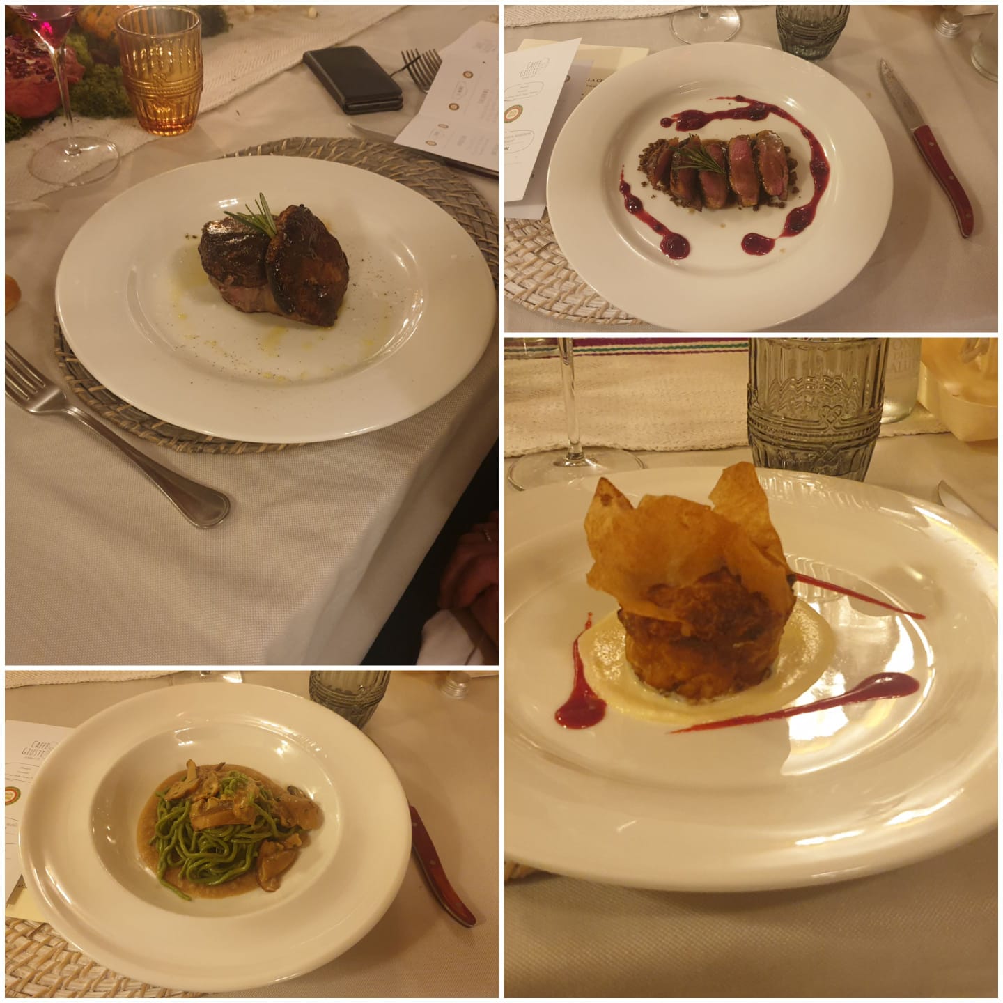 Le Delegazioni di Cosenza e Crotone hanno condiviso l’organizzazione della riunione conviviale ecumenica con tema “Il bosco e il sottobosco. Castagne, funghi, tartufi, frutti di bosco nella cucina della tradizione regionale” scegliendo il ristorante Hyle del Biafora Resort, sito a San Giovanni in Fiore, nel cuore della Sila (foto 1). Un’esperienza sensoriale che ha centrato l’obiettivo prefissato di restituire l’odorosa fragranza che accoglie la camminata del bosco: castagni e noci con i loro frutti, funghi, more, fragoline e lamponi (foto 2, riso riserva san Massimo al caprino, tartufo, castagne e ginepro). Come segno di riconoscimento e di apprezzamento, la Delegazione di Cosenza ha consegnato allo chef Antonio Biafora il piatto dell’Accademia (foto 3). Particolarmente apprezzate le testimonianze degli Accademici Nicodemo Librandi e Gerardo Sacco (foto 4).