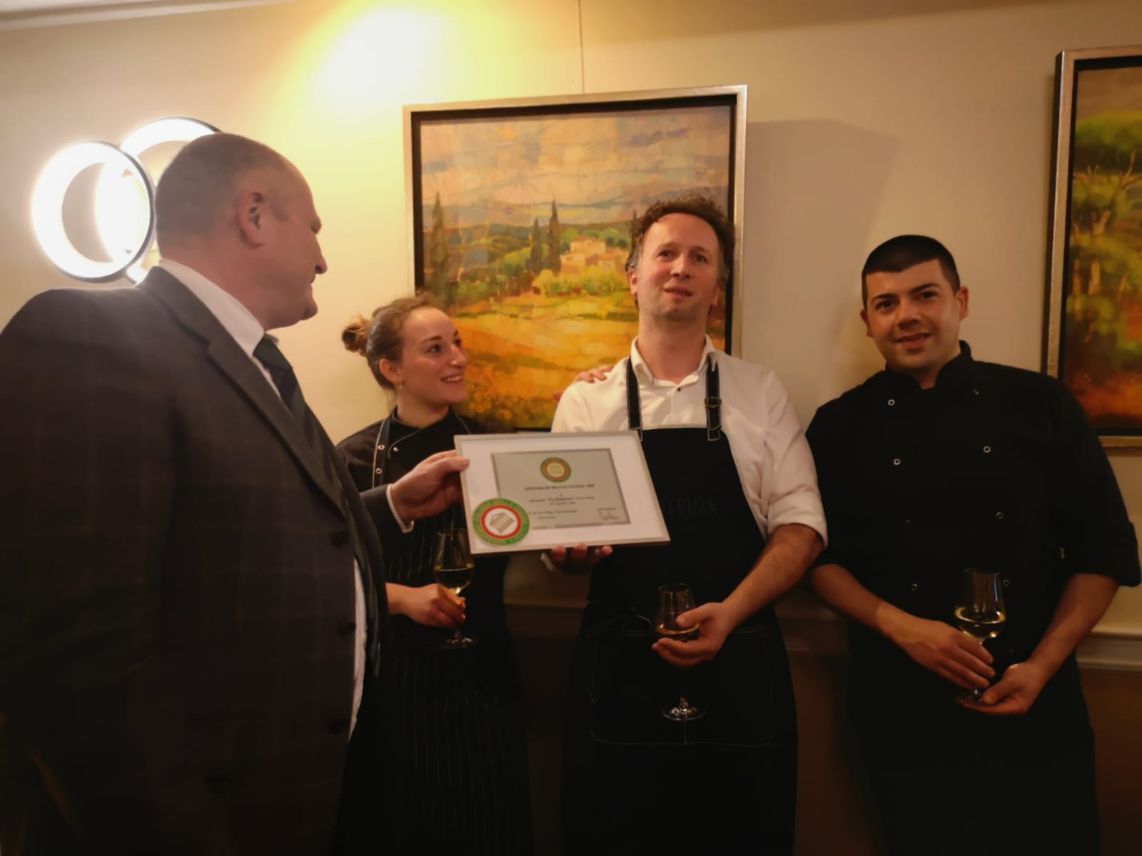La Cena Ecumenica della Delegazione di Londra presso il ristorante “Teatro della carne-Macellaio” ha visto la partecipazione di ospiti d’onore come il giornalista e scrittore Enrico Franceschini e il precedente CEO di FerreroUK Mario Bruzzone, i quali, dopo un’adeguata introduzione ai prodotti del bosco e del sottobosco da parte del Delegato Maurizio Fazzari, hanno allietato il pubblico con le loro esperienze sul tema della serata. Il cuoco Luciano Nastasi, supervisionato da Roberto Costa, ha espresso soddisfazione e riconoscenza per essere stato coinvolto in un evento conviviale così importante, incentrato sul tema dell’anno scelto dall’Accademia. Molto apprezzati gli stuzzichini e la zuppa, grandi lodi per la scelta dei vini, ben abbinati alle vivande autunnali. L’ambiente particolare, la presentazione elegante e meticolosa, il servizio professionale e affabile sono stati molto graditi. Simposiarche della serata, le Consultrici della Delegazione Etta Carnelli e Silvia Mazzola, che con il loro impegno hanno reso possibile lo svolgimento di questo evento tanto atteso.